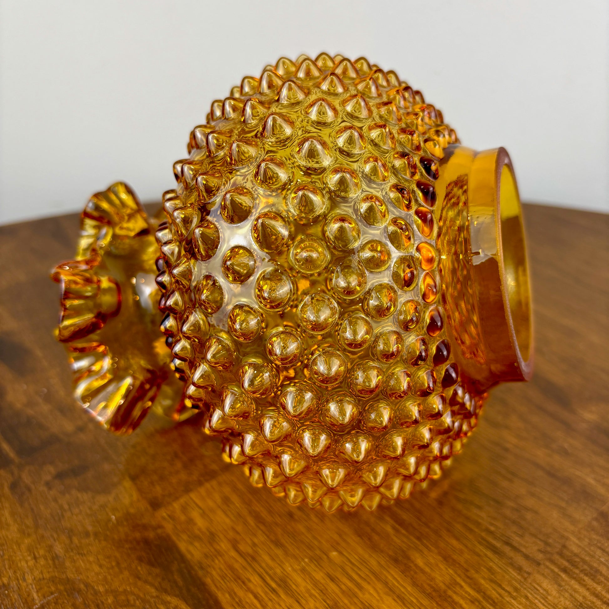 Vintage Hurricane Lamp Shade | Fenton Amber Hobnail Glass Hurricane Shade | Oil Lamp Shade | Parlor Lamp Shade | 3 Inch Fitter | Glass Shade