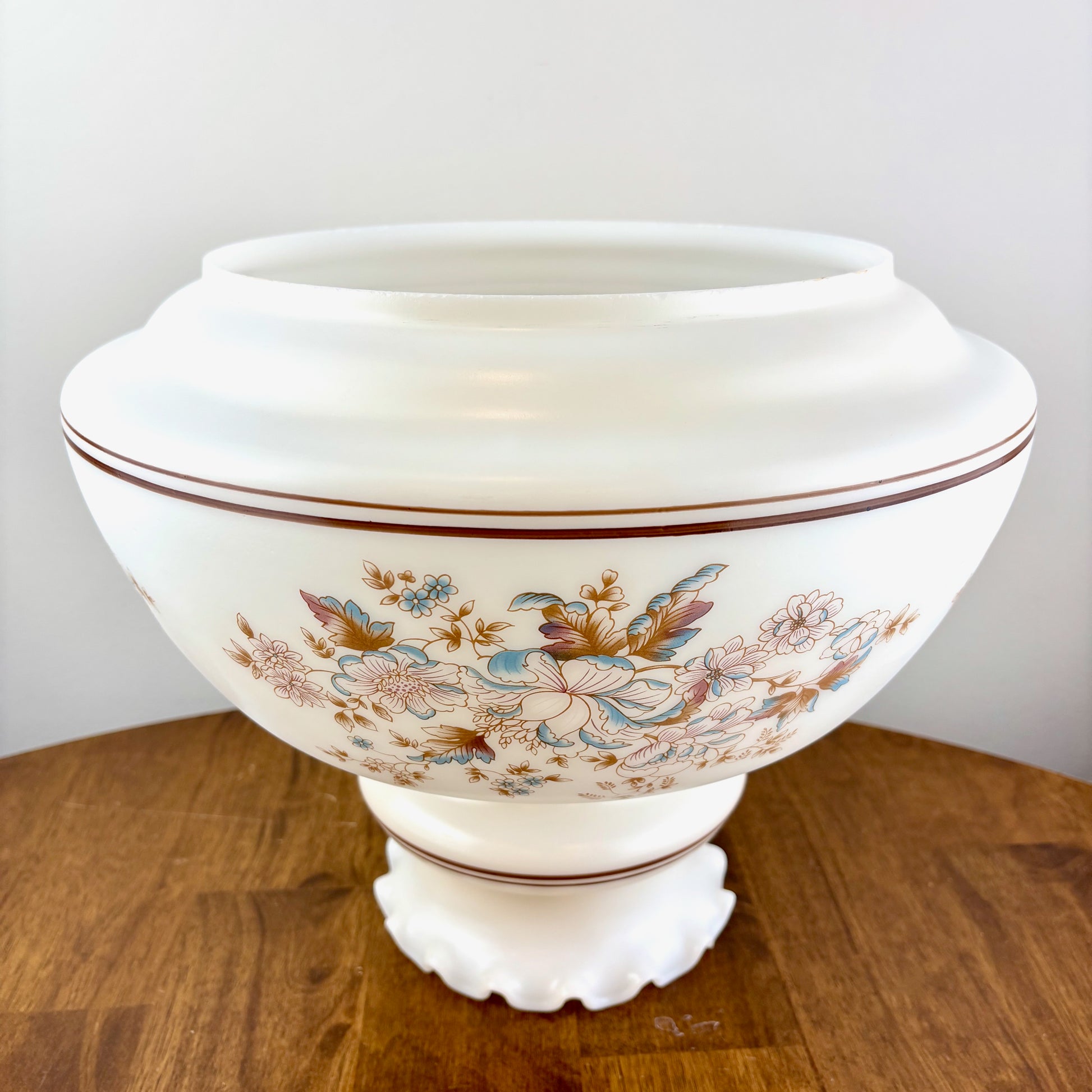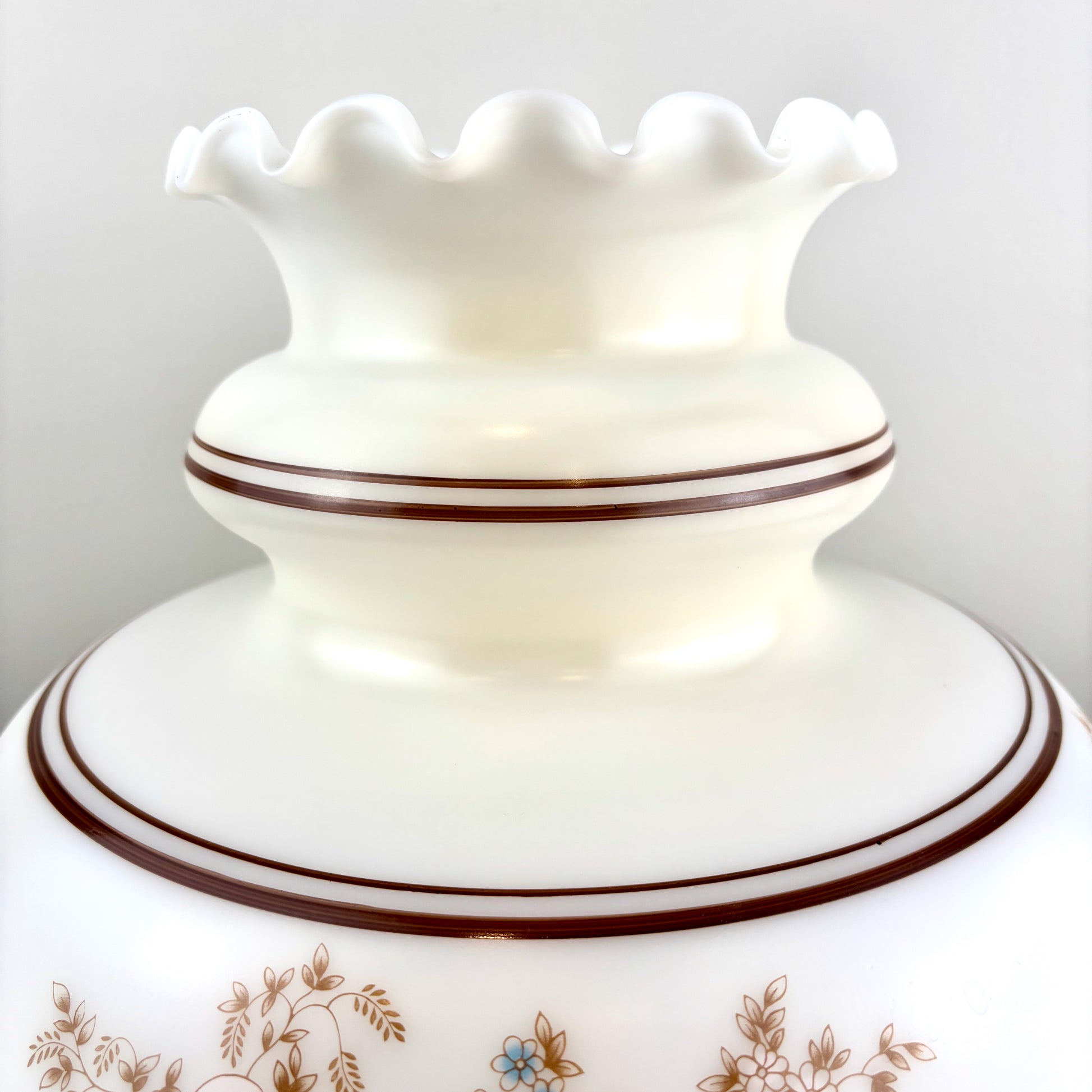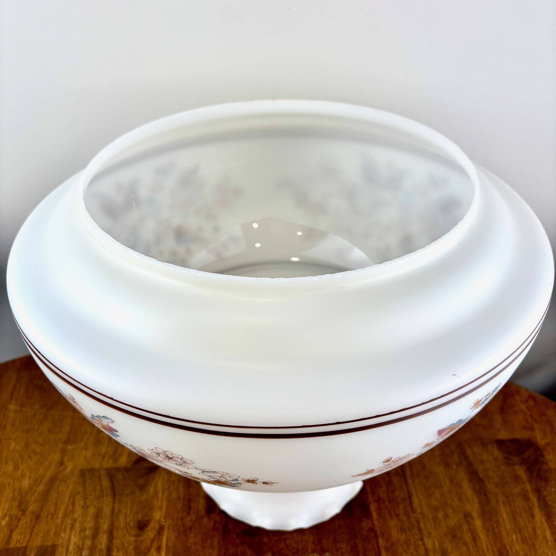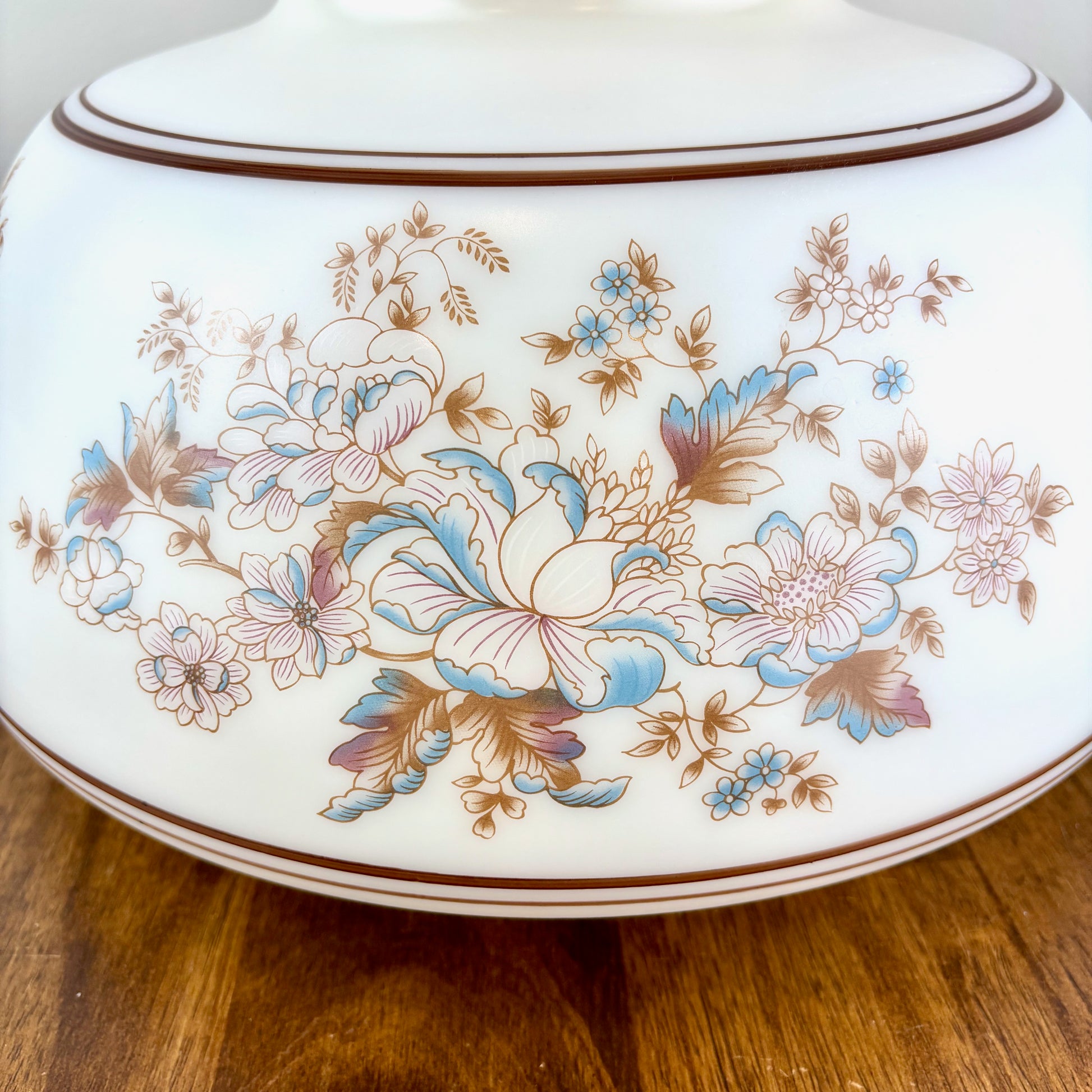 Vintage Hurricane Lamp Shade | Large Quoizel White Blue Floral Brown Trim Hurricane Shade | 10 Inch Fitter | Glass Lamp Shade | Glass Shade