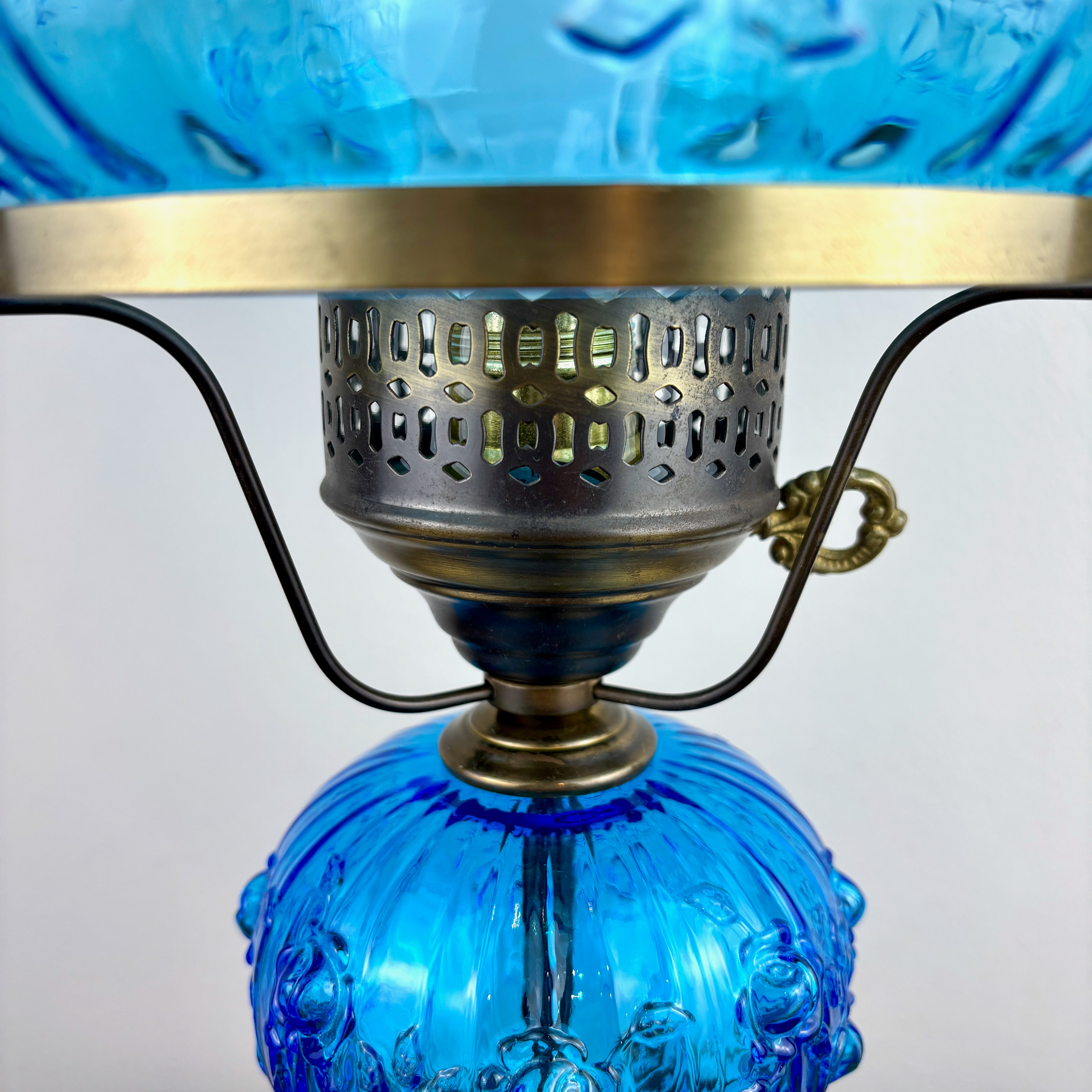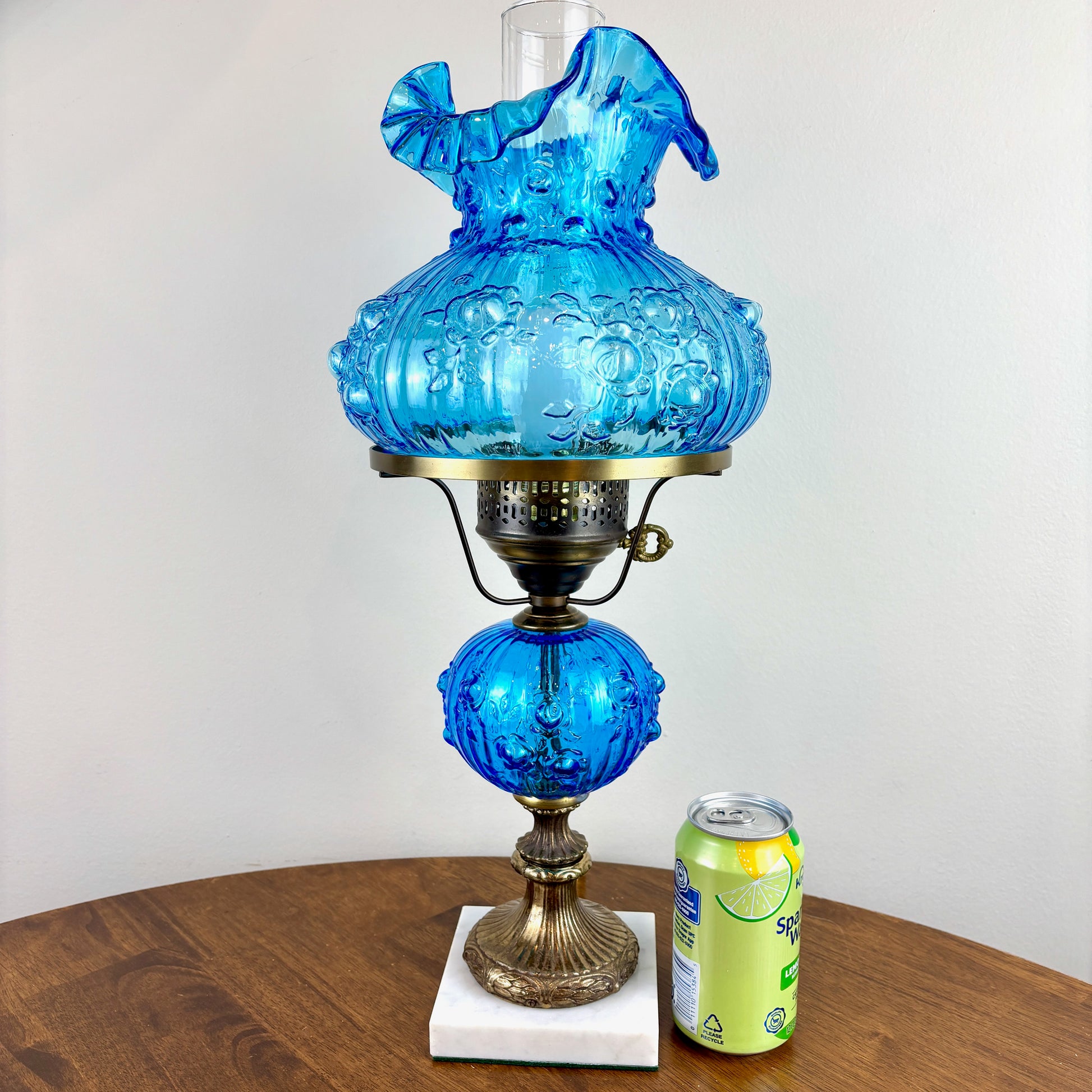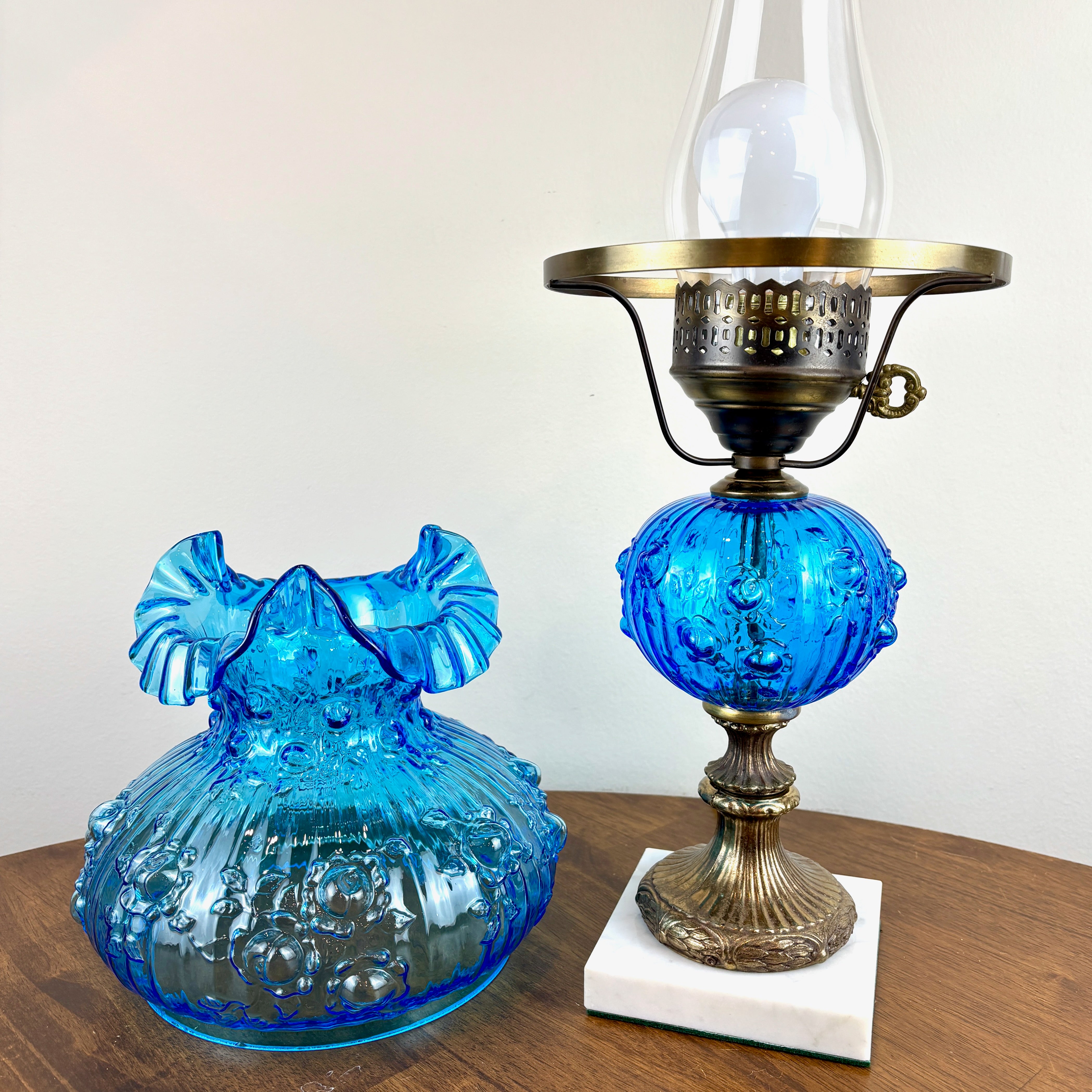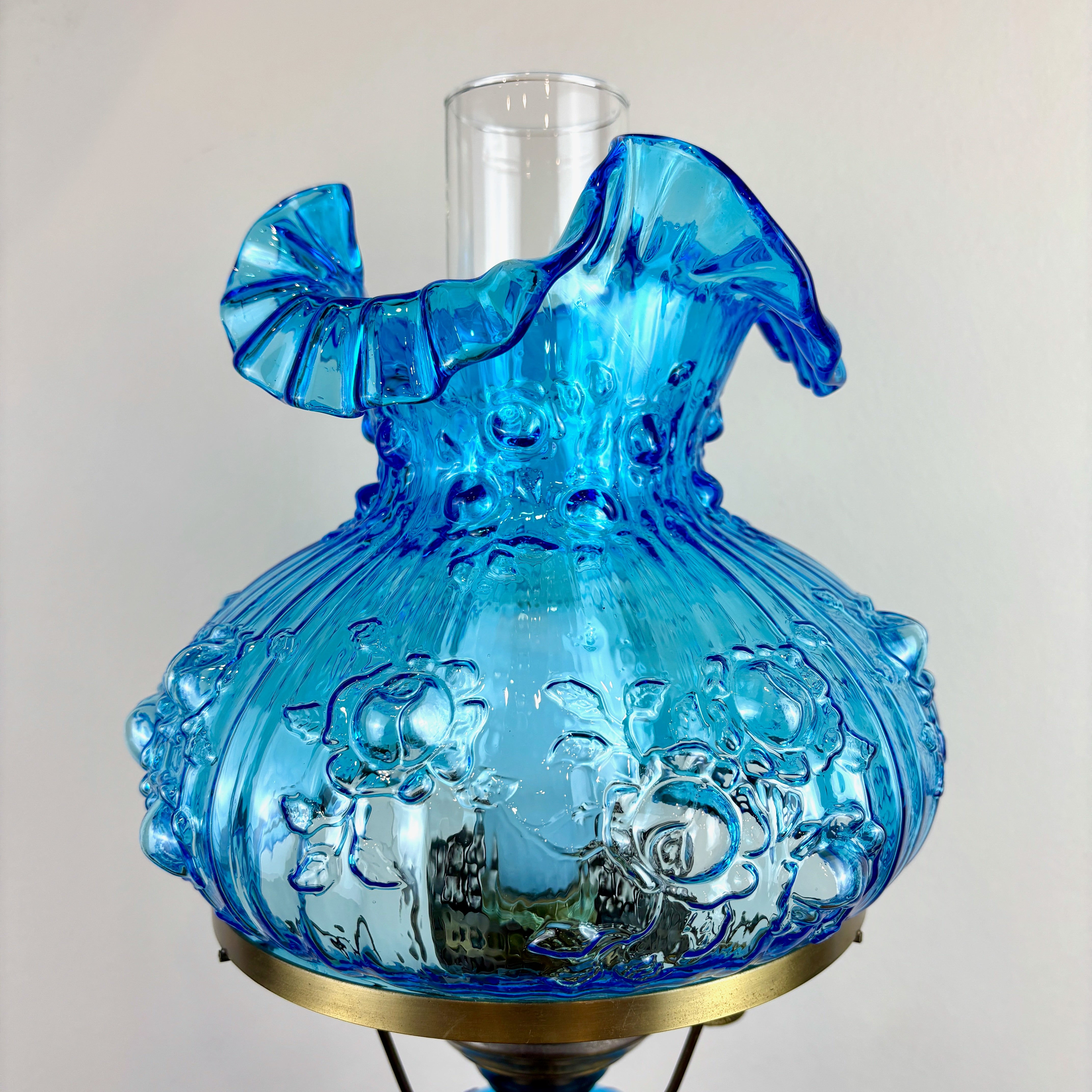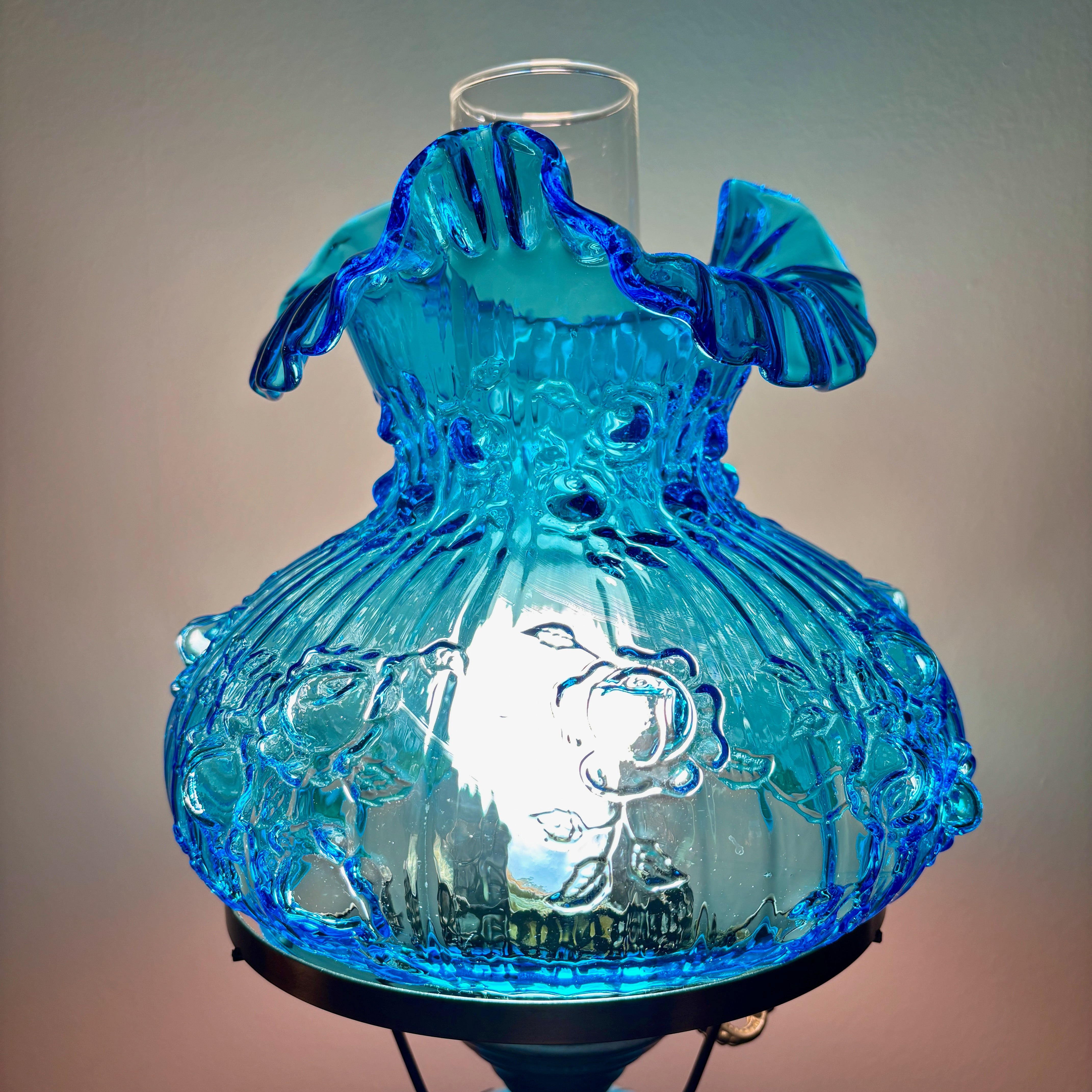 Vintage Fenton Colonial Blue Cabbage Rose Glass Hurricane Lamp | Fenton Student Lamp | Gone With The Wind Lamp | Vintage Hurricane Lamp