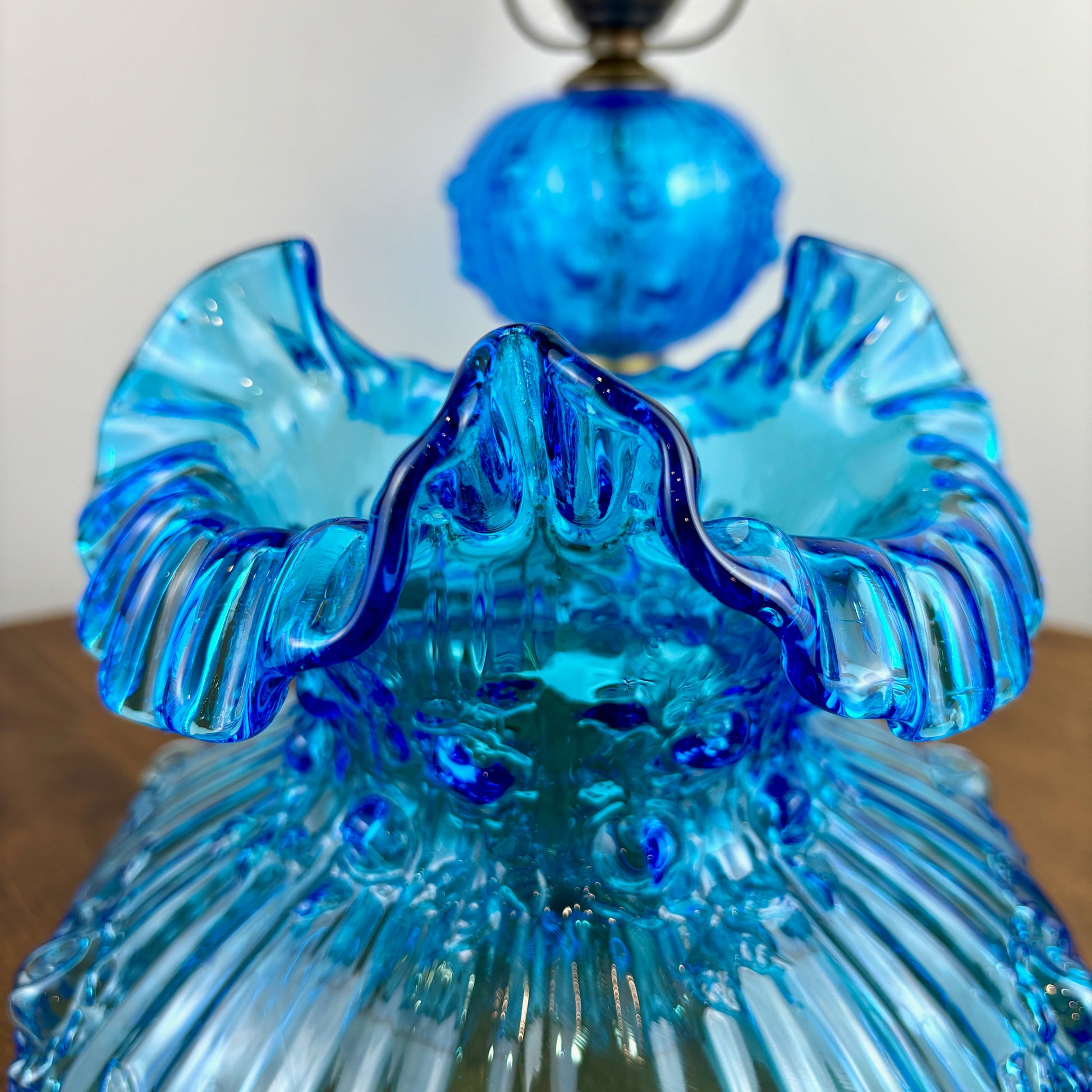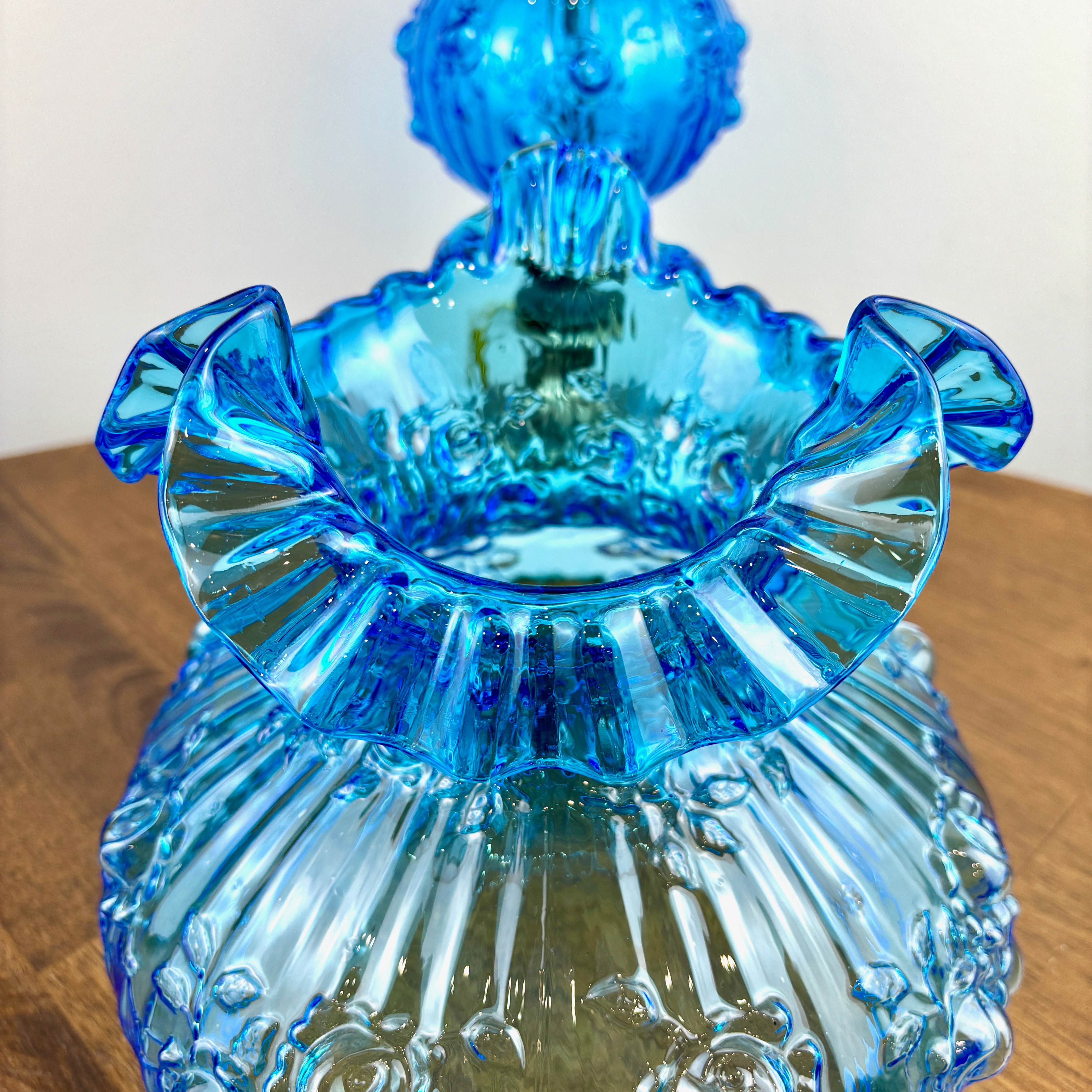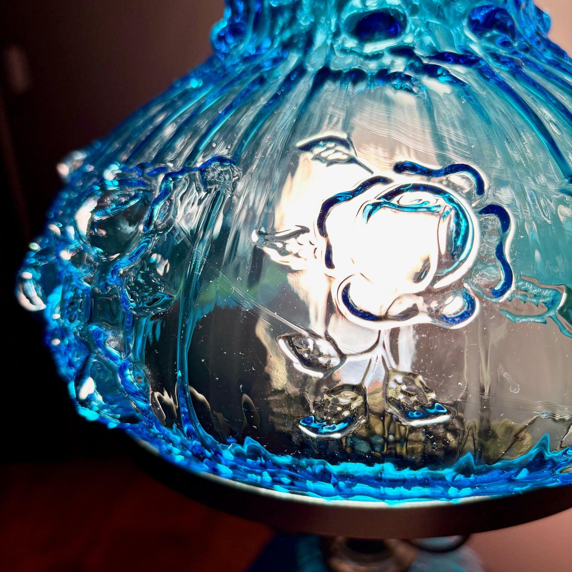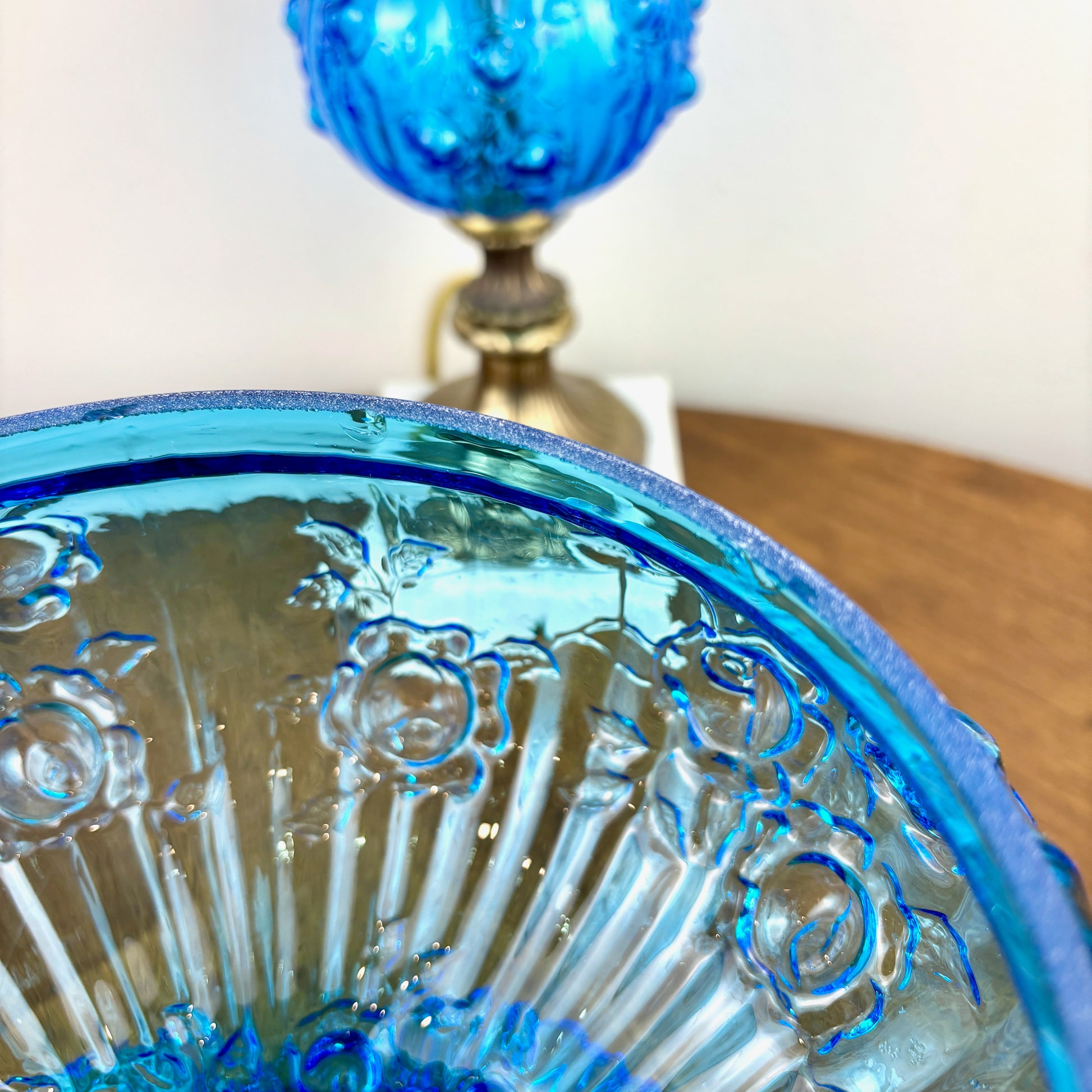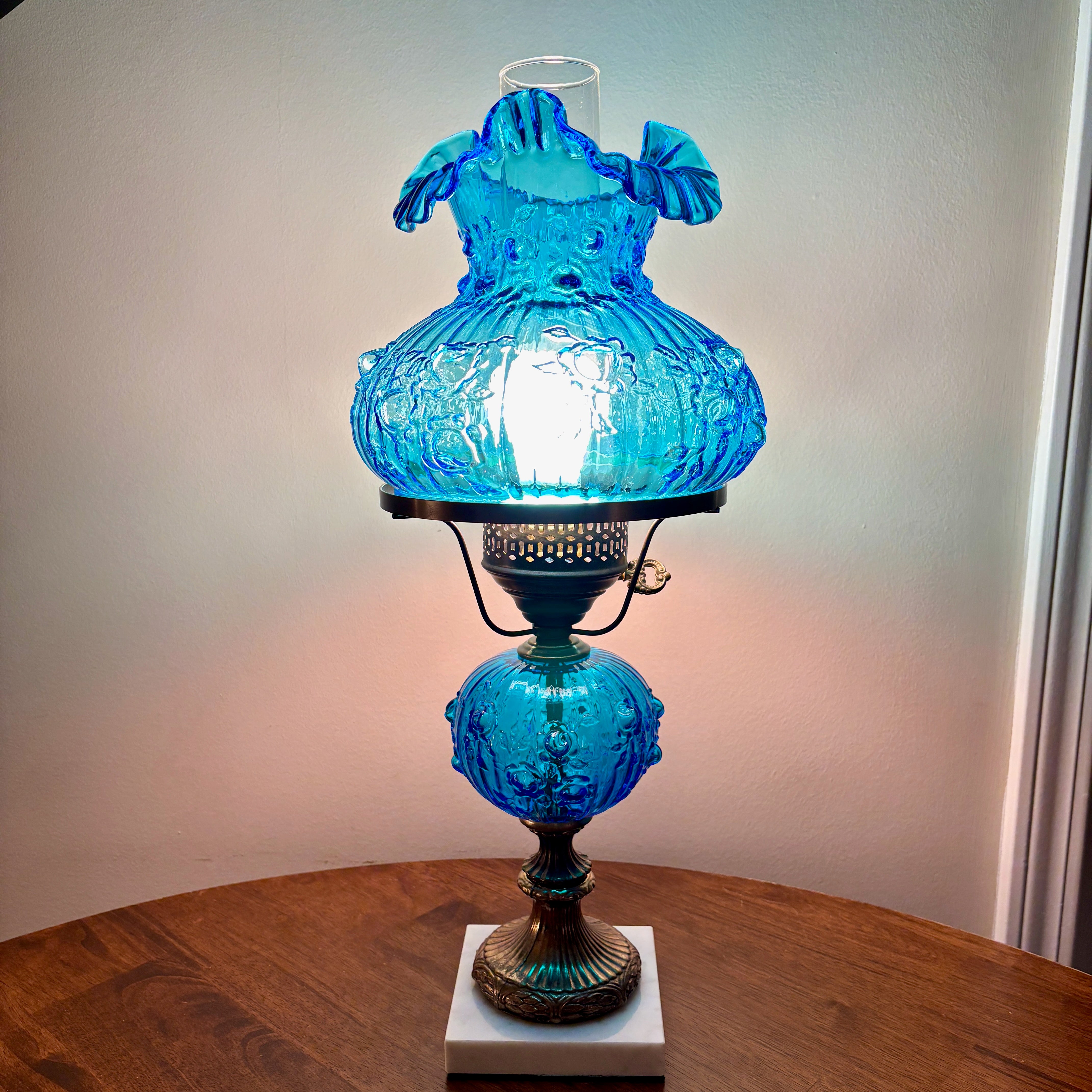 Gorgeous Fenton blue cabbage rose glass lamp!