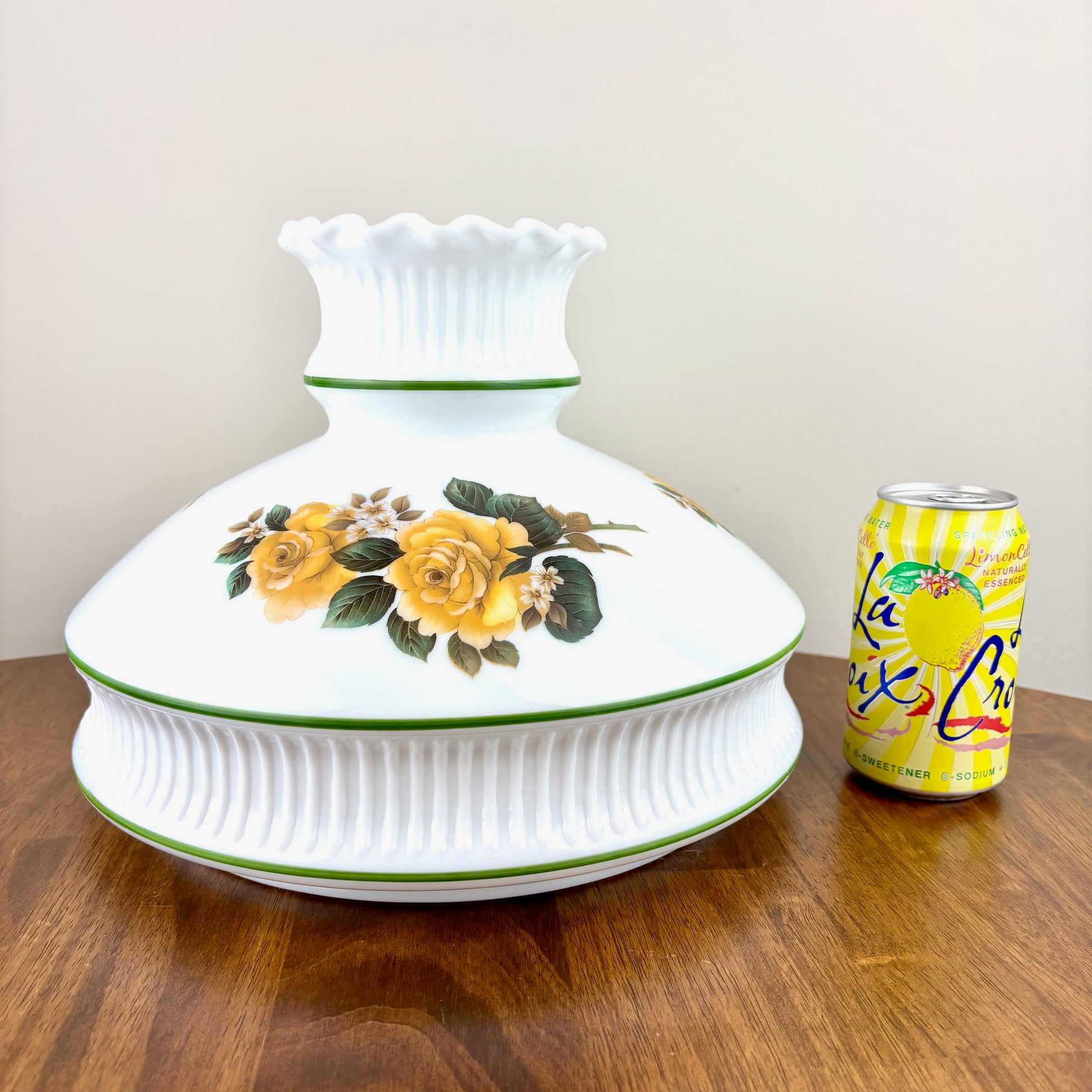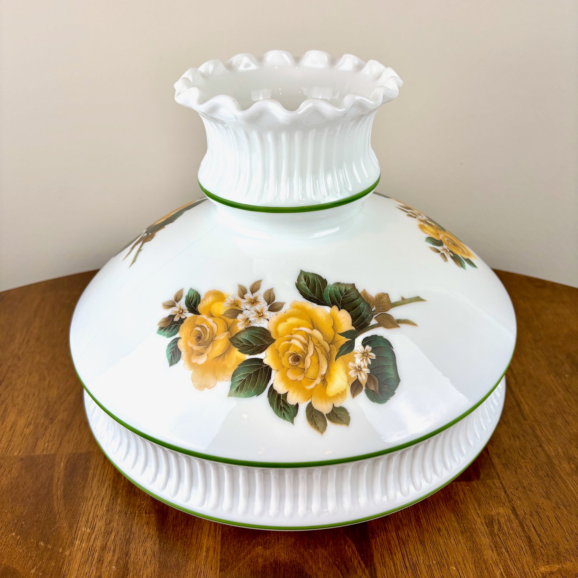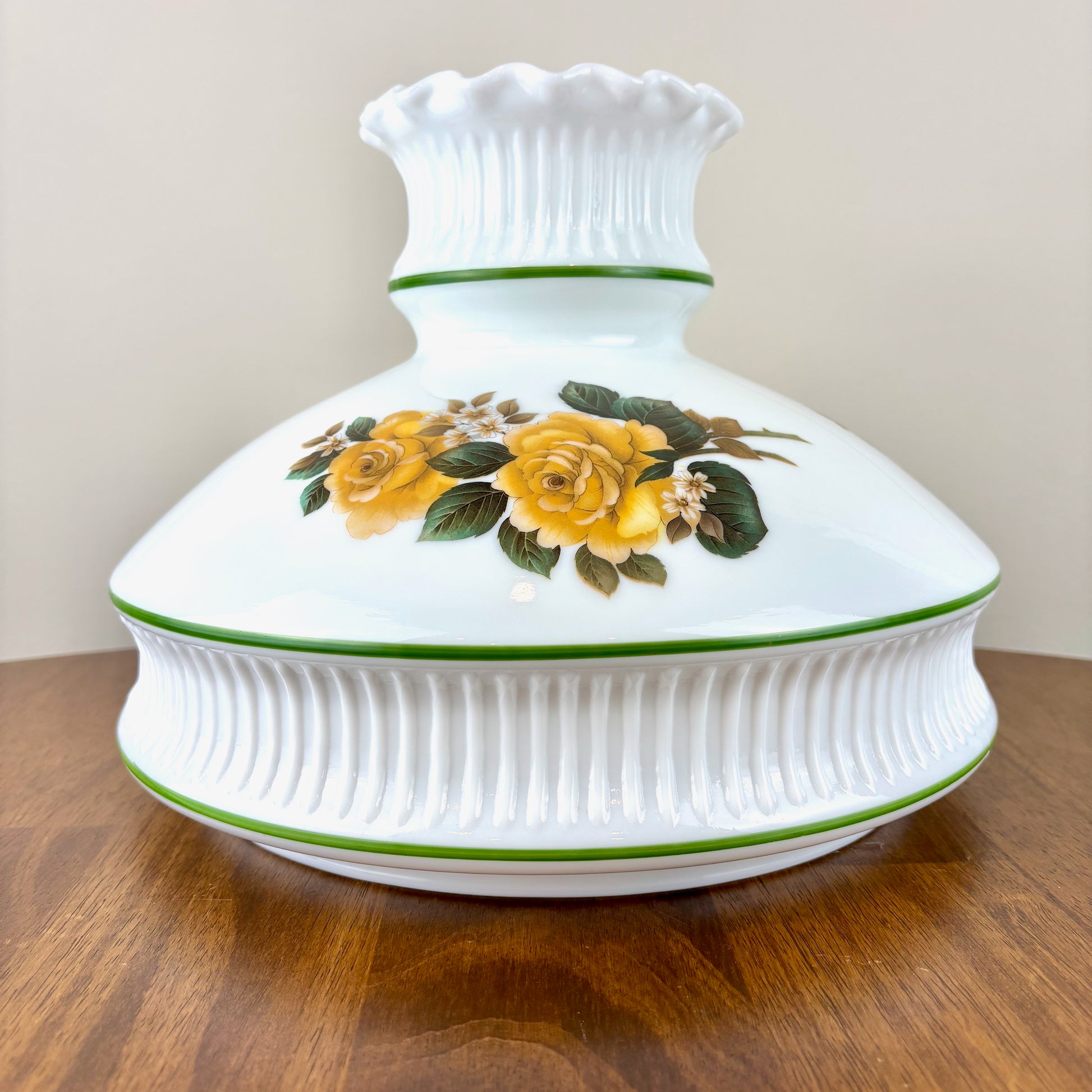 Vintage Hurricane Lamp Shade | Yellow Roses Milk Glass Hurricane Shade | Milk Glass Shade | 10 Inch Fitter | Glass Lamp Shade | Glass Shade
