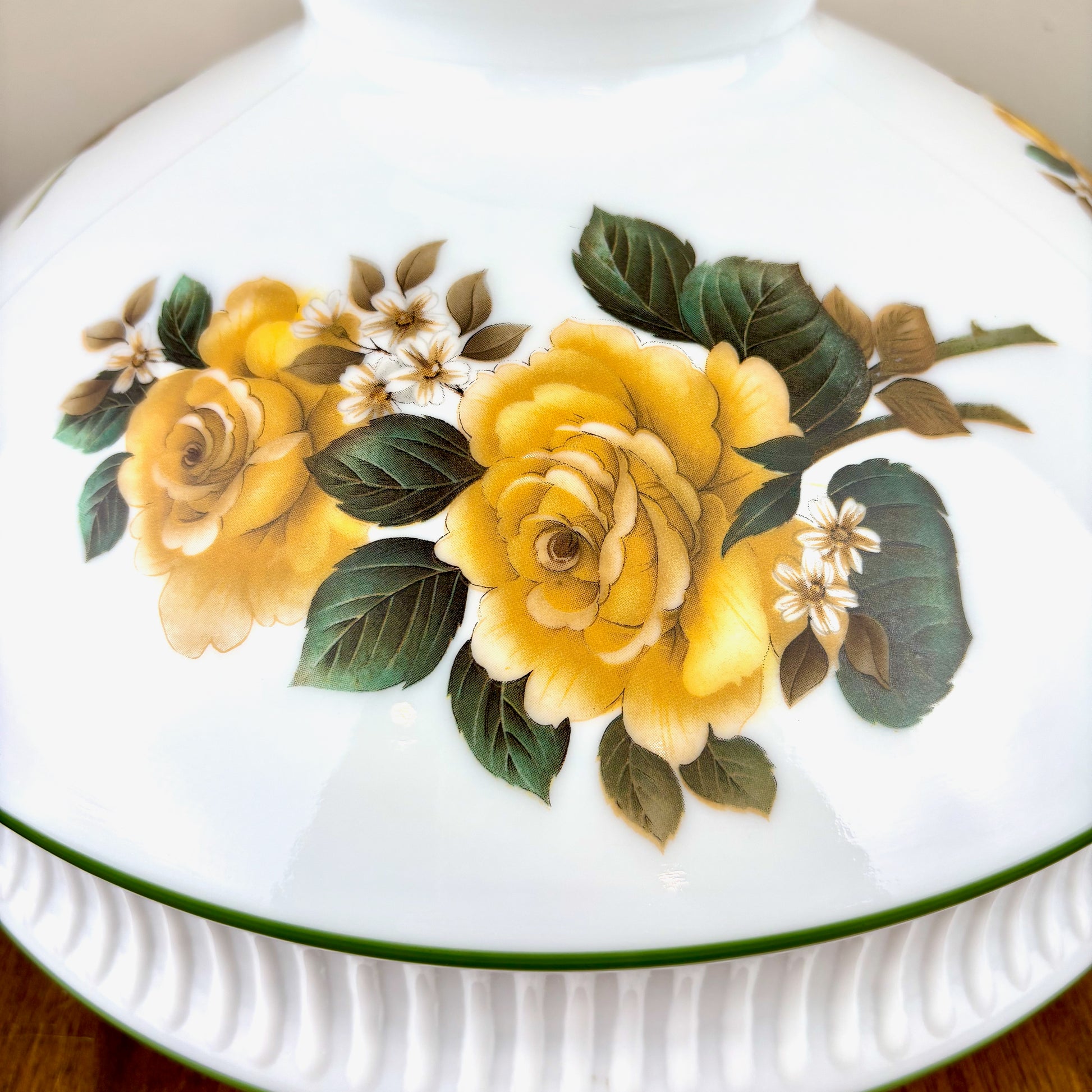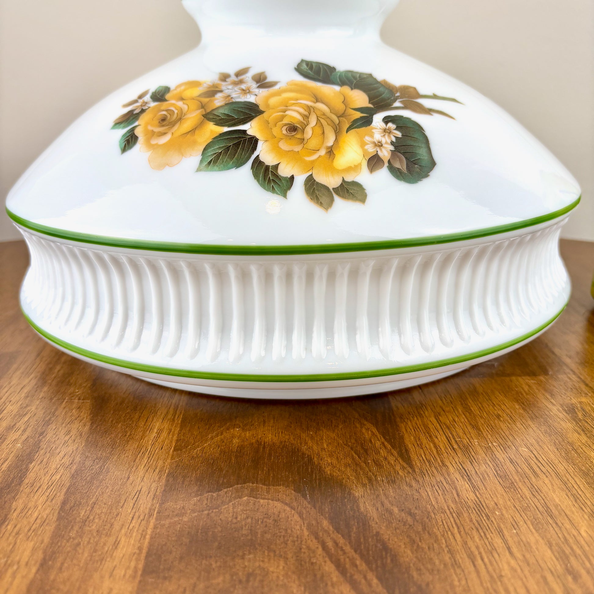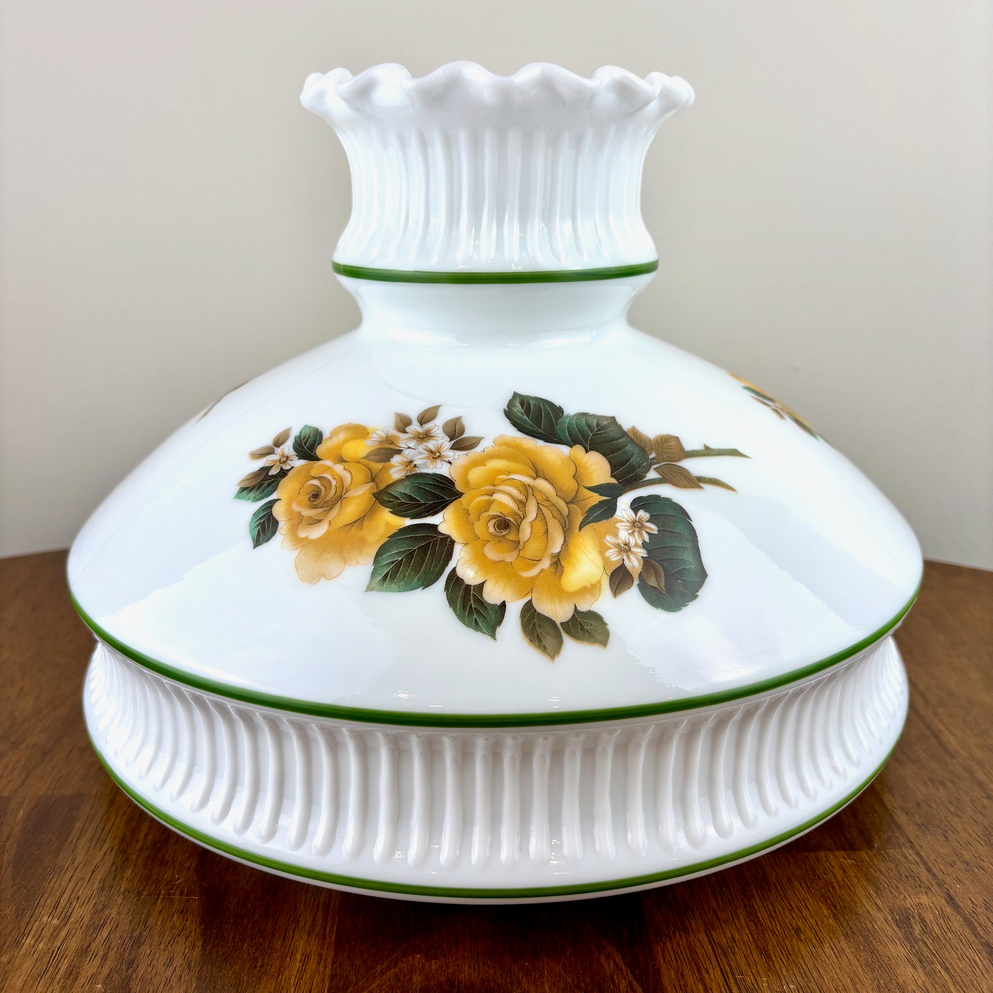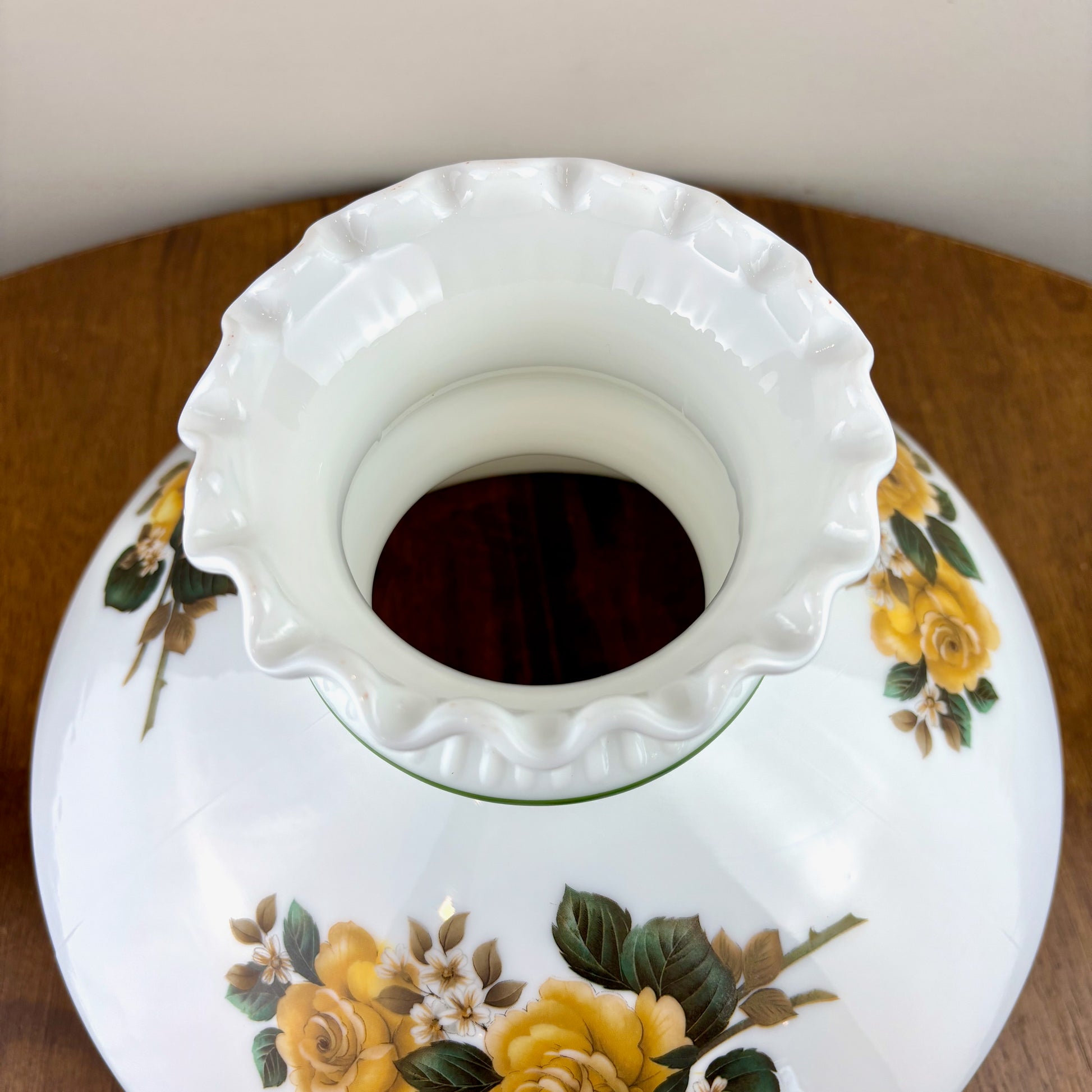 Vintage Hurricane Lamp Shade | Yellow Roses Milk Glass Hurricane Shade | Milk Glass Shade | 10 Inch Fitter | Glass Lamp Shade | Glass Shade