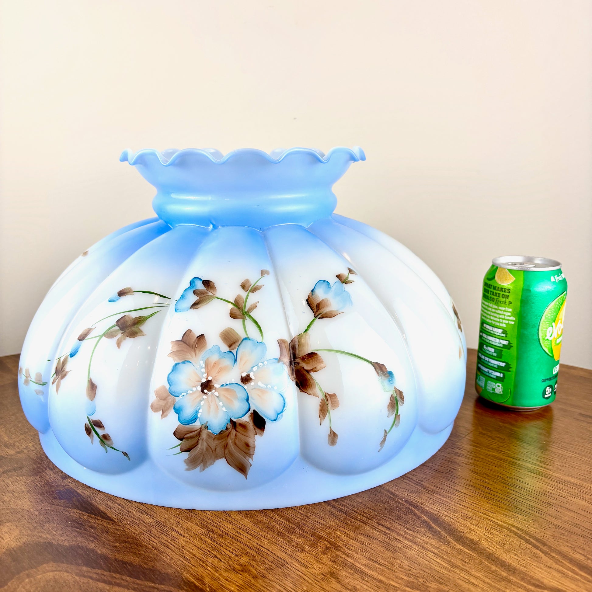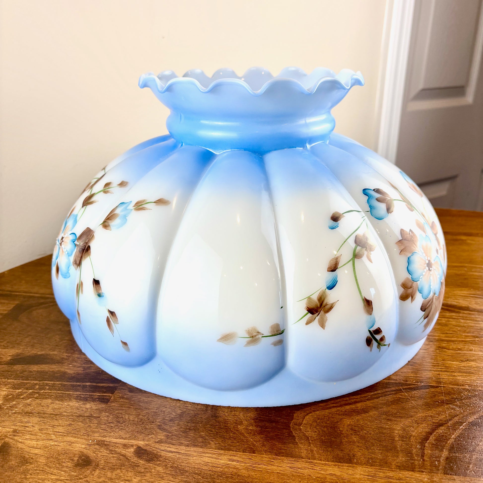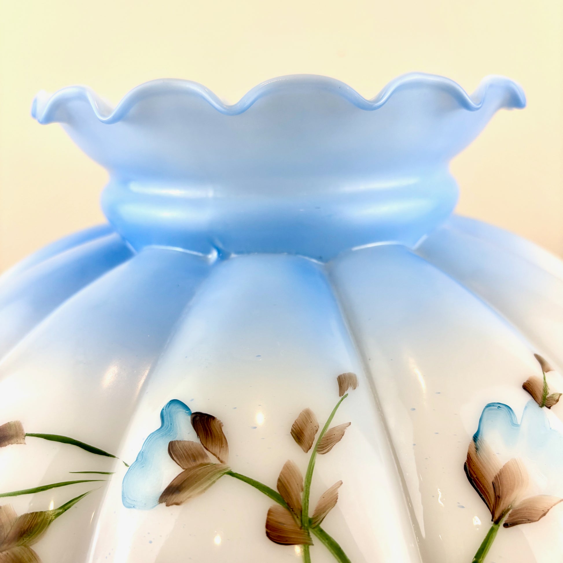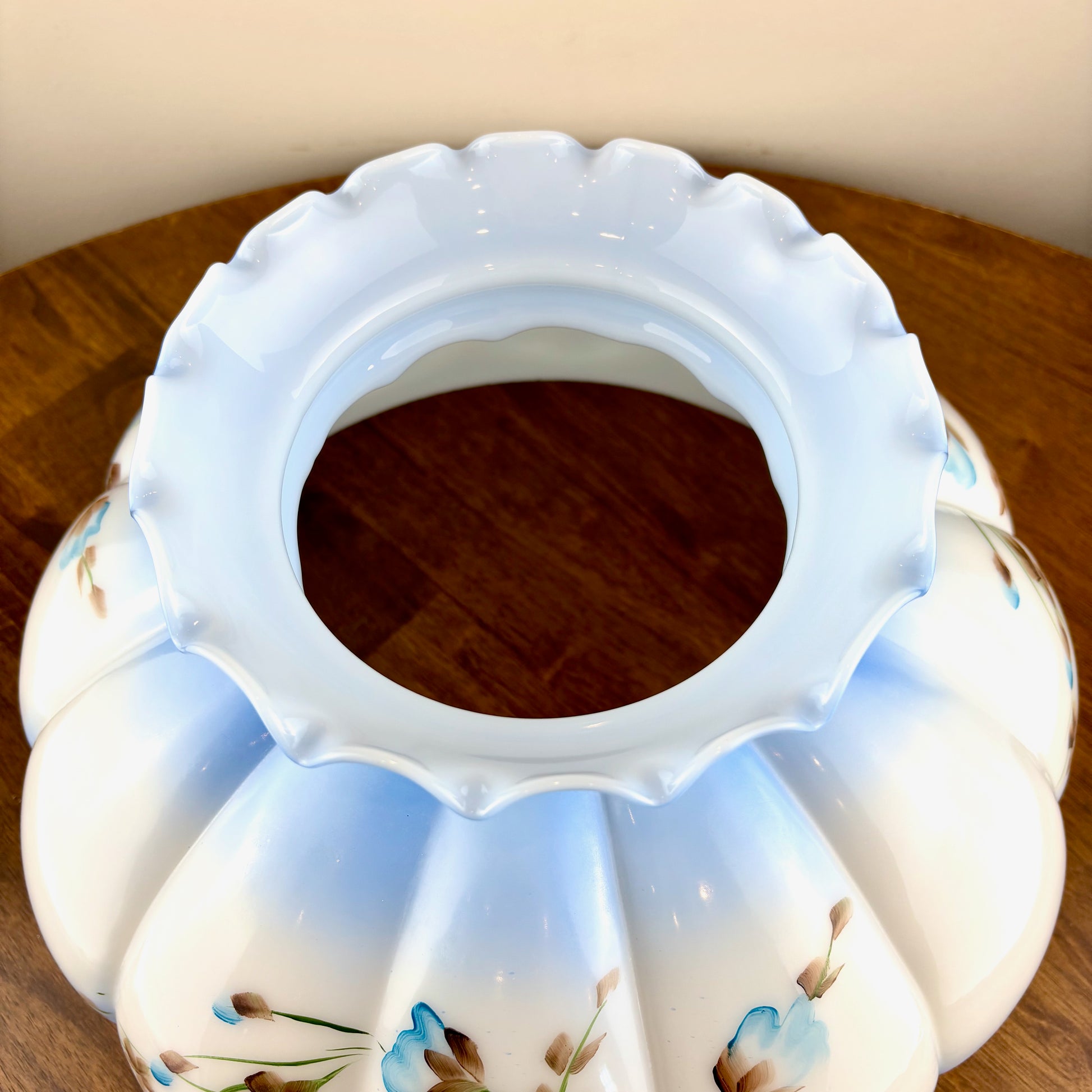 Vintage Hurricane Lamp Shade | Blue Floral Hurricane Shade | Milk Glass Shade | 14 Inch Fitter | Glass Lamp Shade | Glass Shade