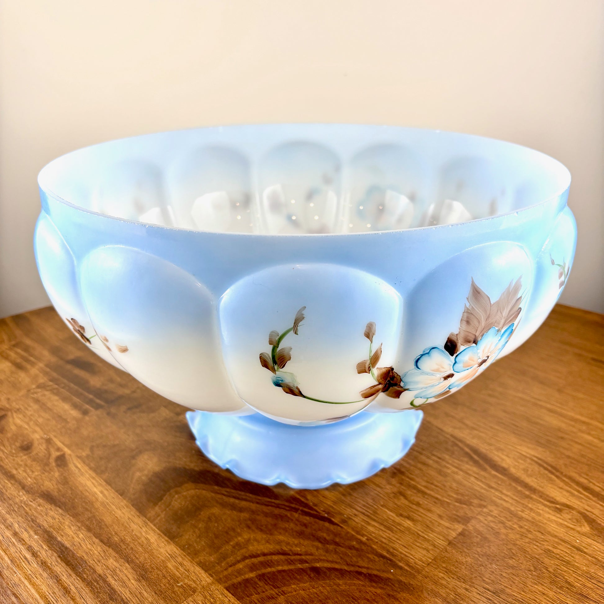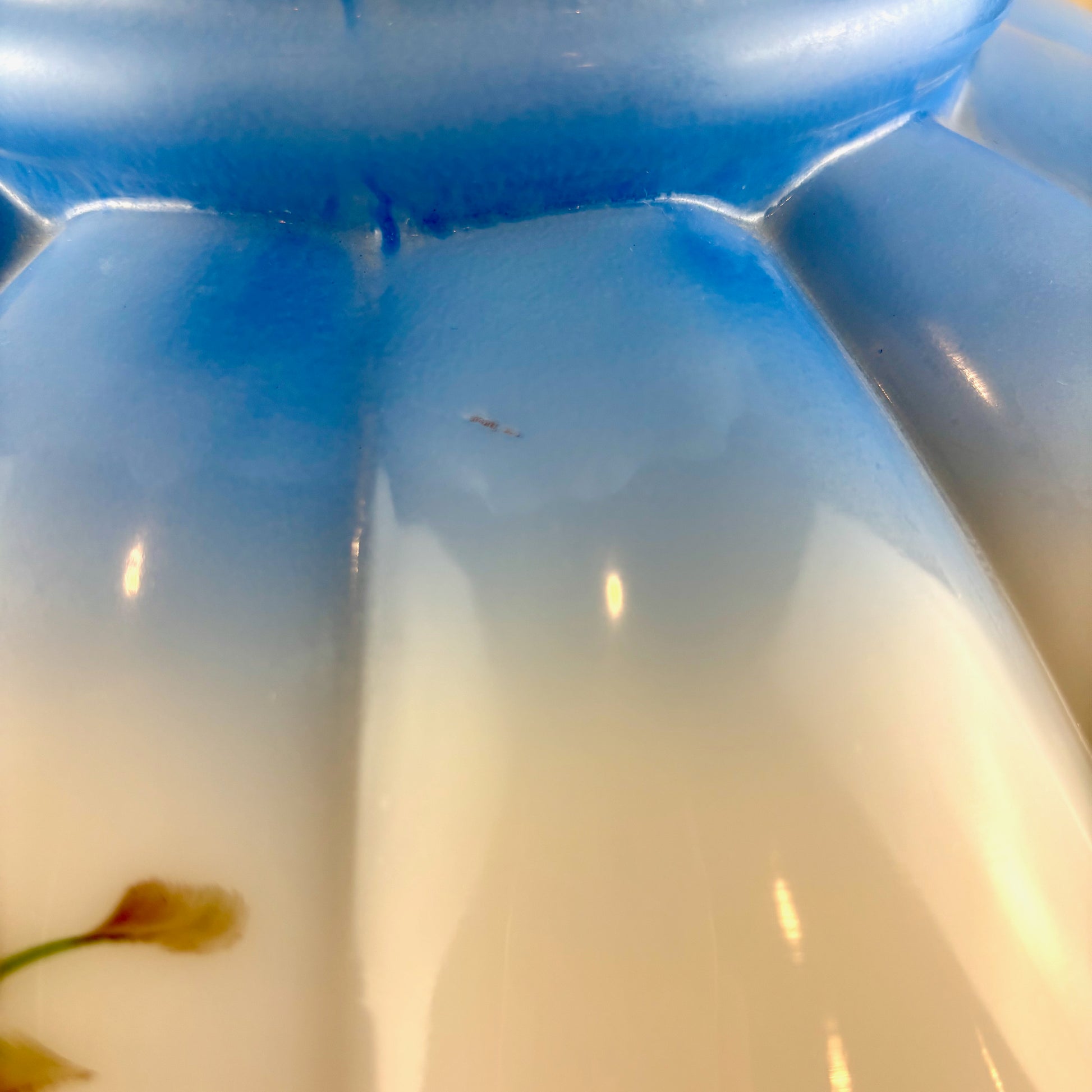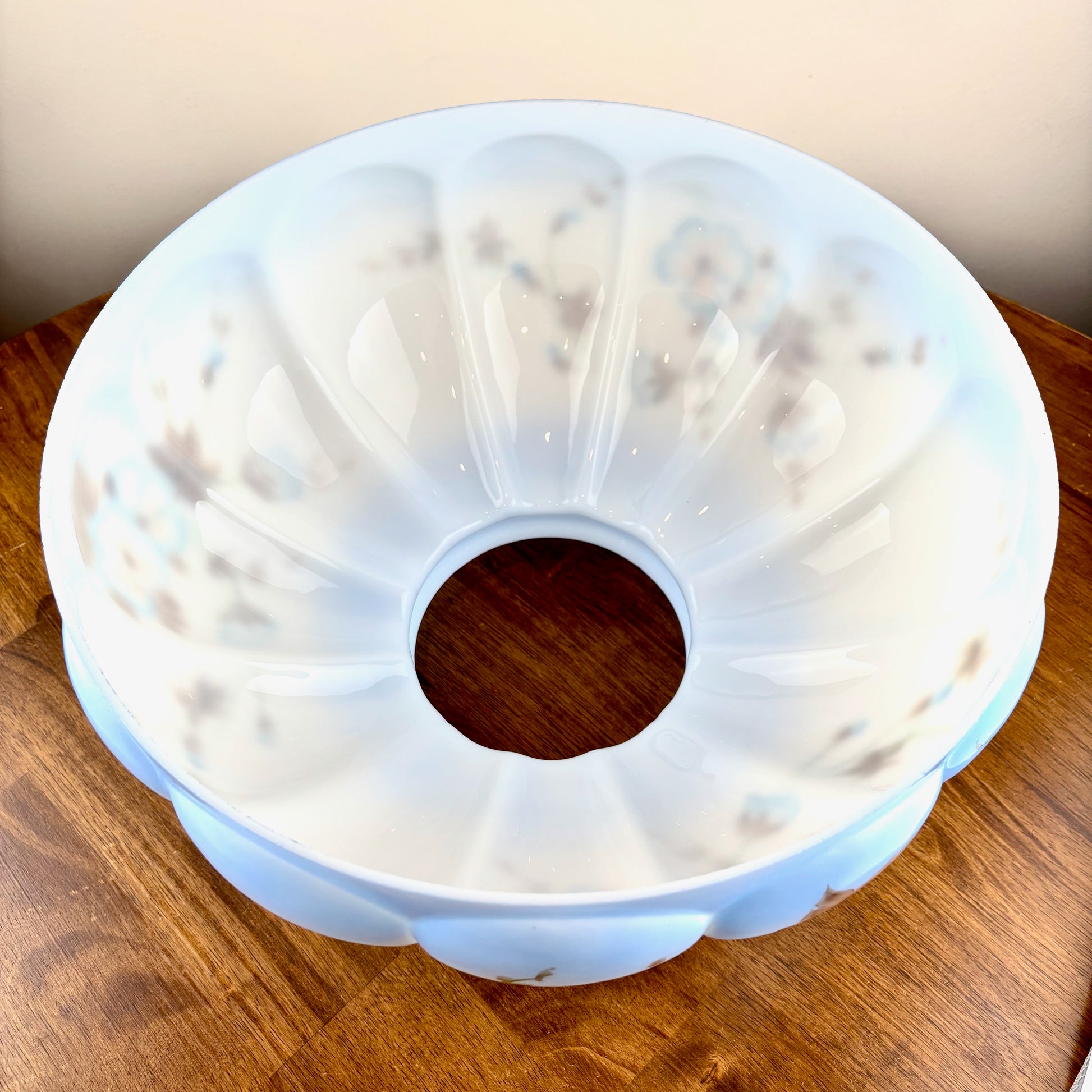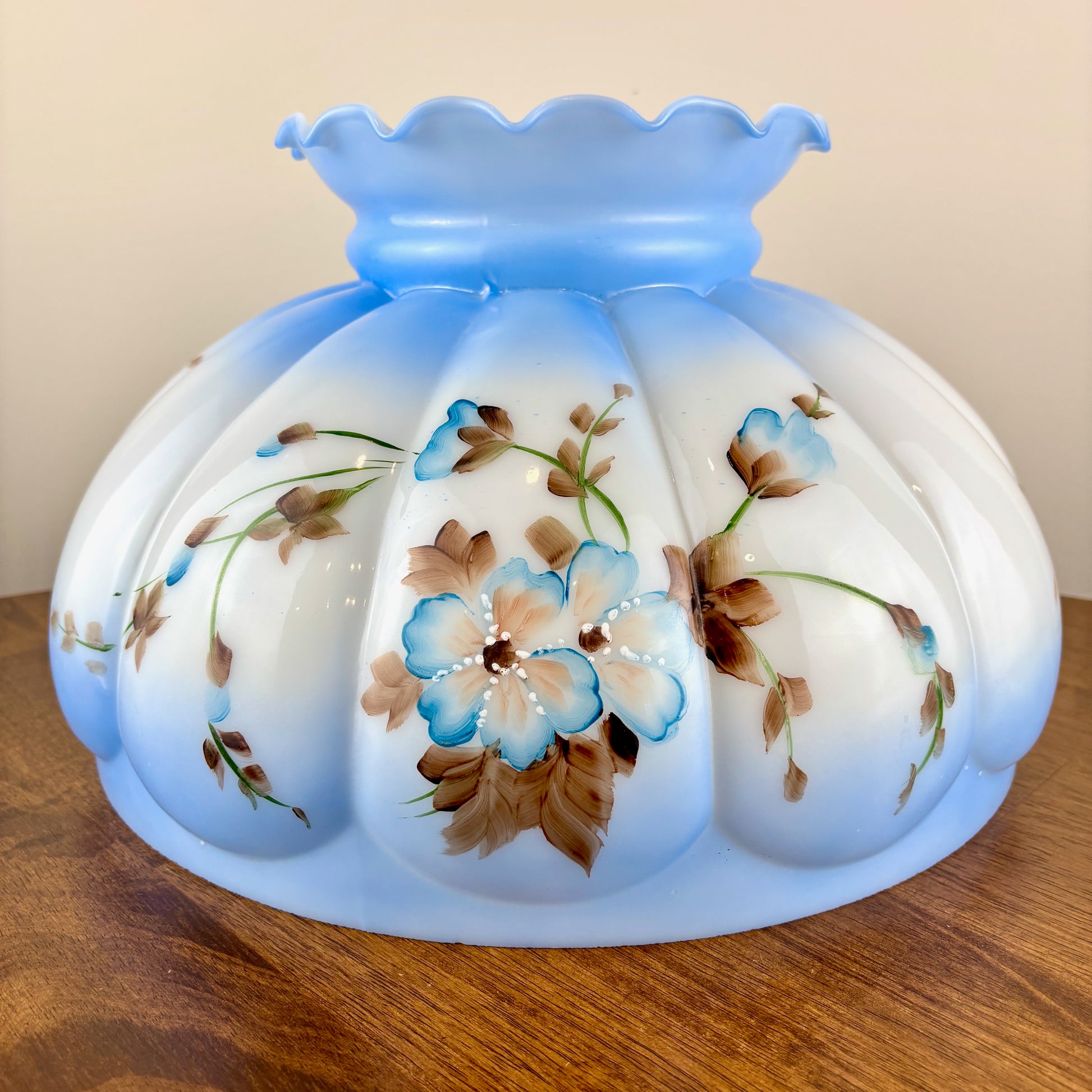 Vintage Hurricane Lamp Shade | Blue Floral Hurricane Shade | Milk Glass Shade | 14 Inch Fitter | Glass Lamp Shade | Glass Shade