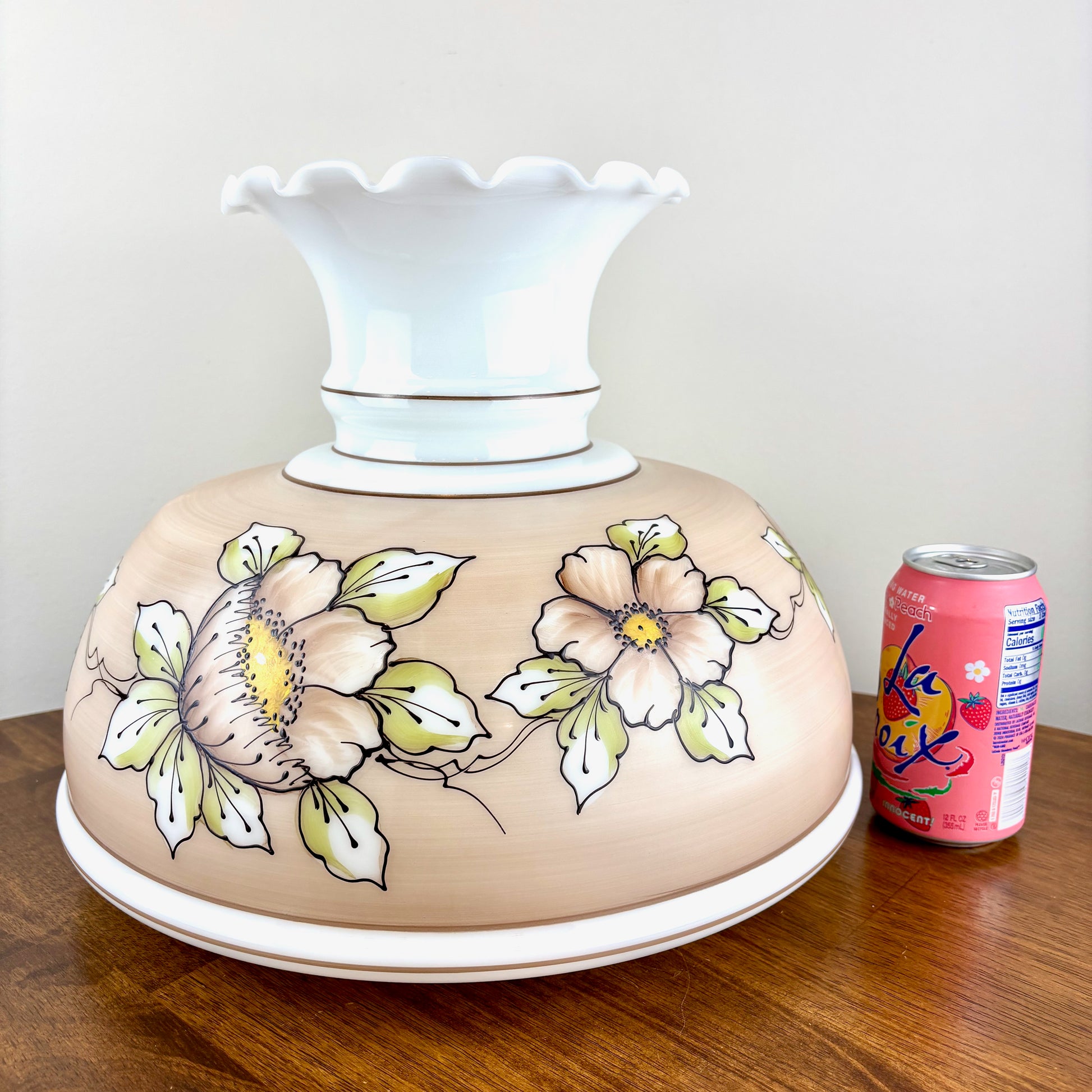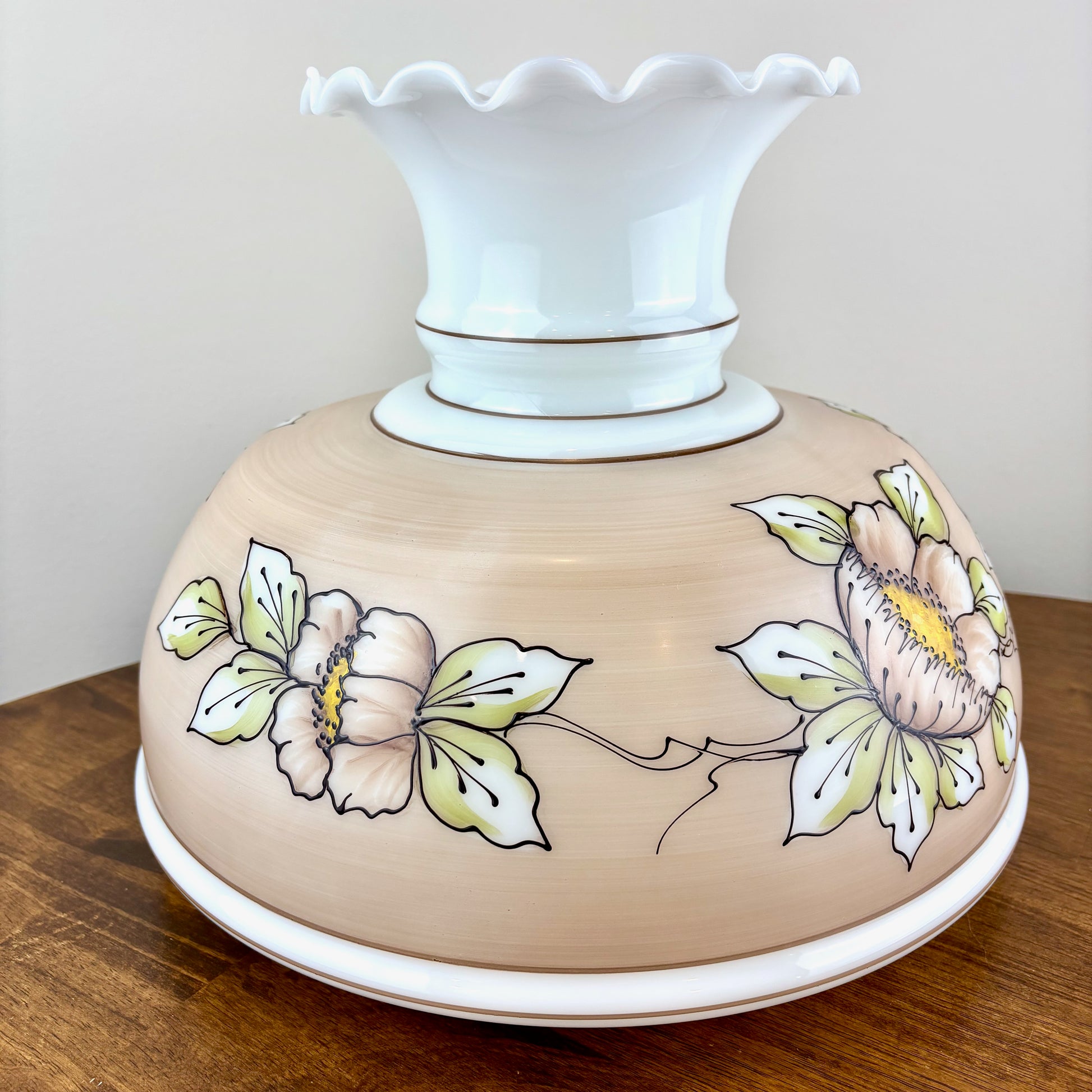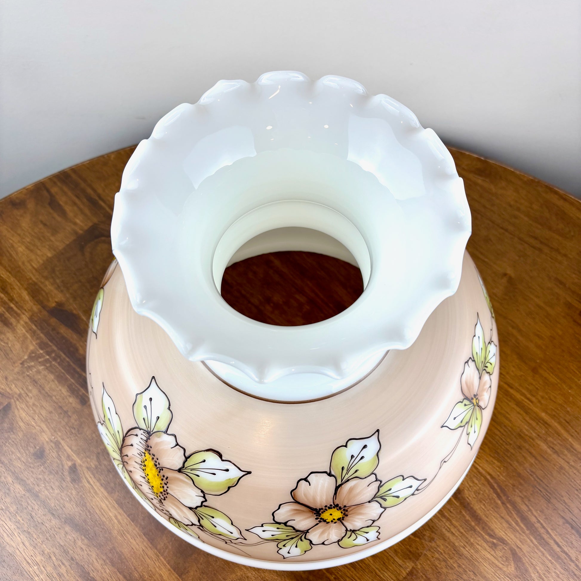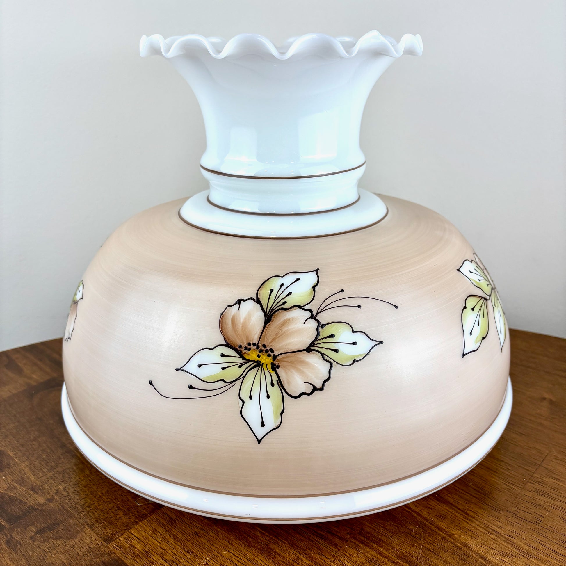 Vintage Hurricane Lamp Shade | Brown Tan Yellow Floral Hurricane Shade | Milk Glass Shade | 10 Inch Fitter | Glass Lamp Shade | Glass Shade