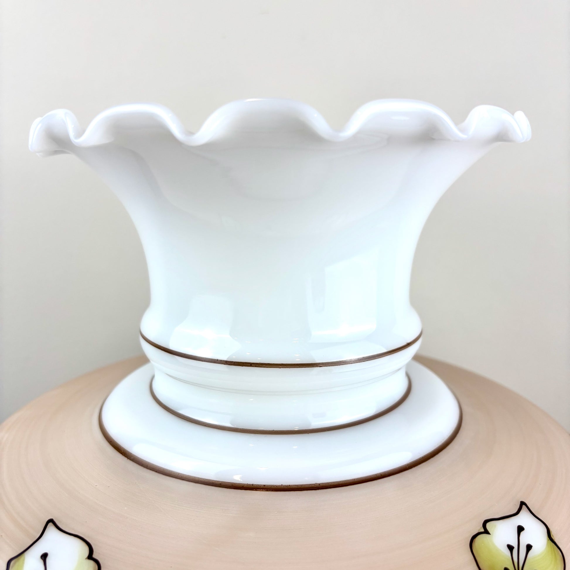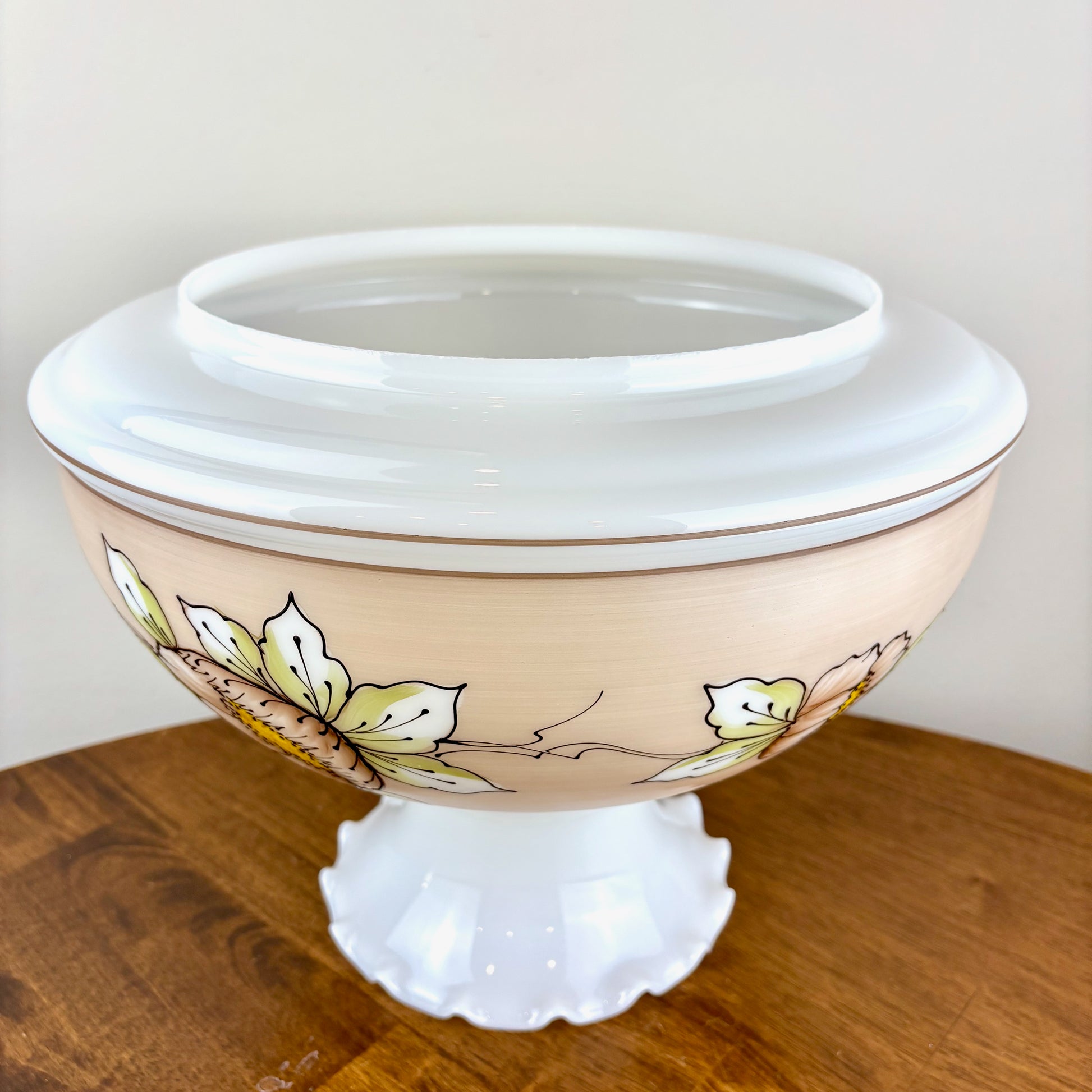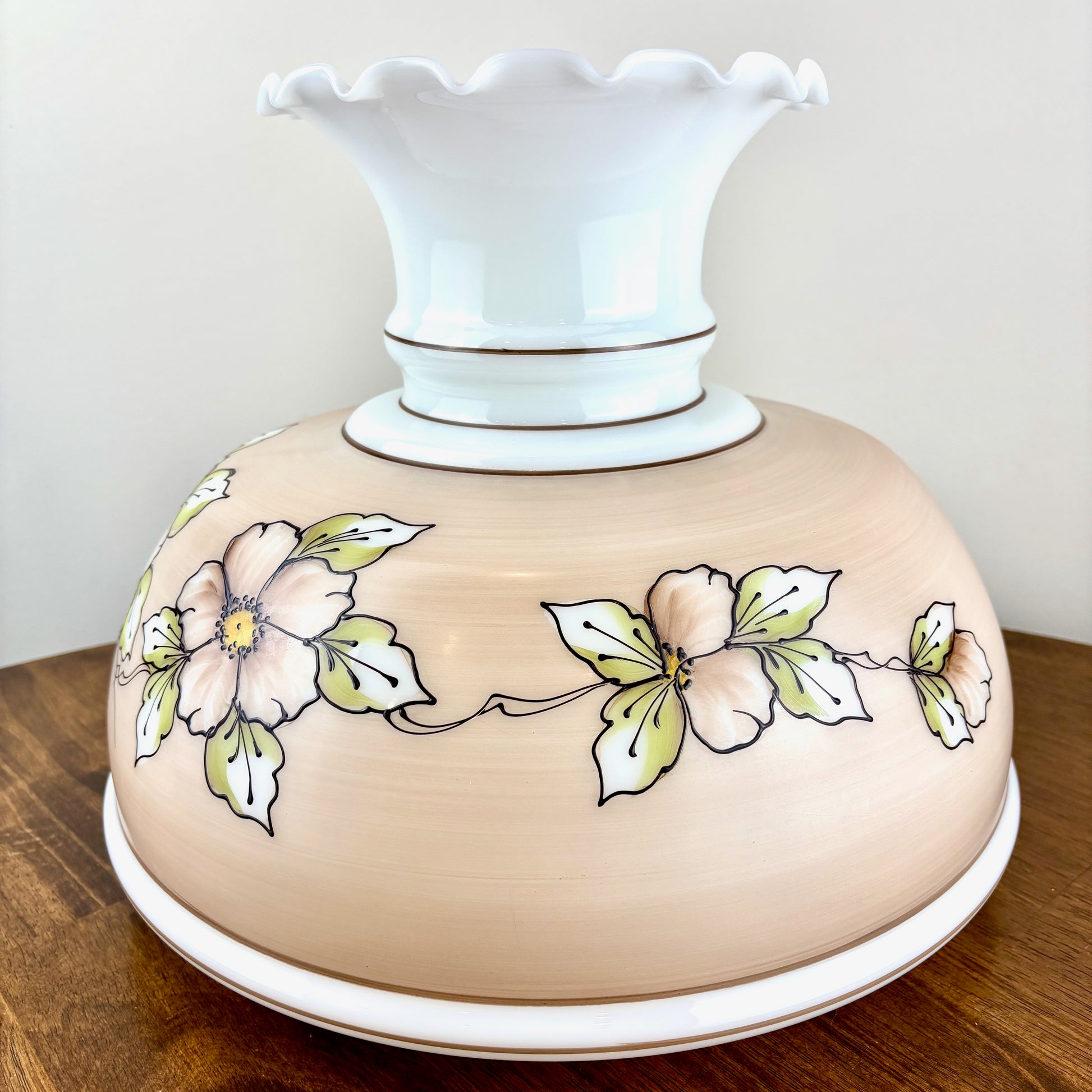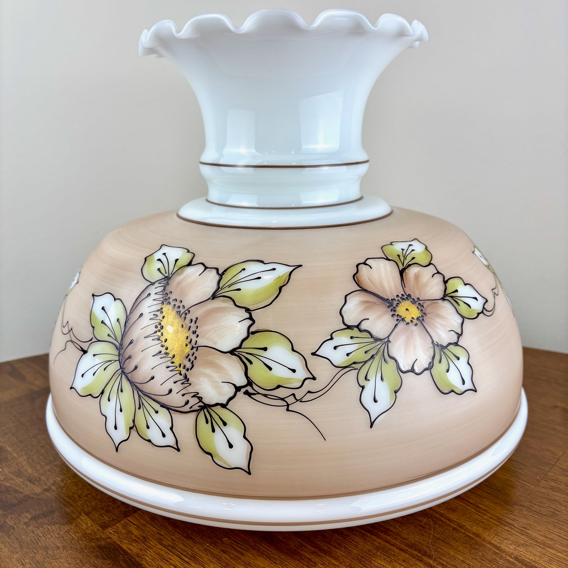 Vintage Hurricane Lamp Shade | Brown Tan Yellow Floral Hurricane Shade | Milk Glass Shade | 10 Inch Fitter | Glass Lamp Shade | Glass Shade