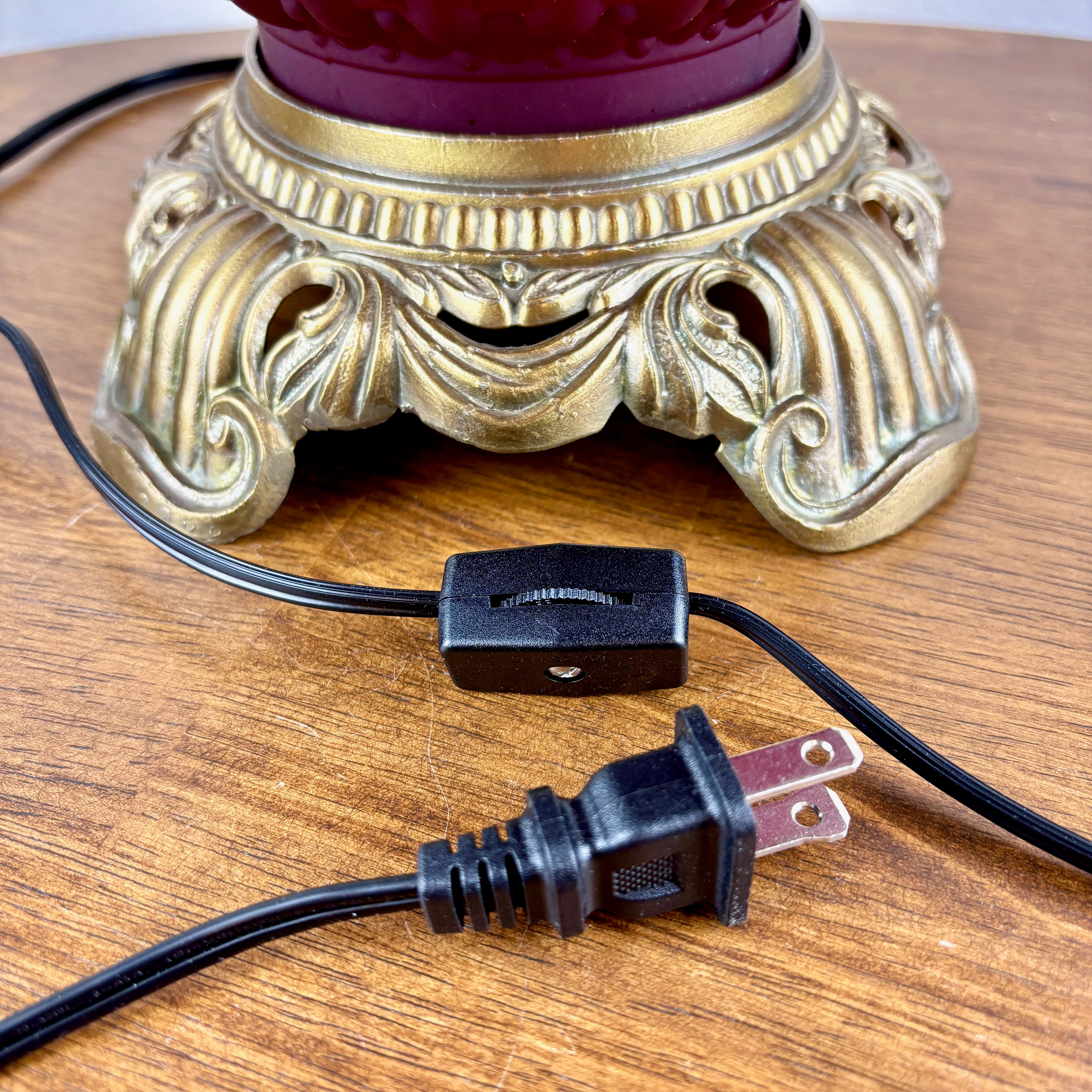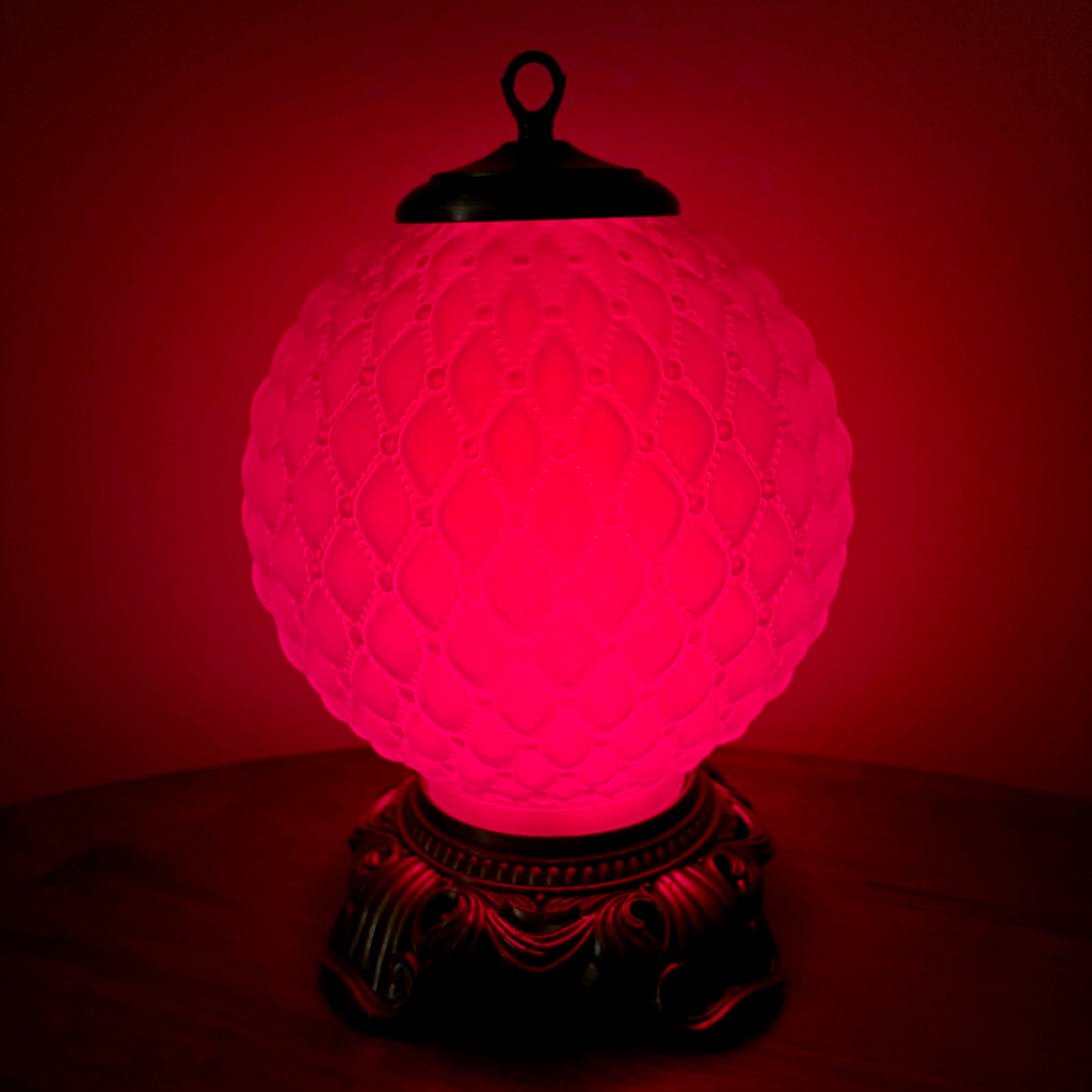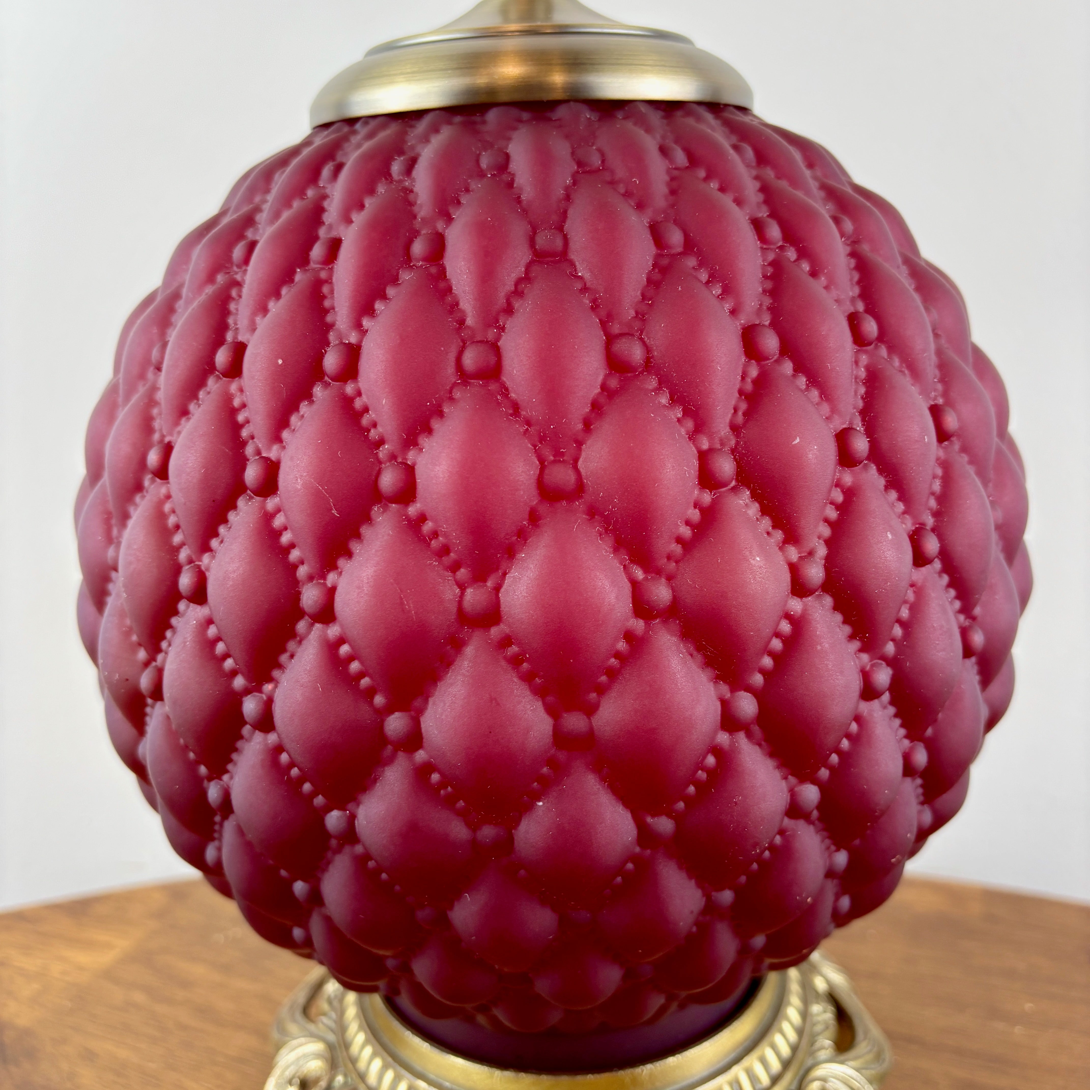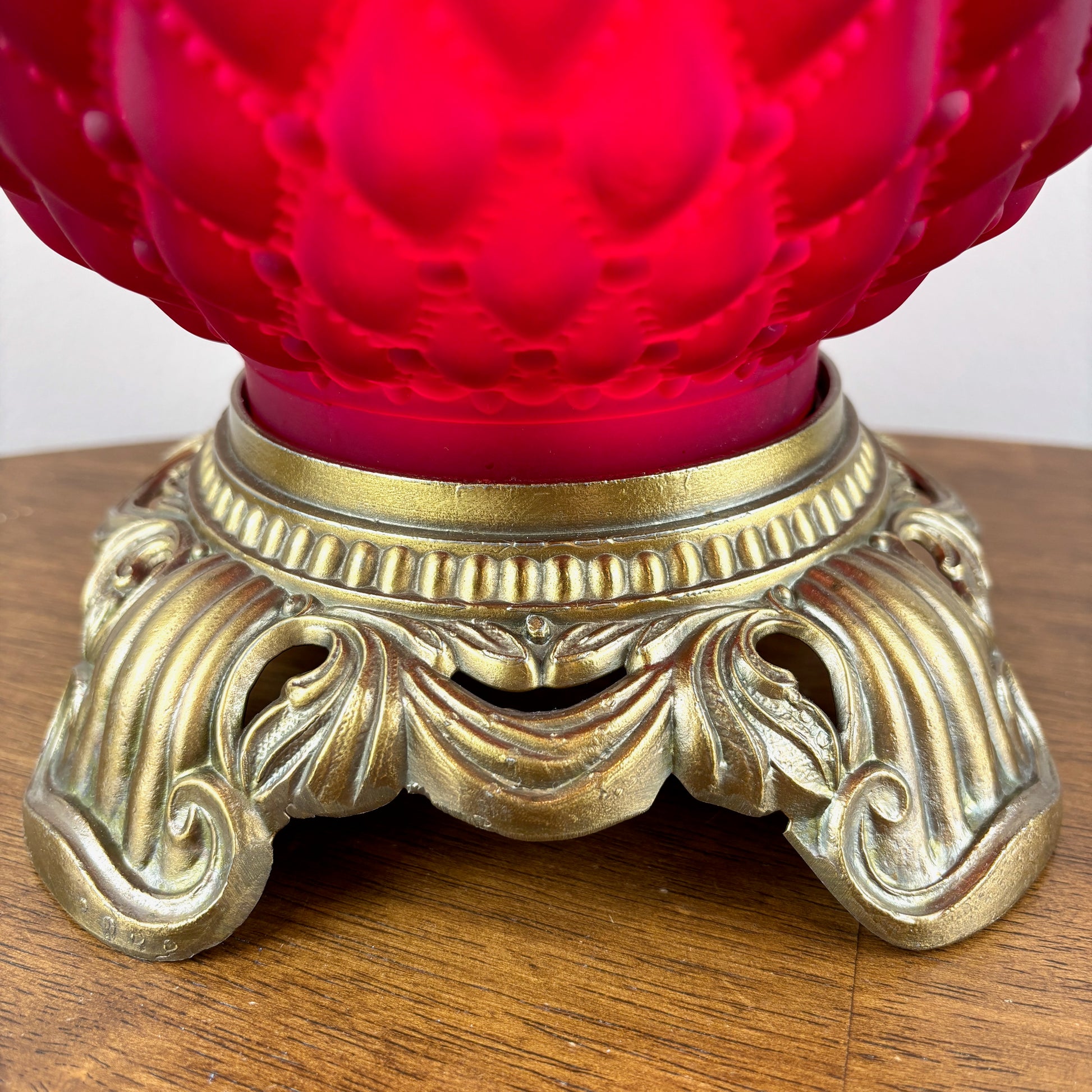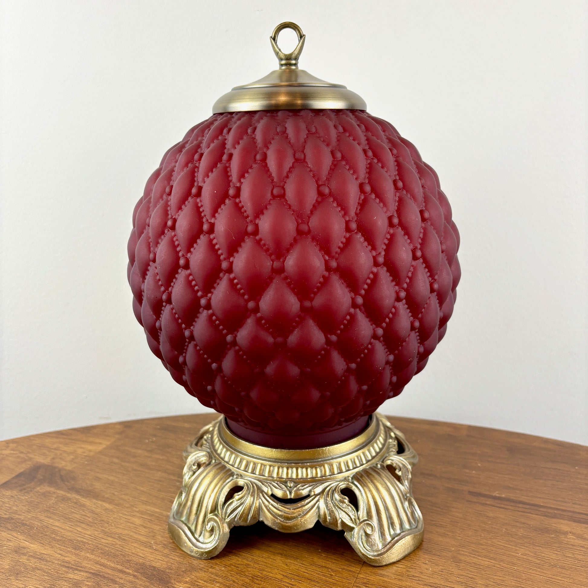 Vintage Ruby Red Satin Diamond Quilt Glass Nightlight Lamp | Accent Light | Mood Lamp | Desk Lamp | Vintage Lamp