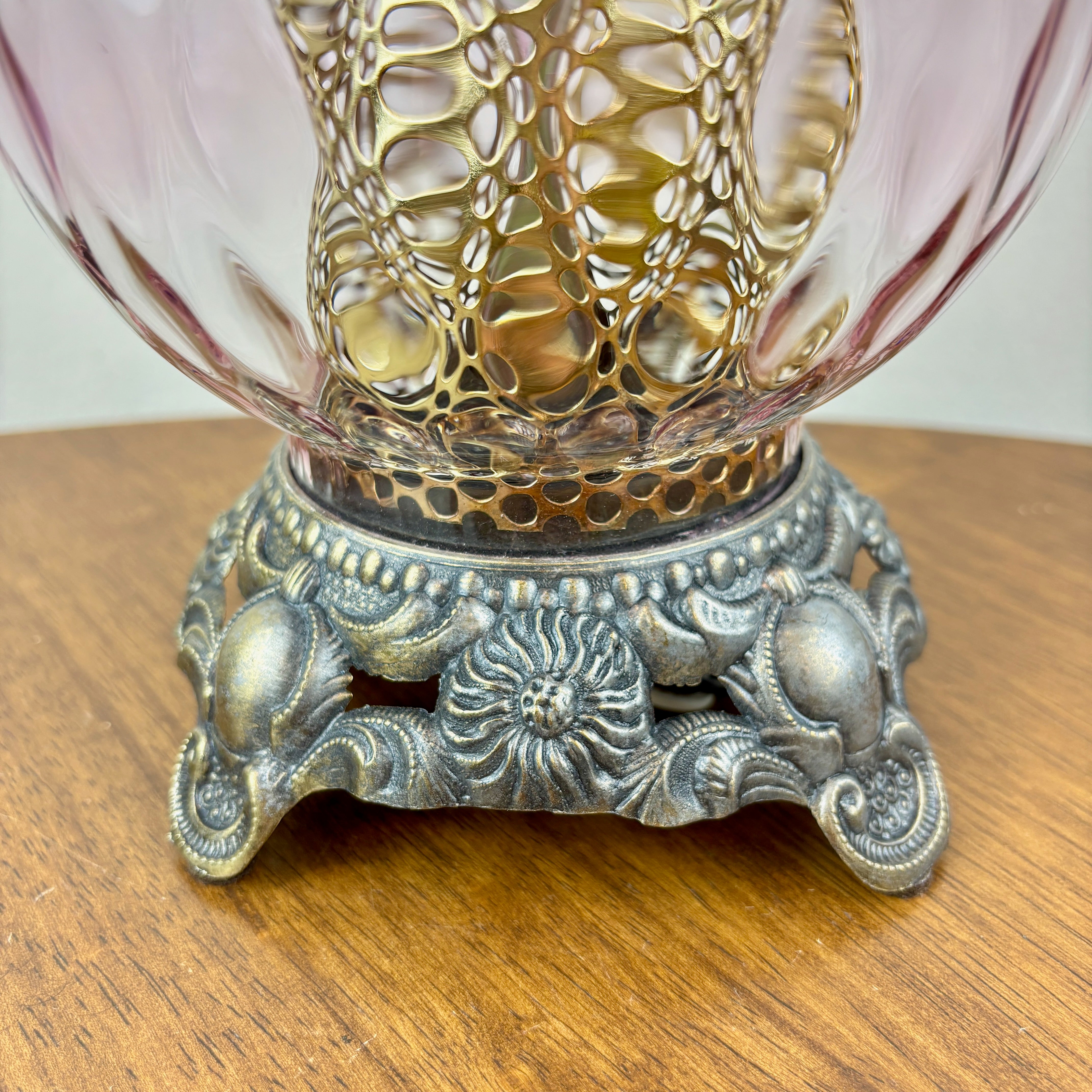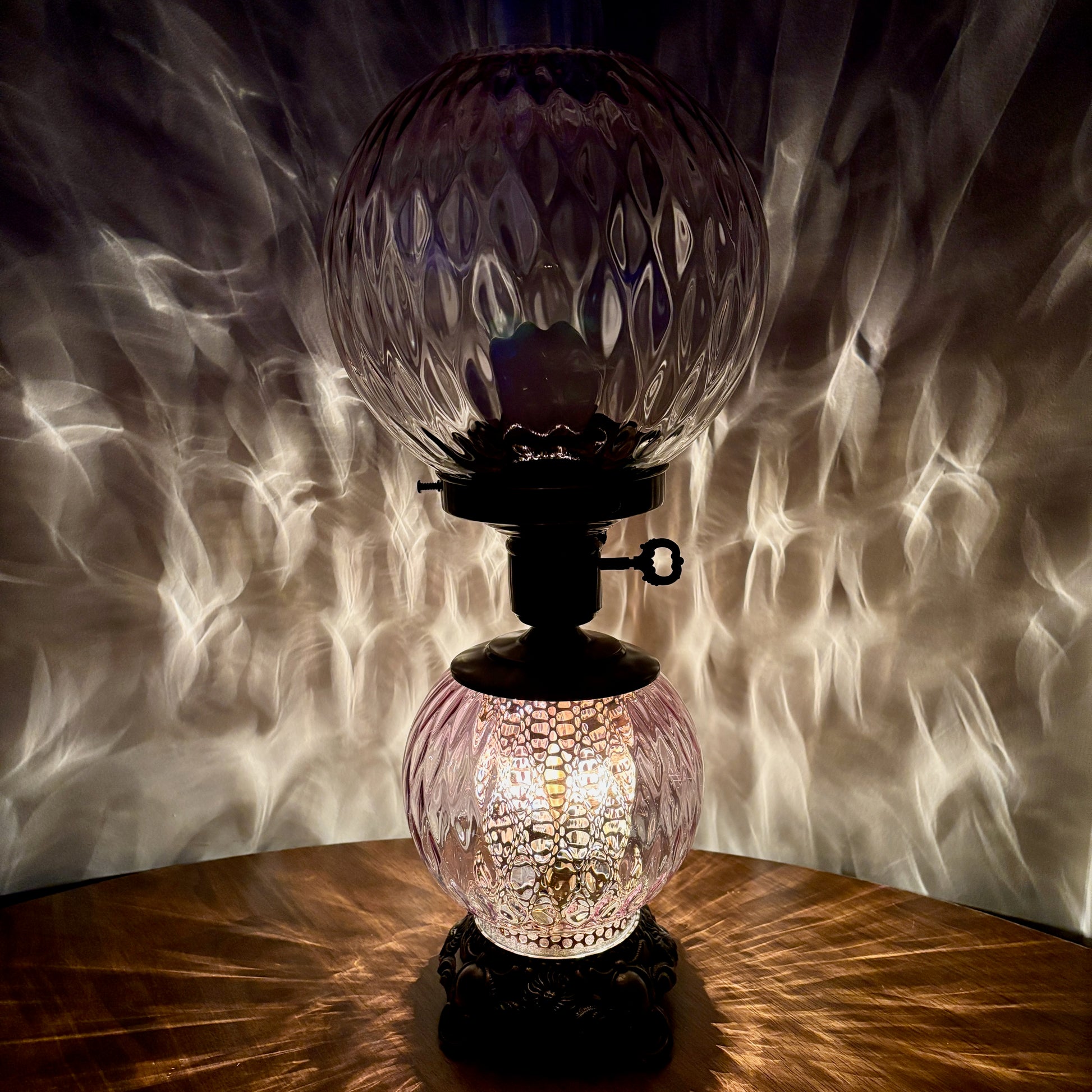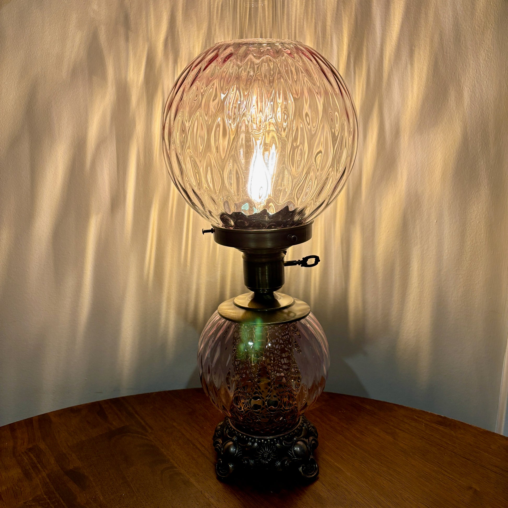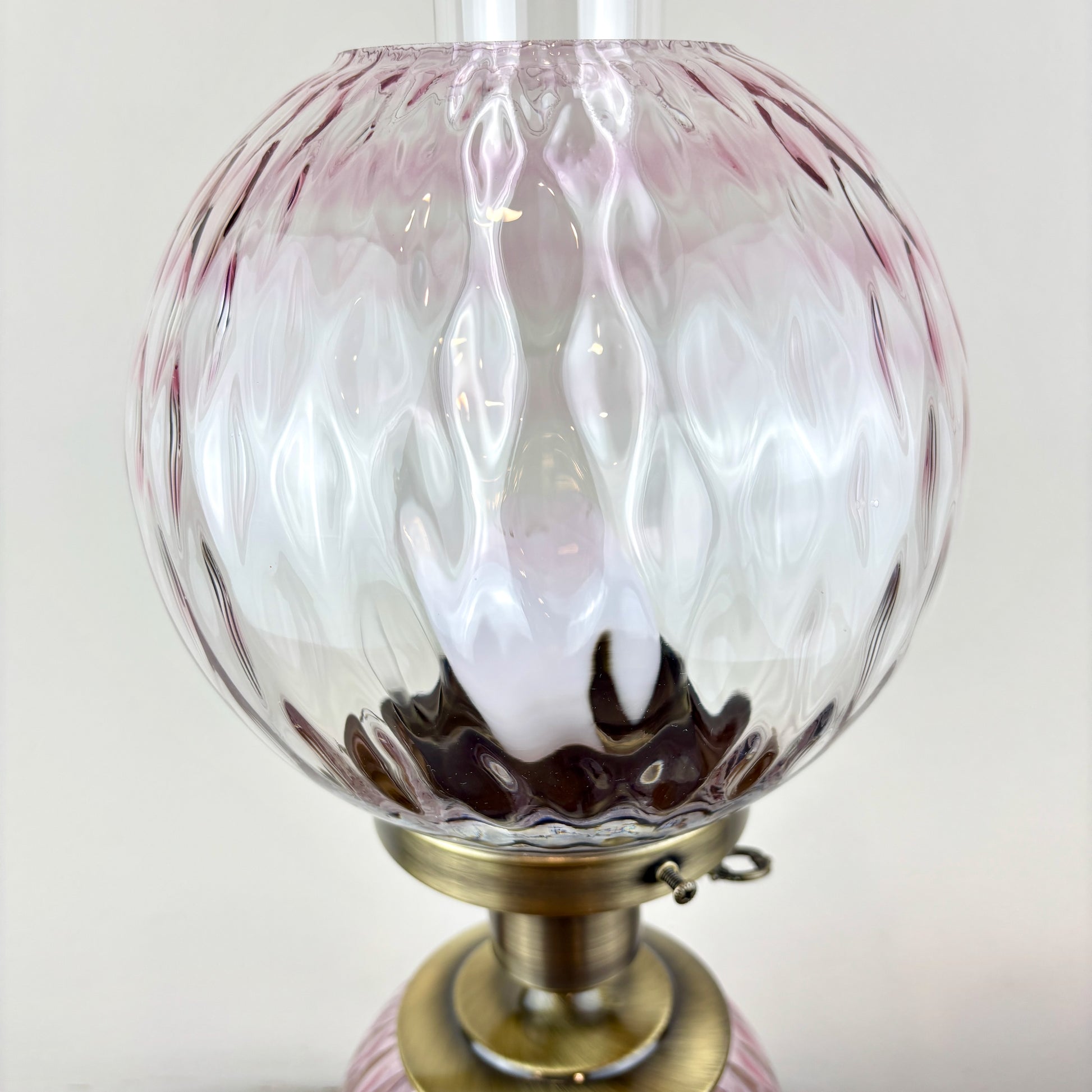 Vintage Purple Pink Optic Glass Gone With The Wind Lamp | Vintage Hurricane Lamp | Vintage Lamp | Purple Glass Lamp | Pink Glass Lamp
