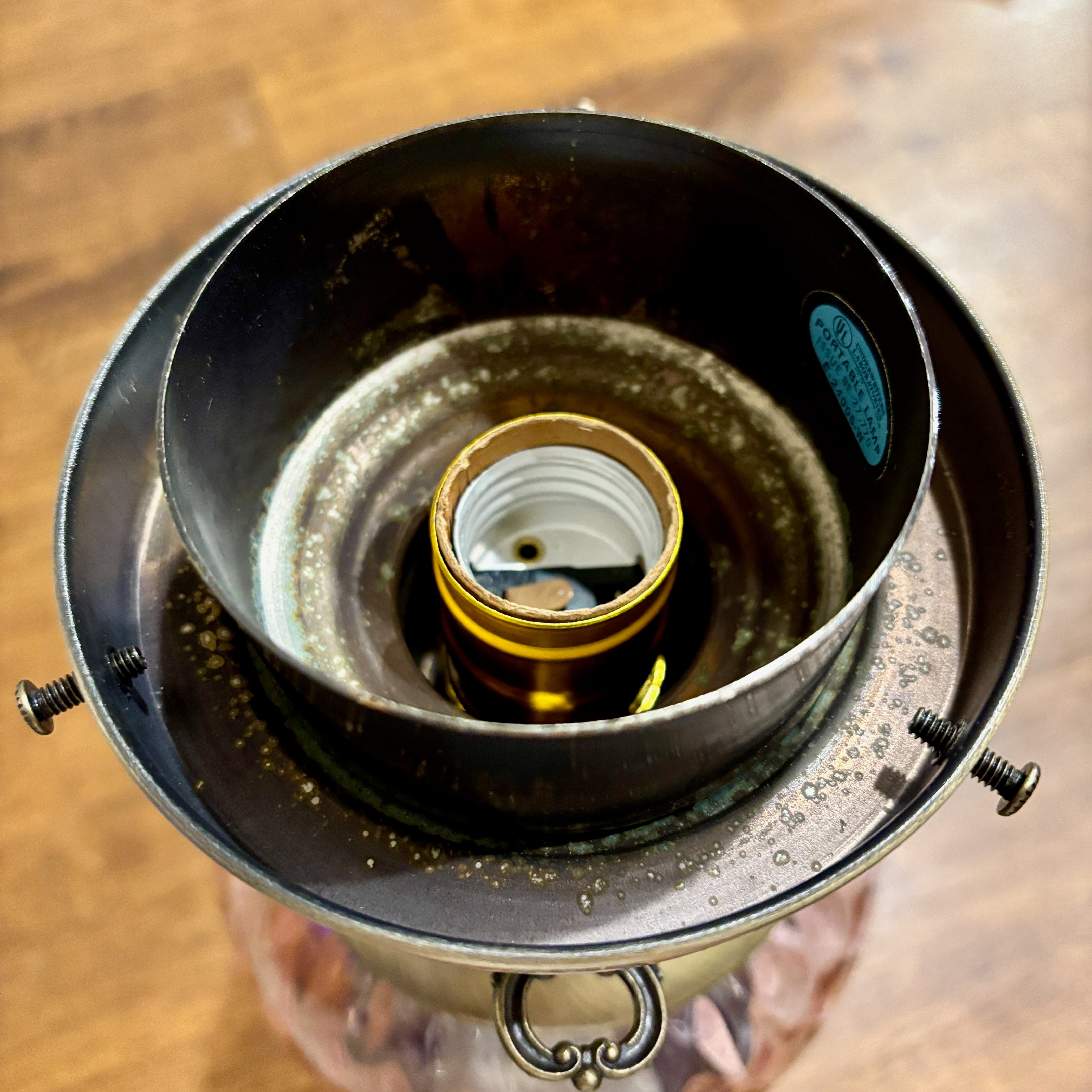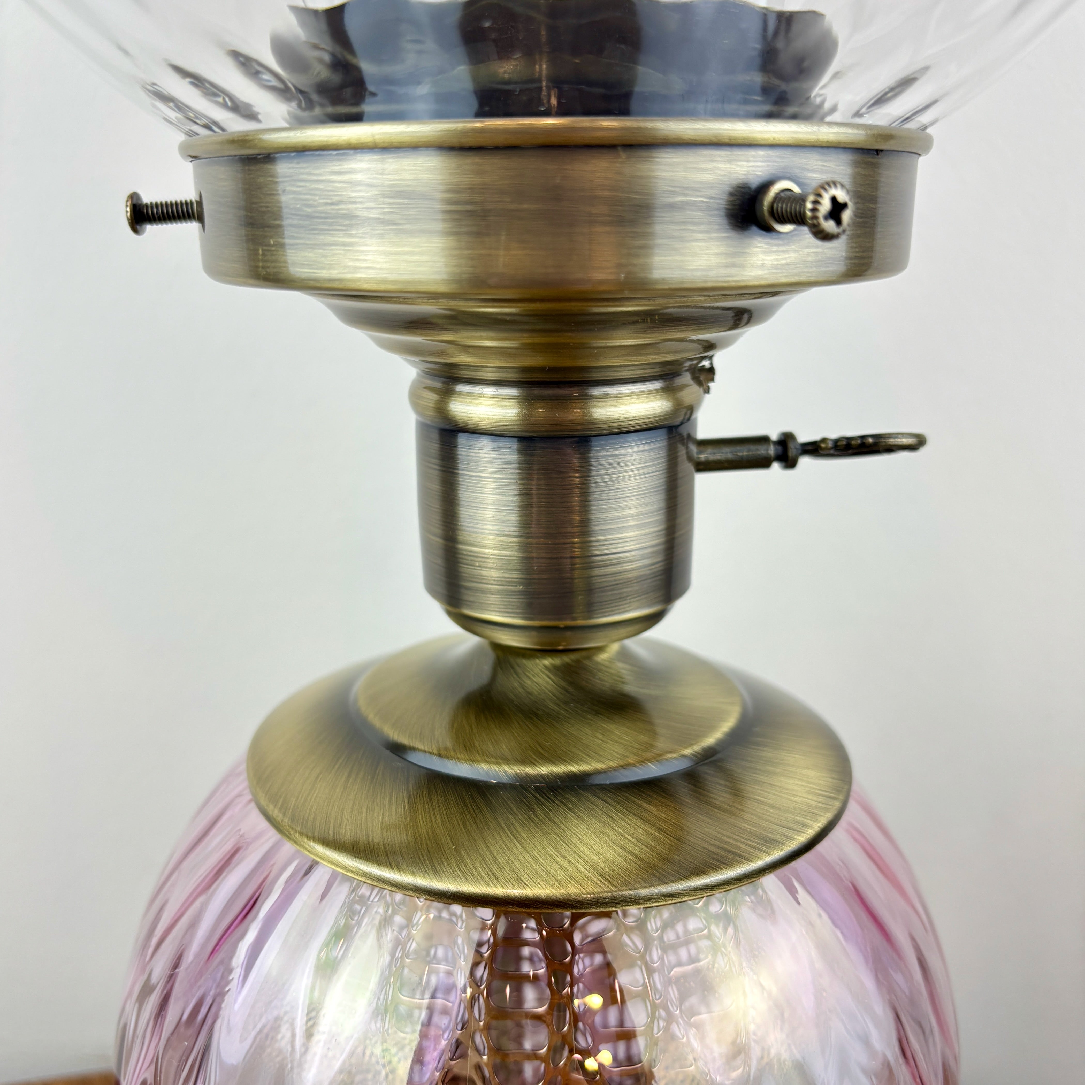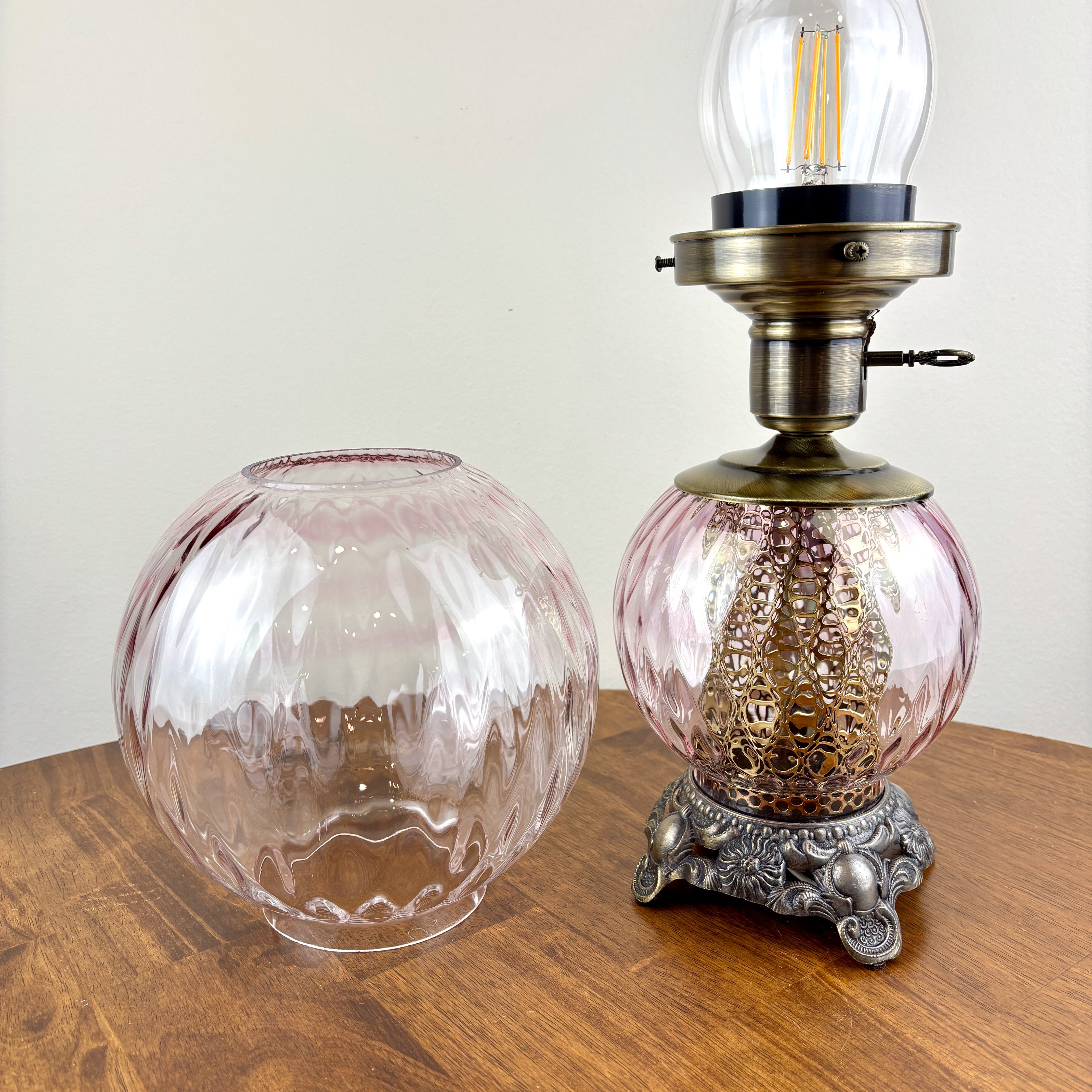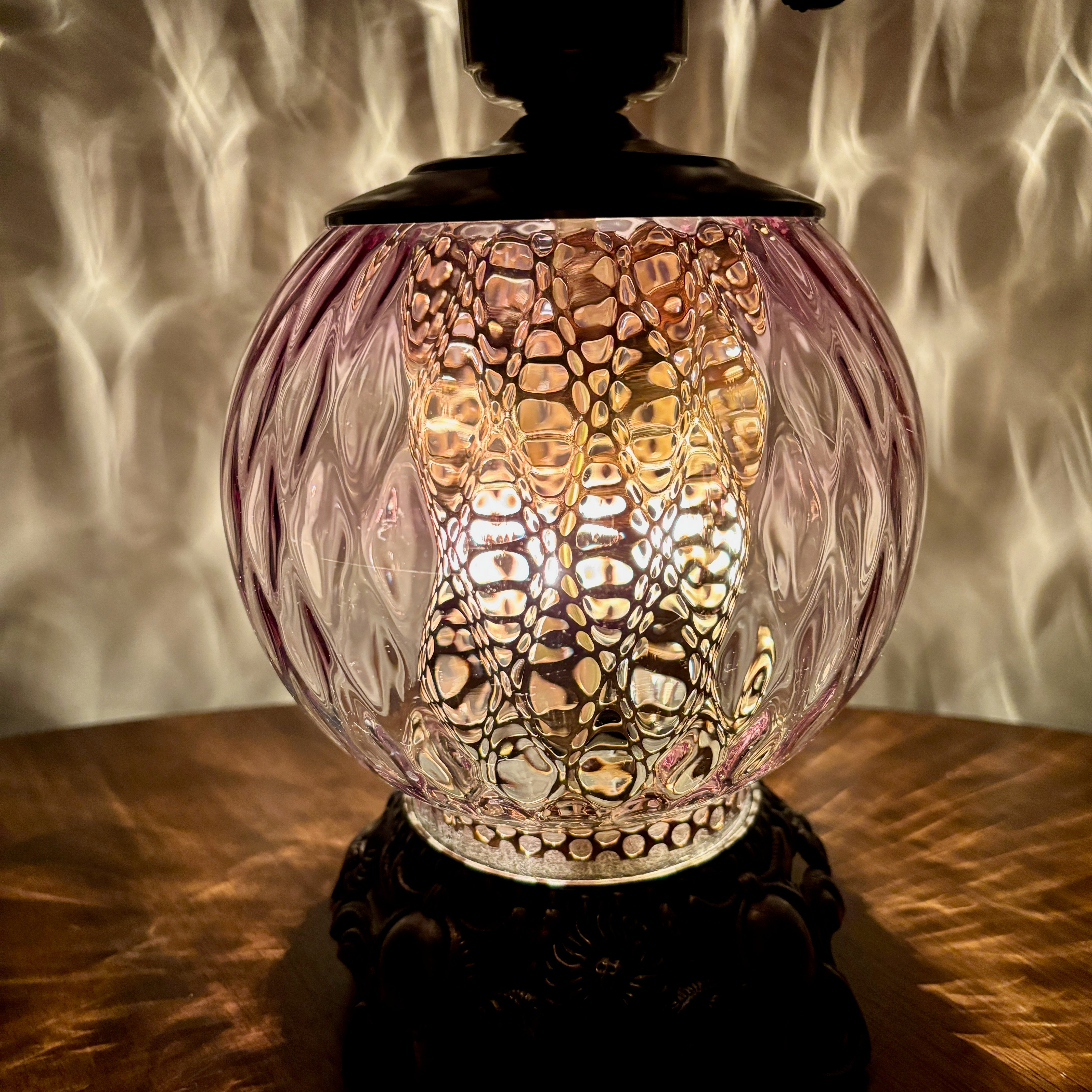 Vintage Purple Pink Optic Glass Gone With The Wind Lamp | Vintage Hurricane Lamp | Vintage Lamp | Purple Glass Lamp | Pink Glass Lamp