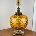 Vintage Amber Glass Table Lamp | Hollywood Regency Style Lamp | MCM Amber Glass Lamp | 1960's Table Lamp