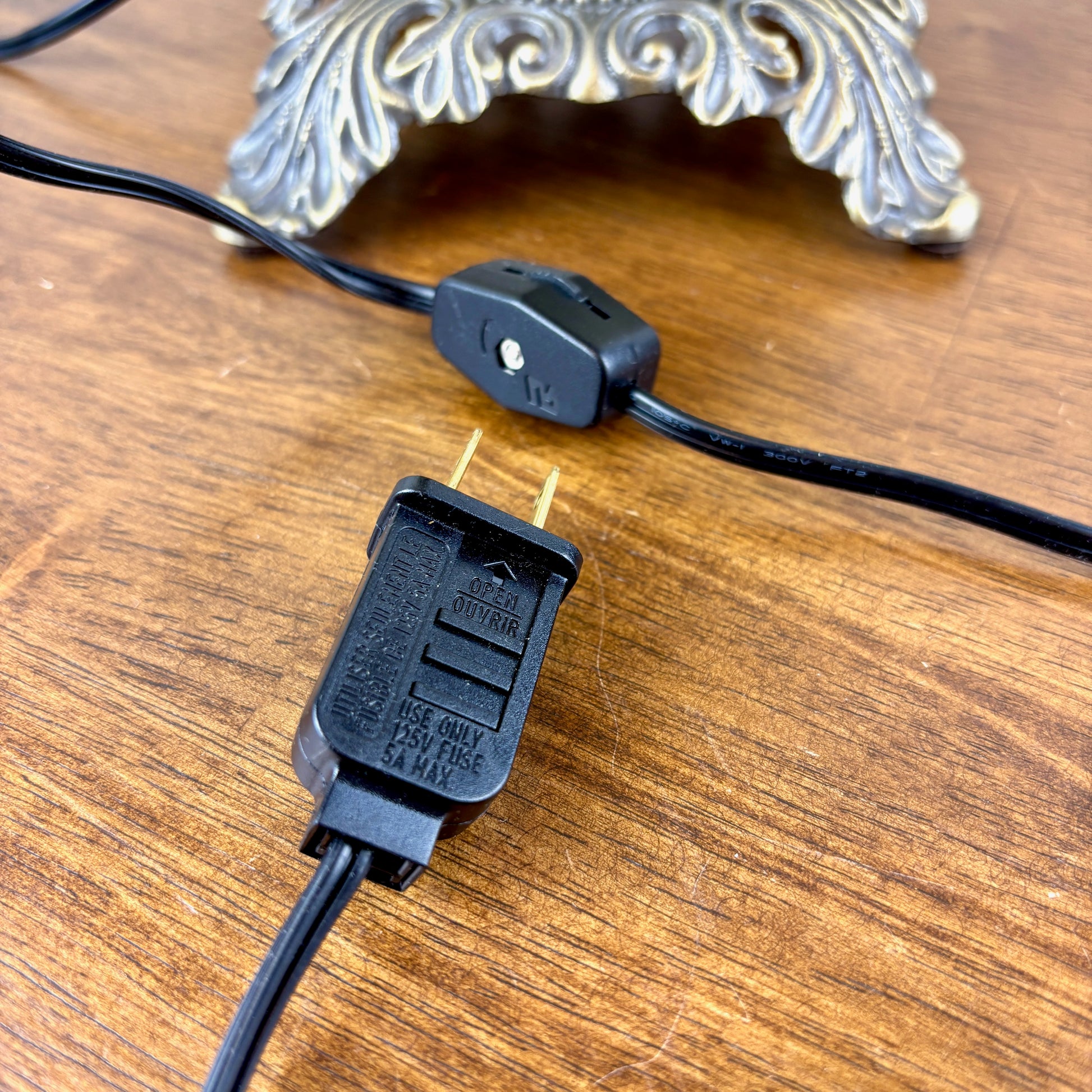 Lamp has a new electrical cord. Comes with In-line ON-OFF rotary cord switch.