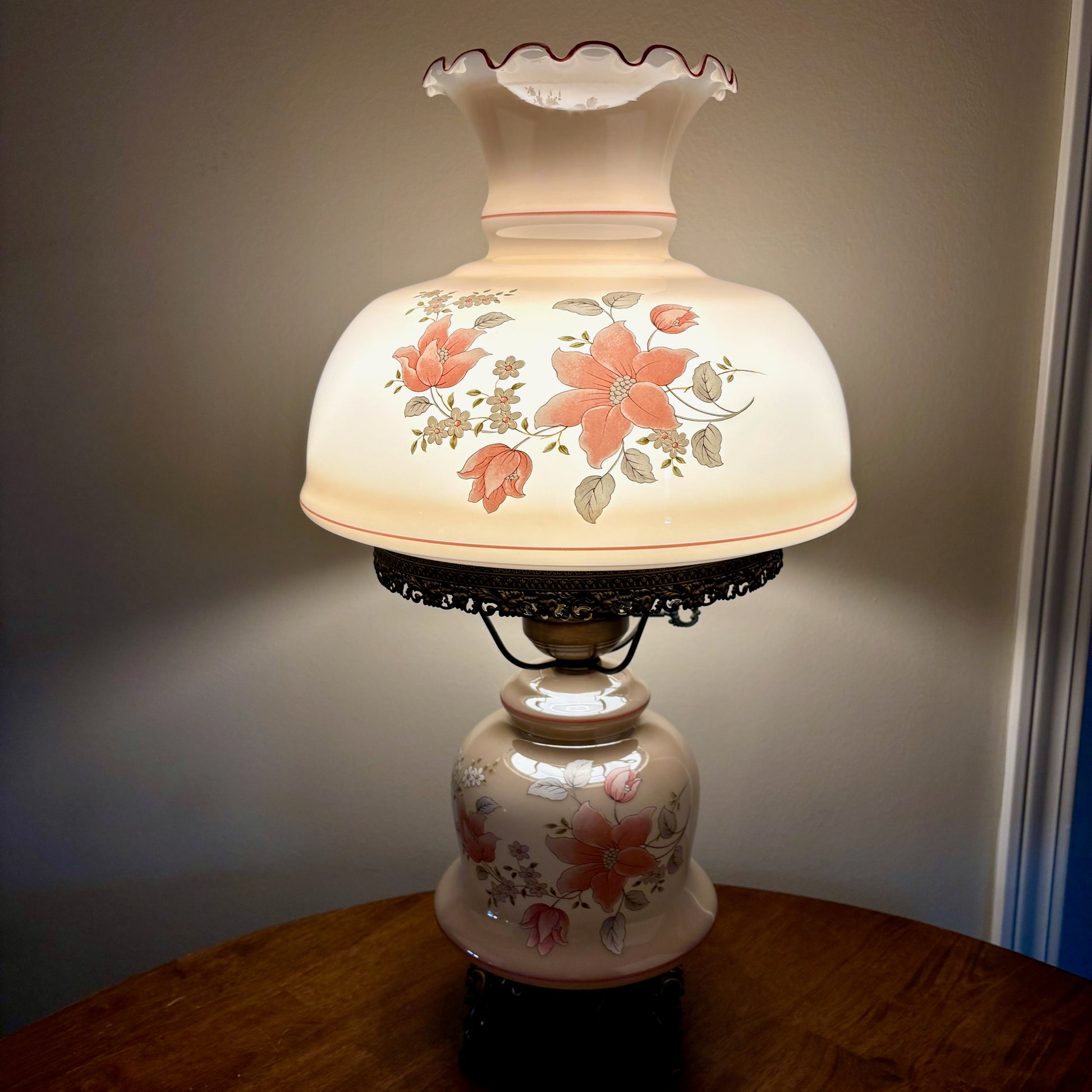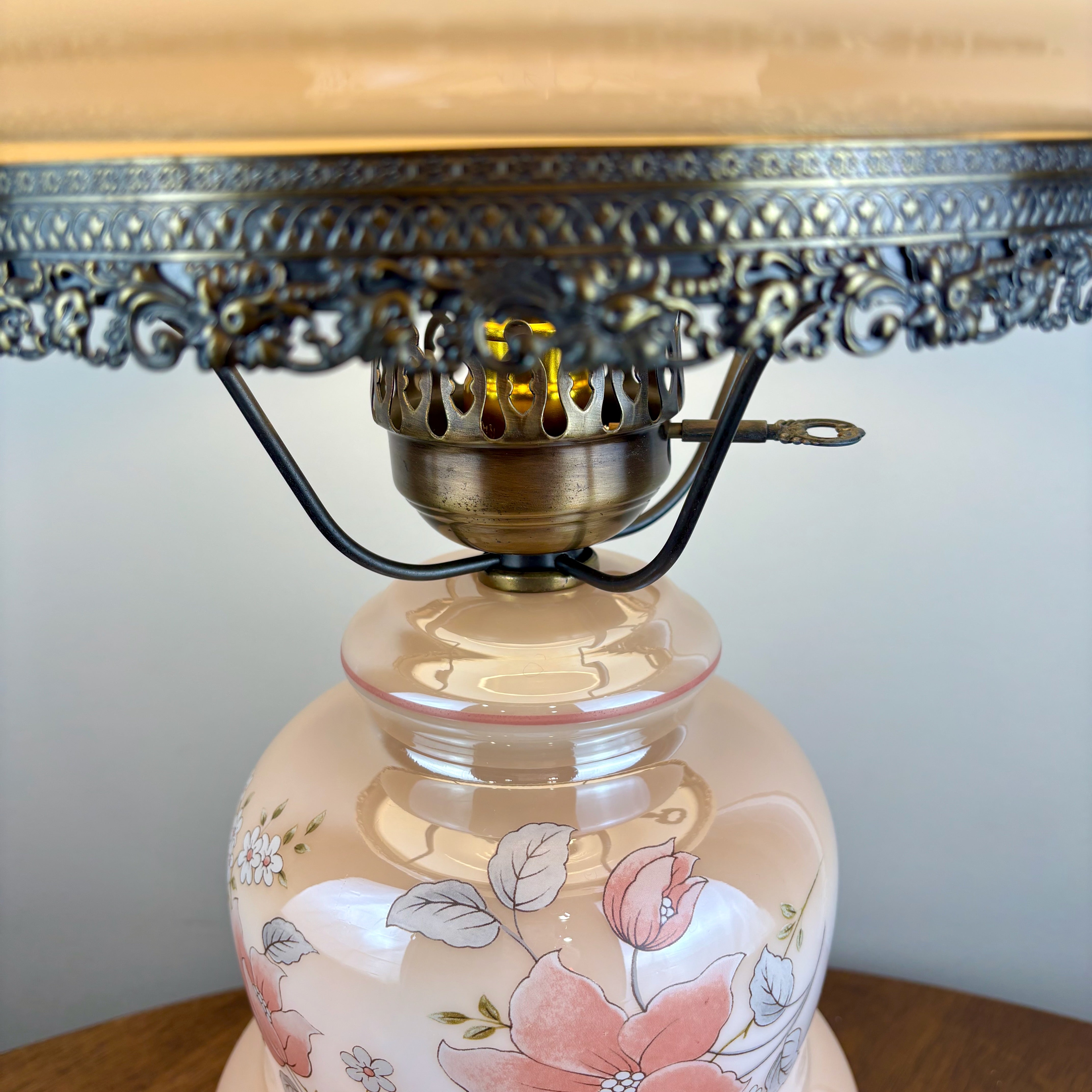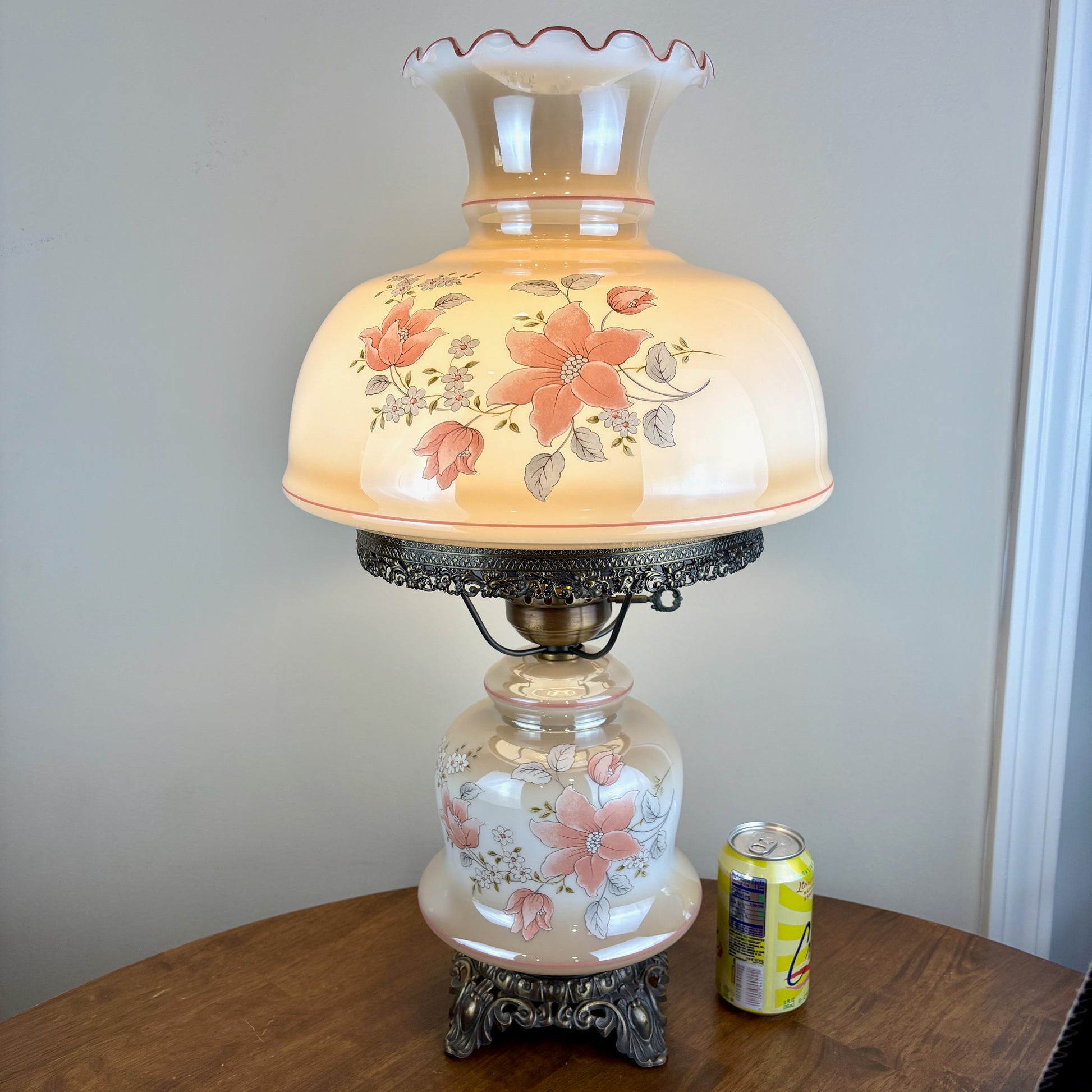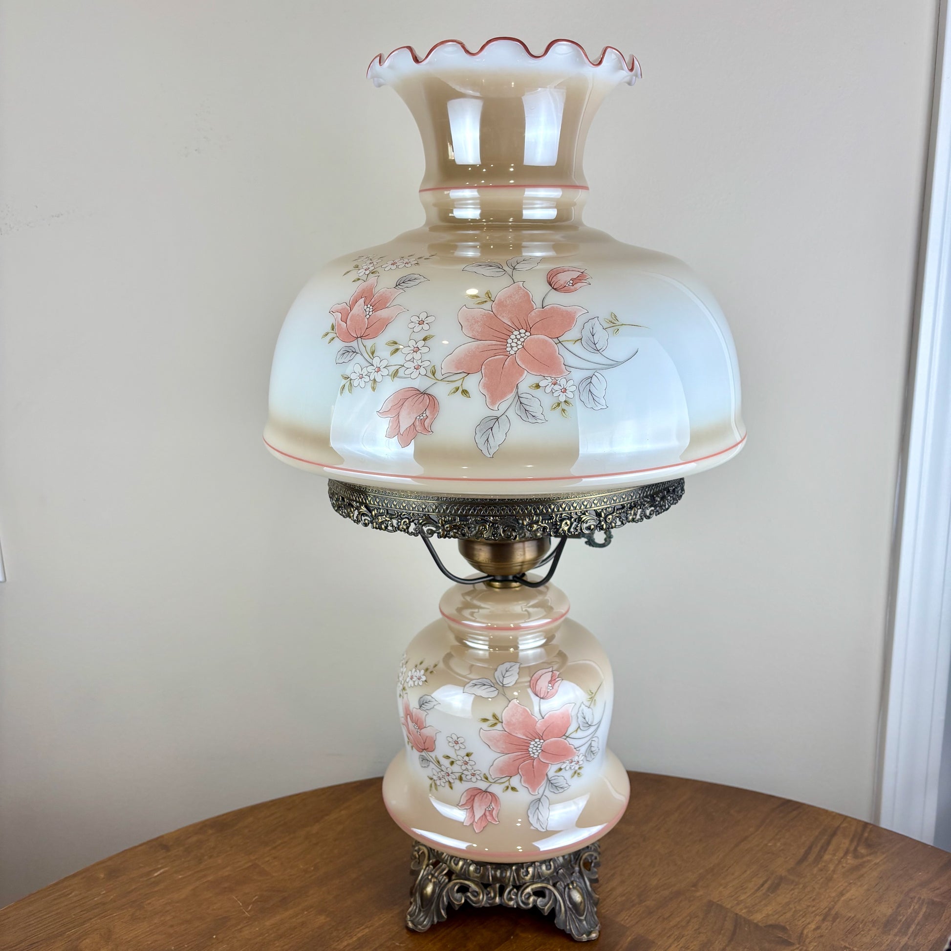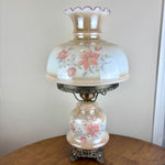 Vintage Beige Luster Pink White Floral Milk Glass Hurricane Lamp | Vintage Lamp | Milk Glass Lamp | Vintage Hurricane Lamp.
