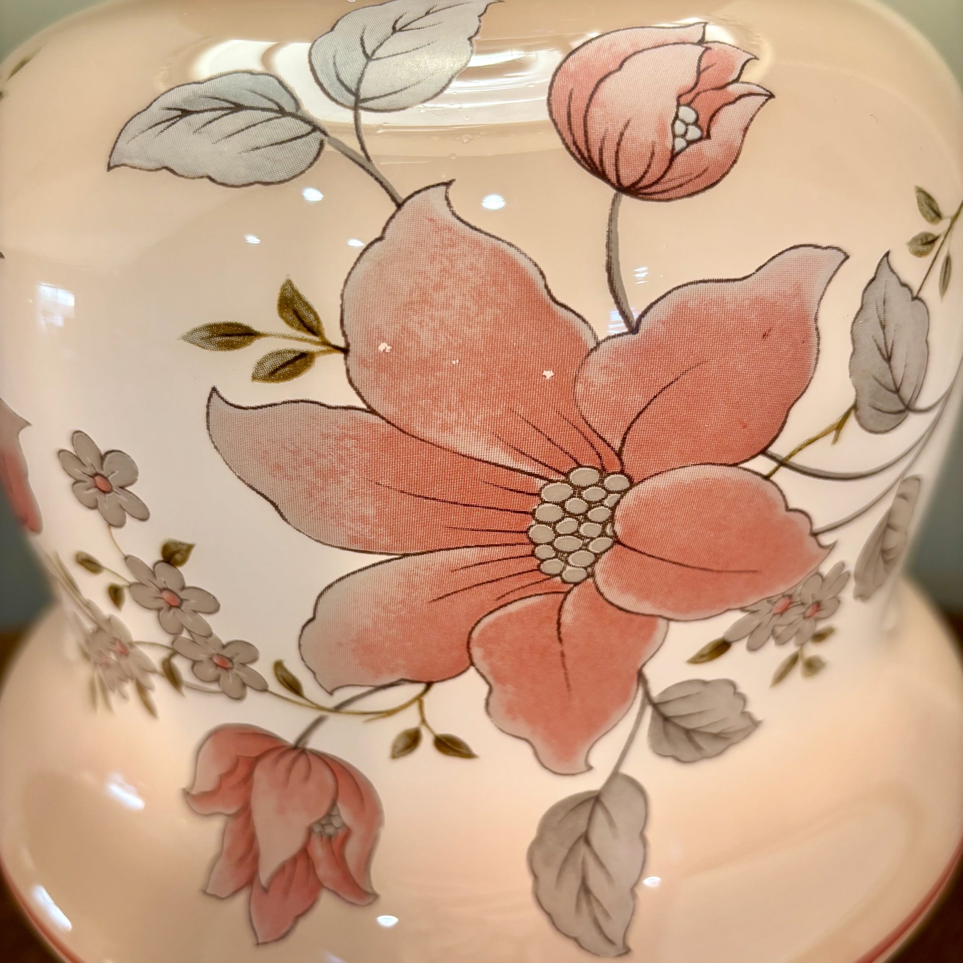 Gorgeous beige luster pink and white floral hurricane lamp.