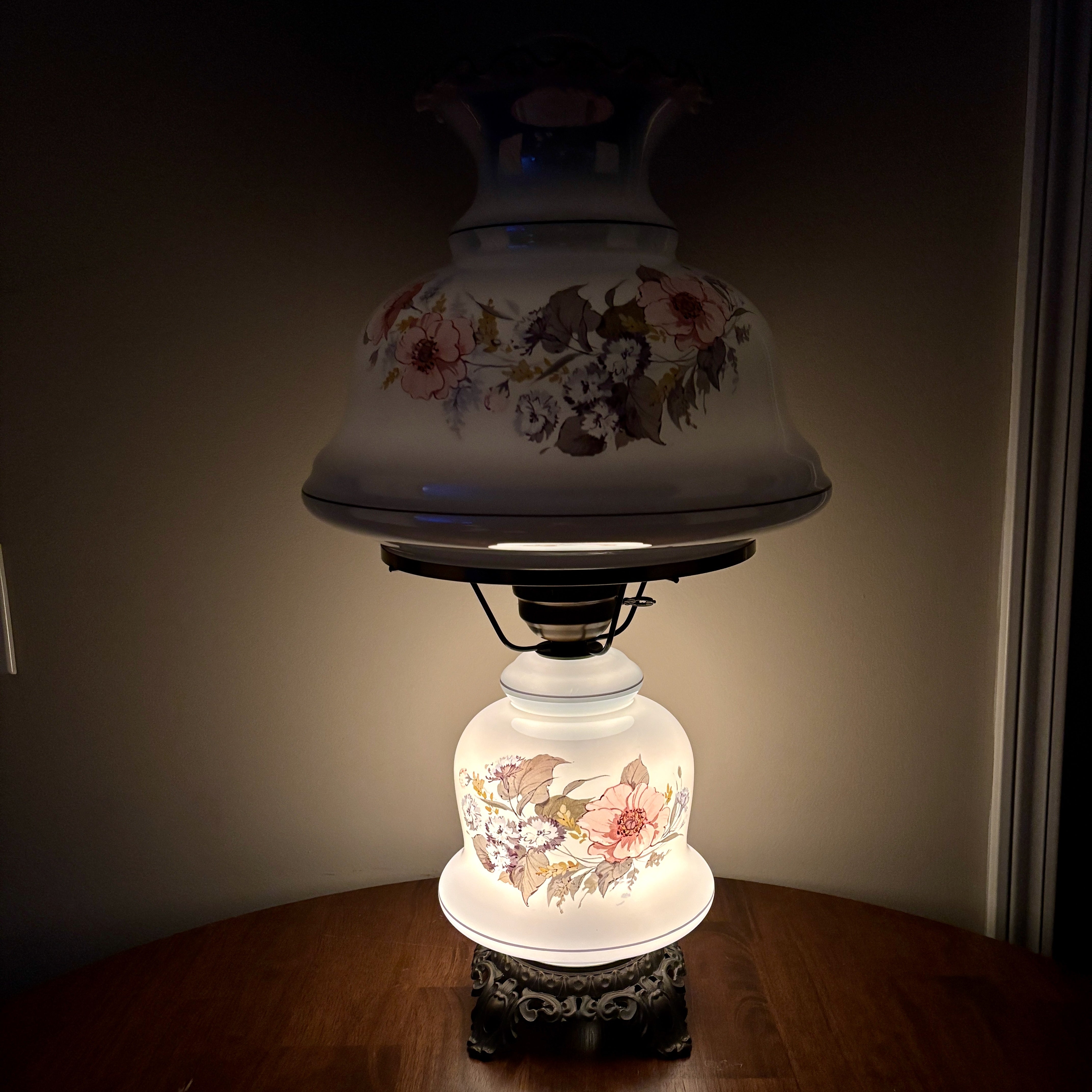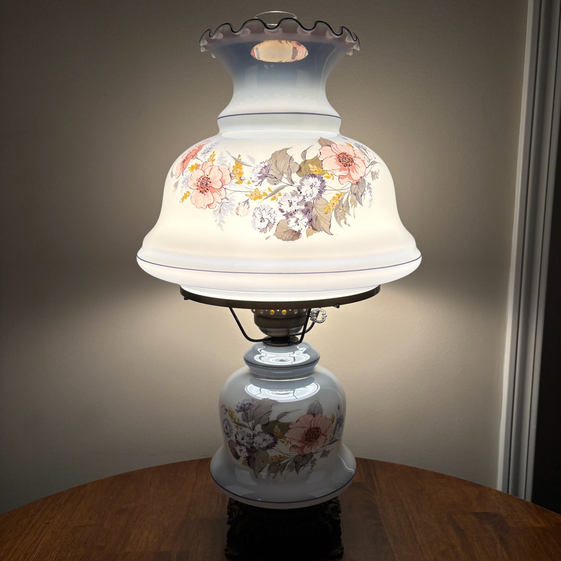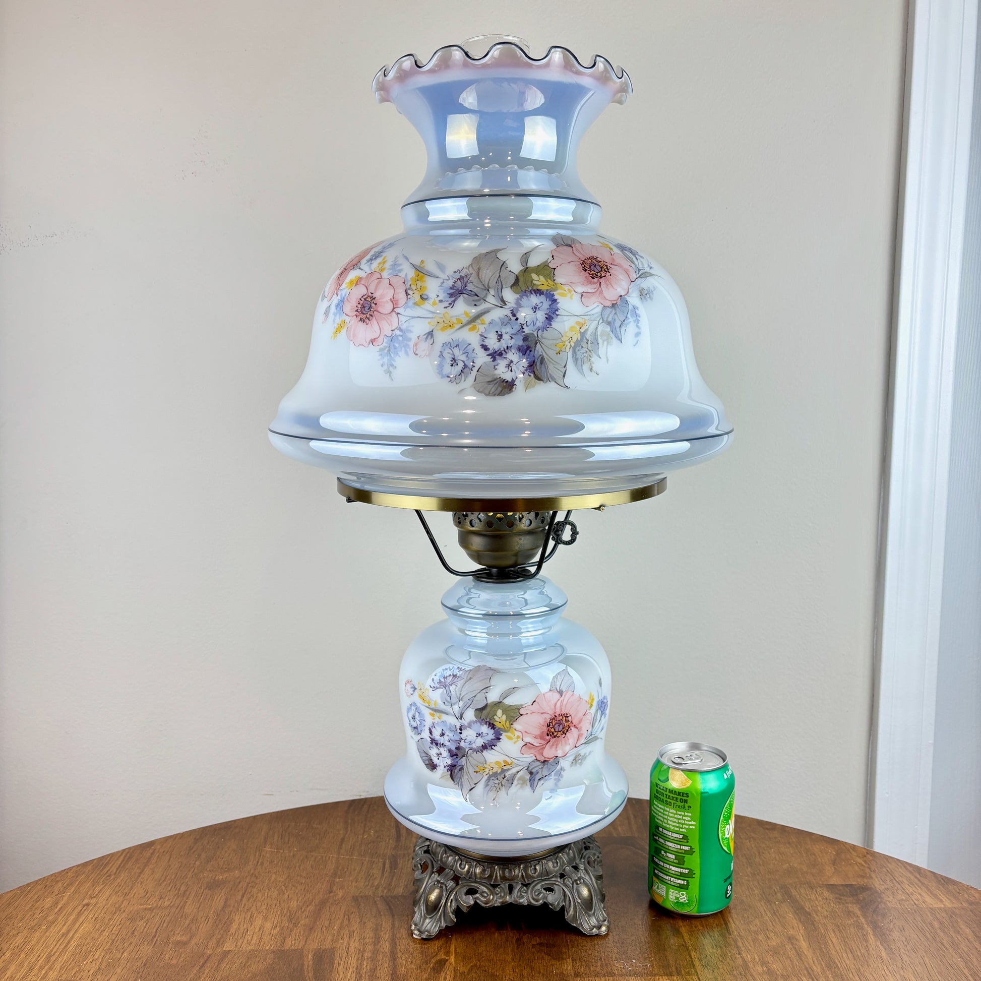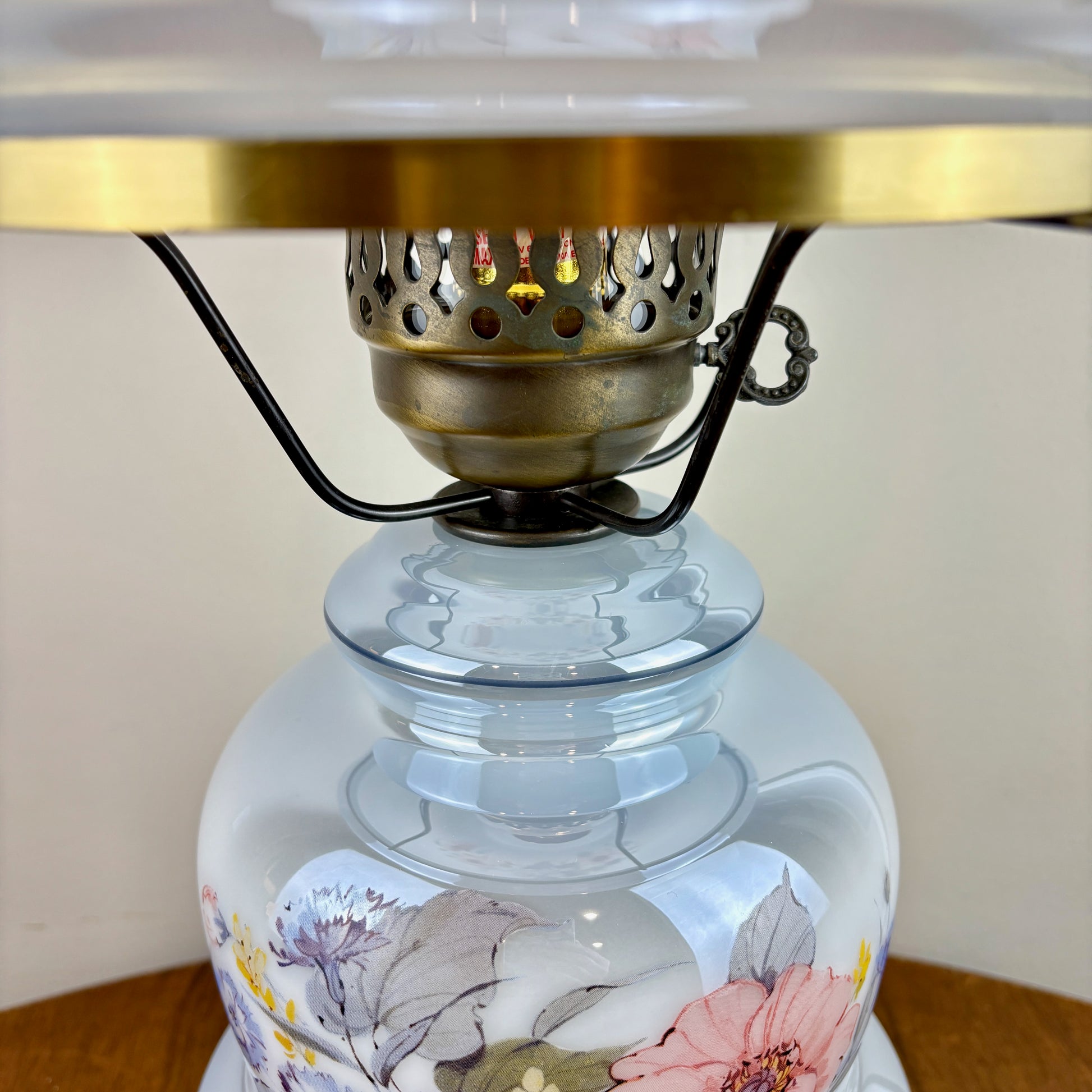 Vintage Blue Luster Blue Pink Floral Hurricane Lamp | Vintage Hurricane Lamp | Gone With The Wind Lamp | Vintage Lamp | Milk Glass Lamp