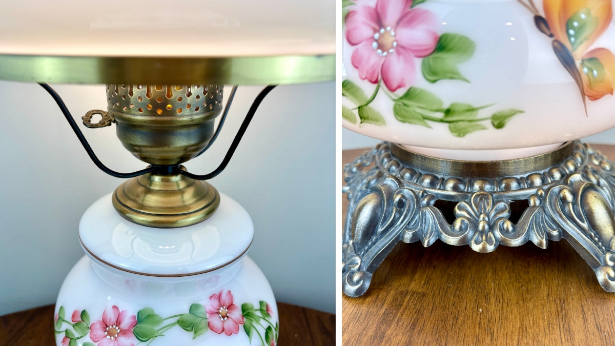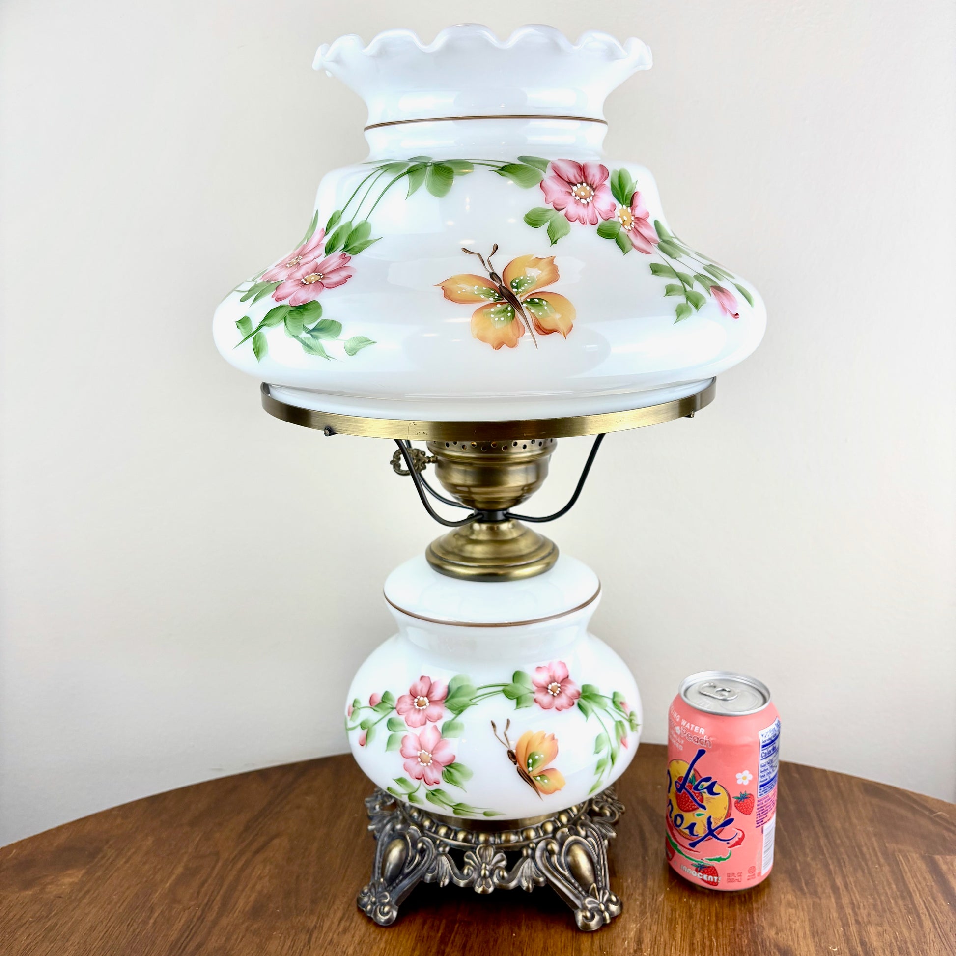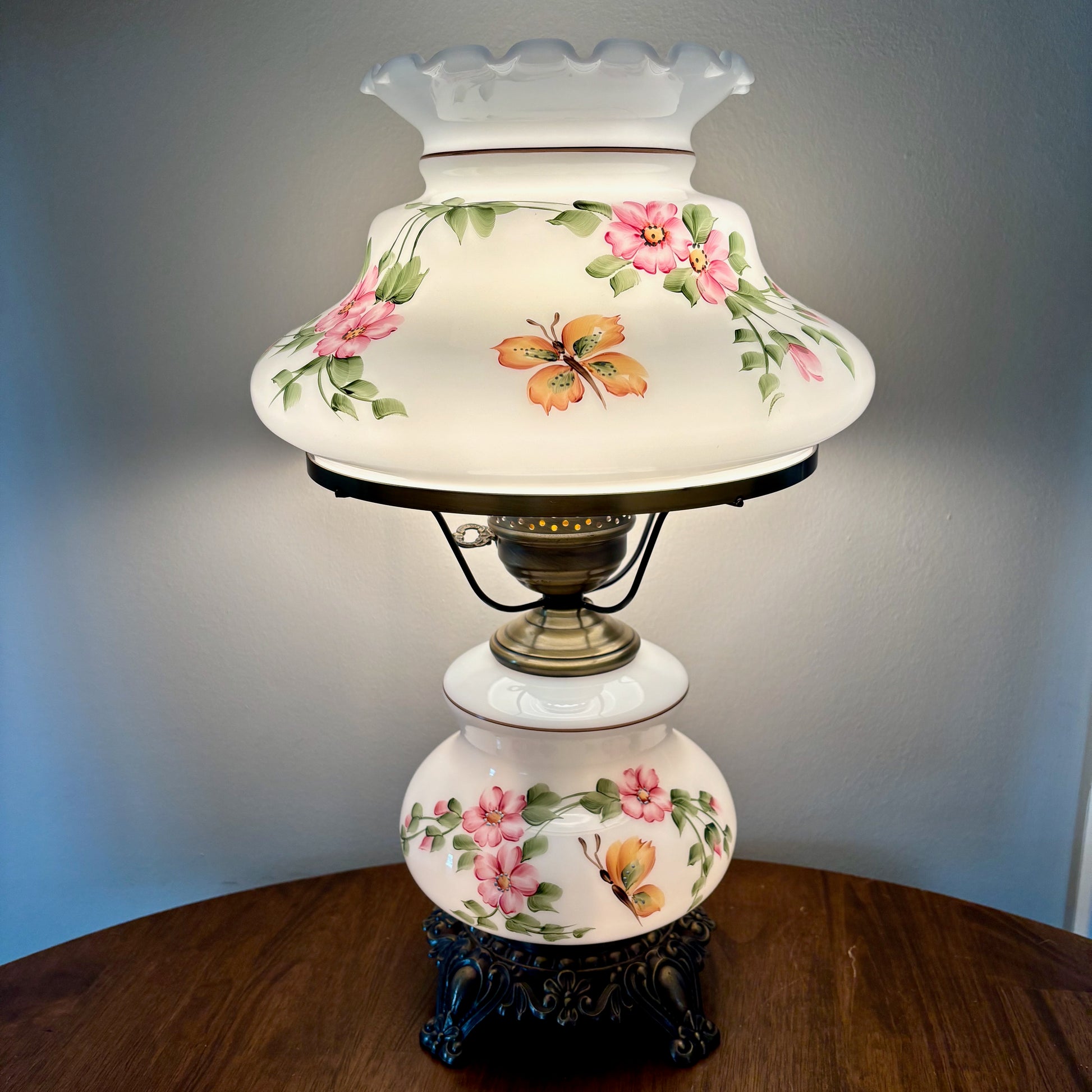 Vintage Butterfly Pink Floral Milk Glass Hurricane Lamp | Vintage Hurricane Lamp | Gone With The Wind Lamp | Vintage Lamp | Milk Glass Lamp