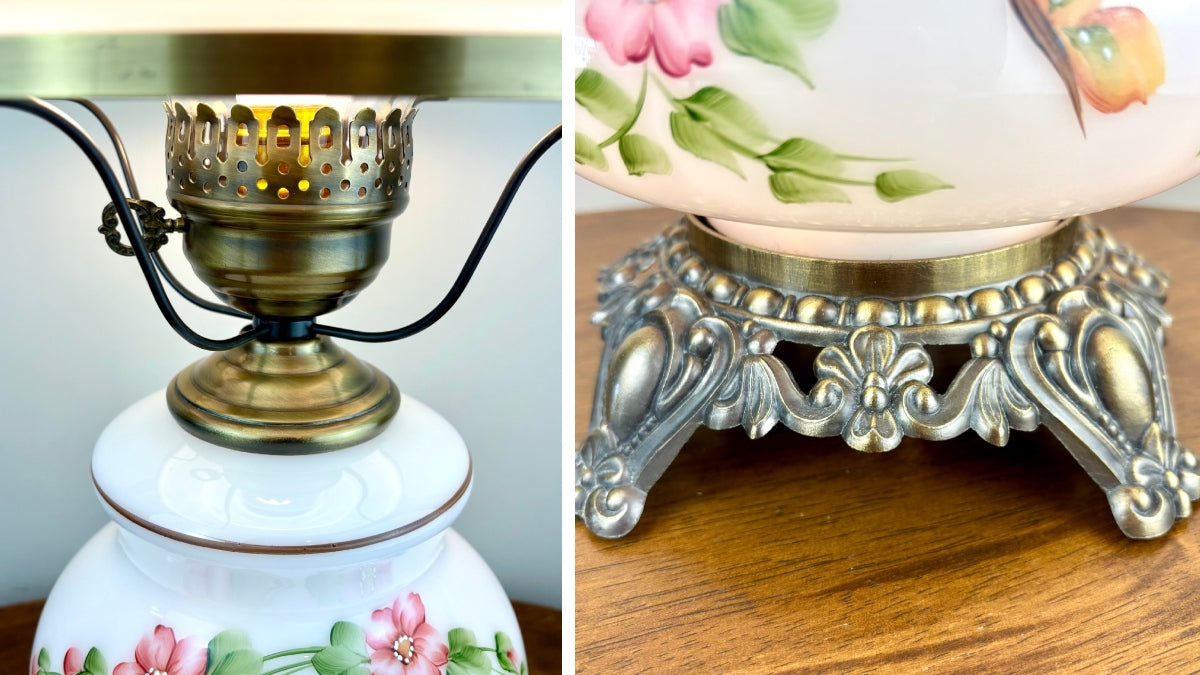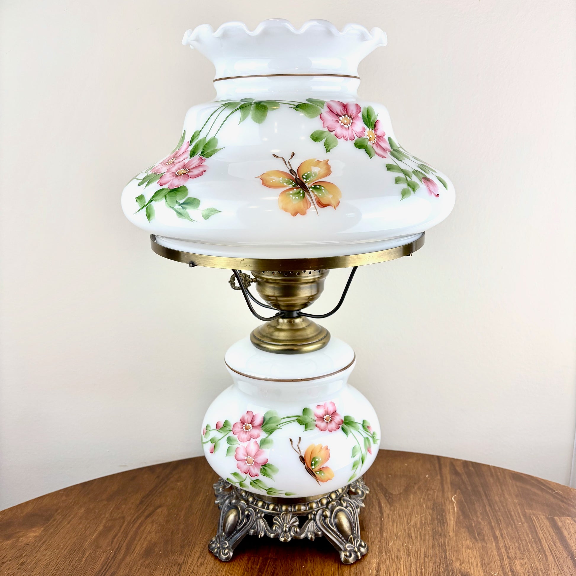 Vintage Butterfly Pink Floral Milk Glass Hurricane Lamp | Vintage Hurricane Lamp | Gone With The Wind Lamp | Vintage Lamp | Milk Glass Lamp
