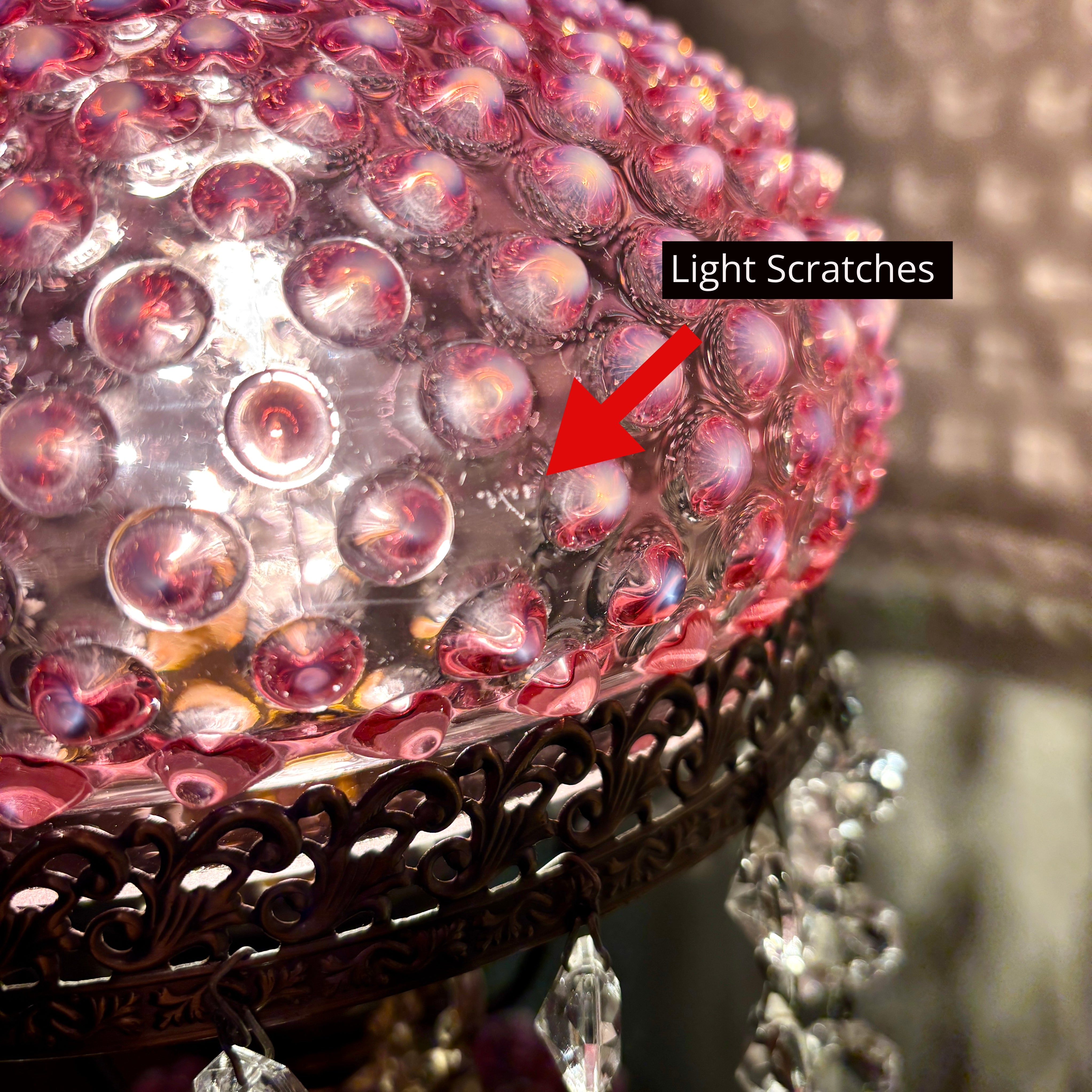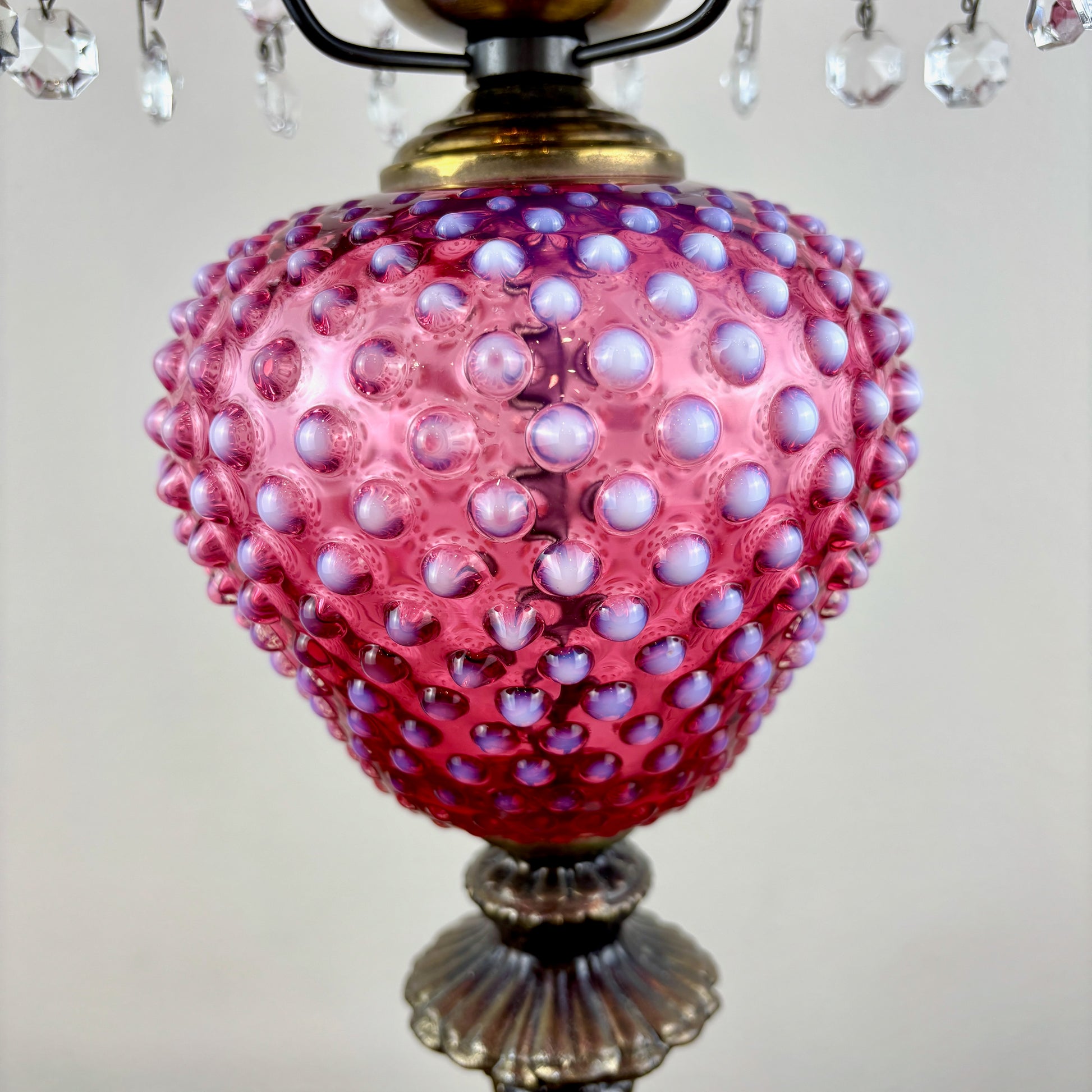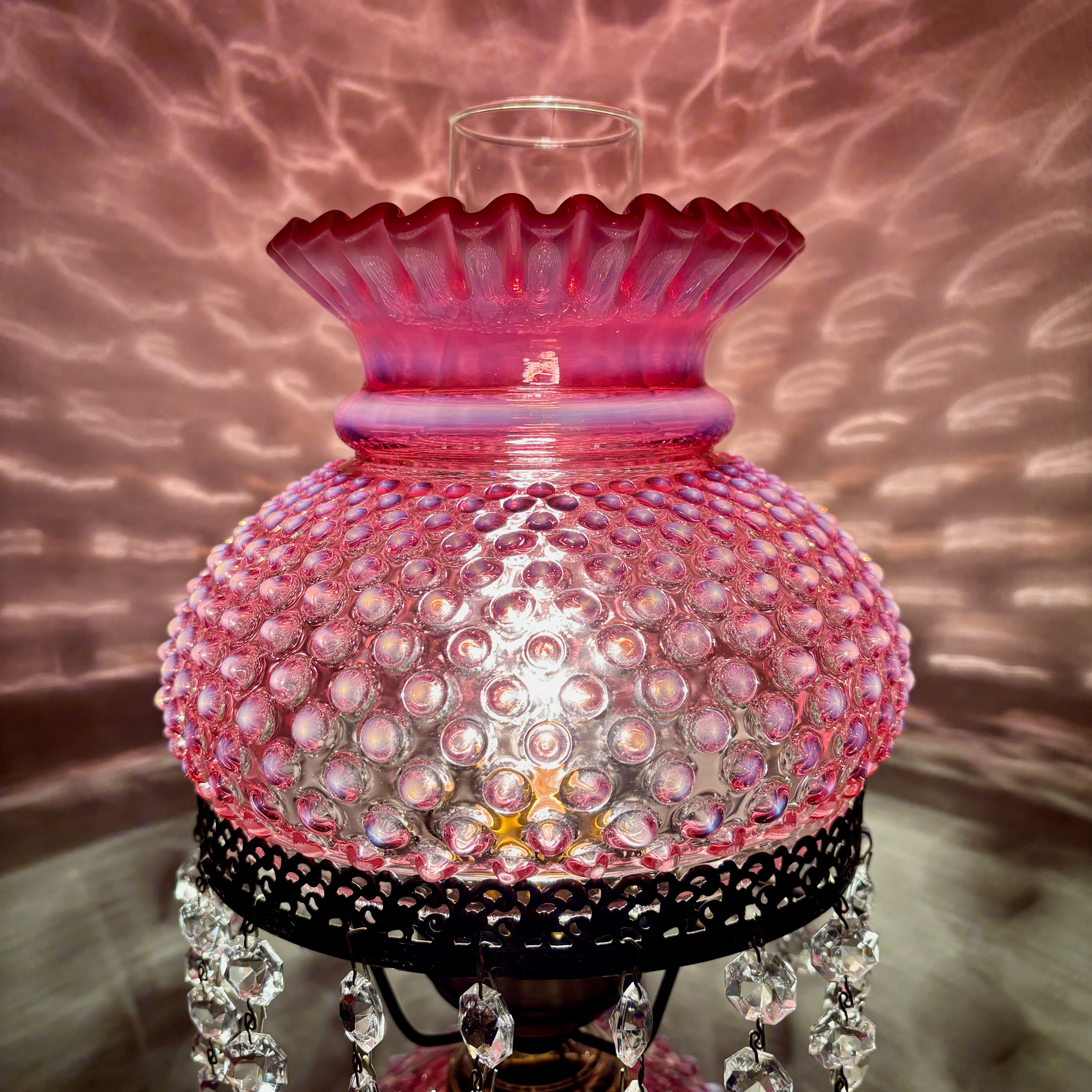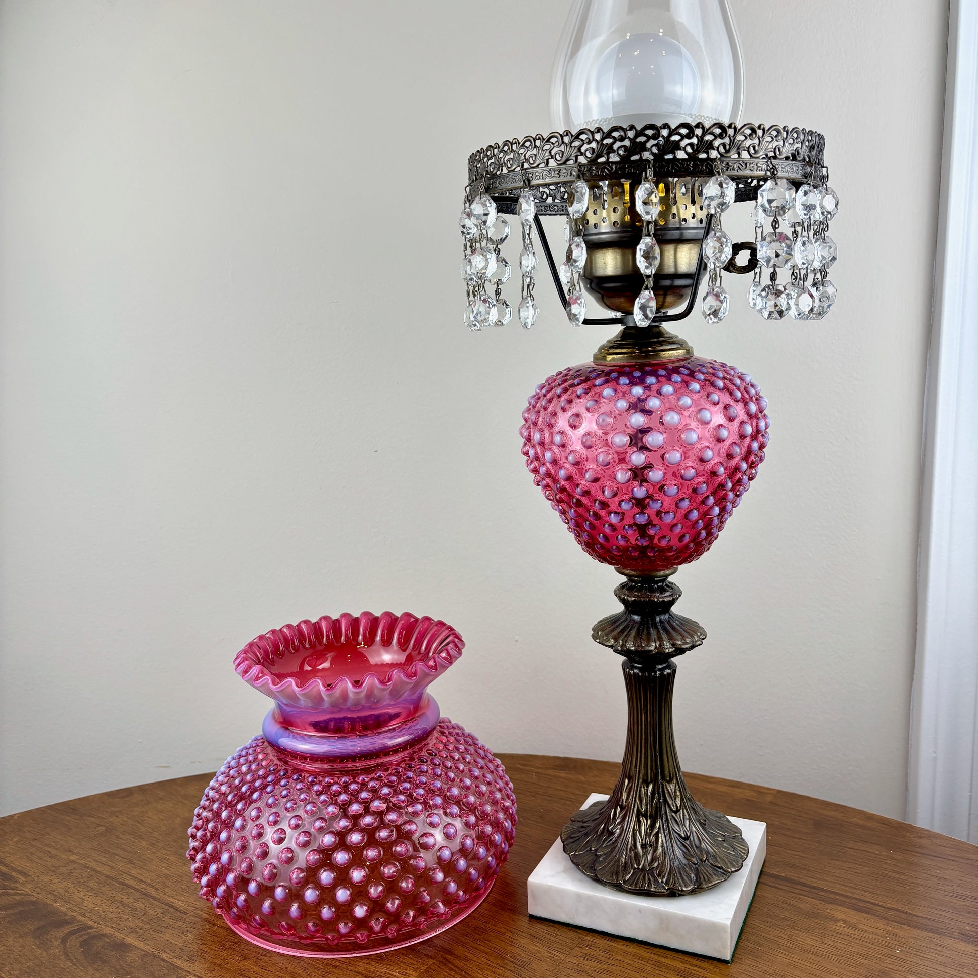 Vintage Fenton Cranberry Opalescent Hobnail Hurricane Lamp Marble Base Crystal Prism | Gone With The Wind Lamp | Fenton Lamp