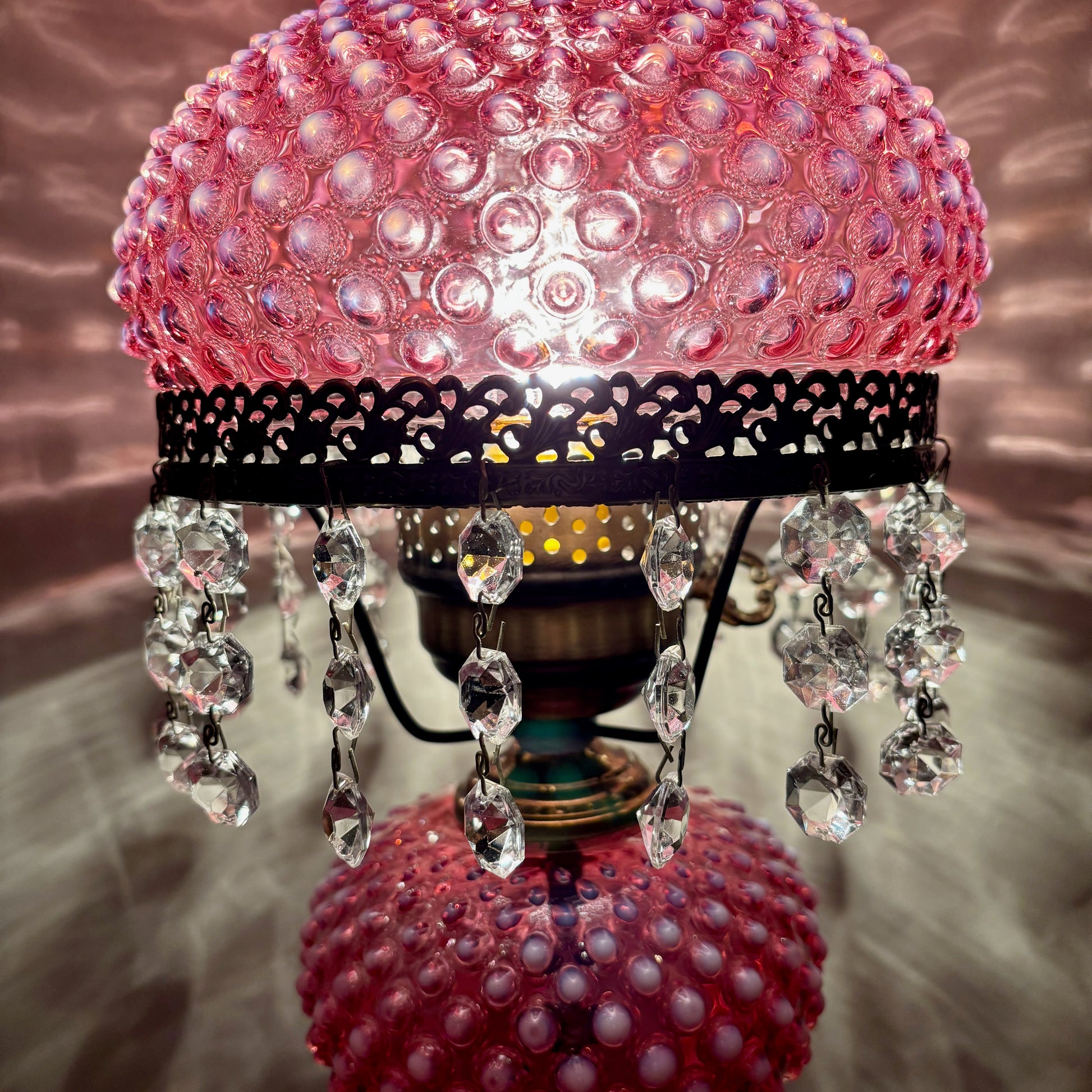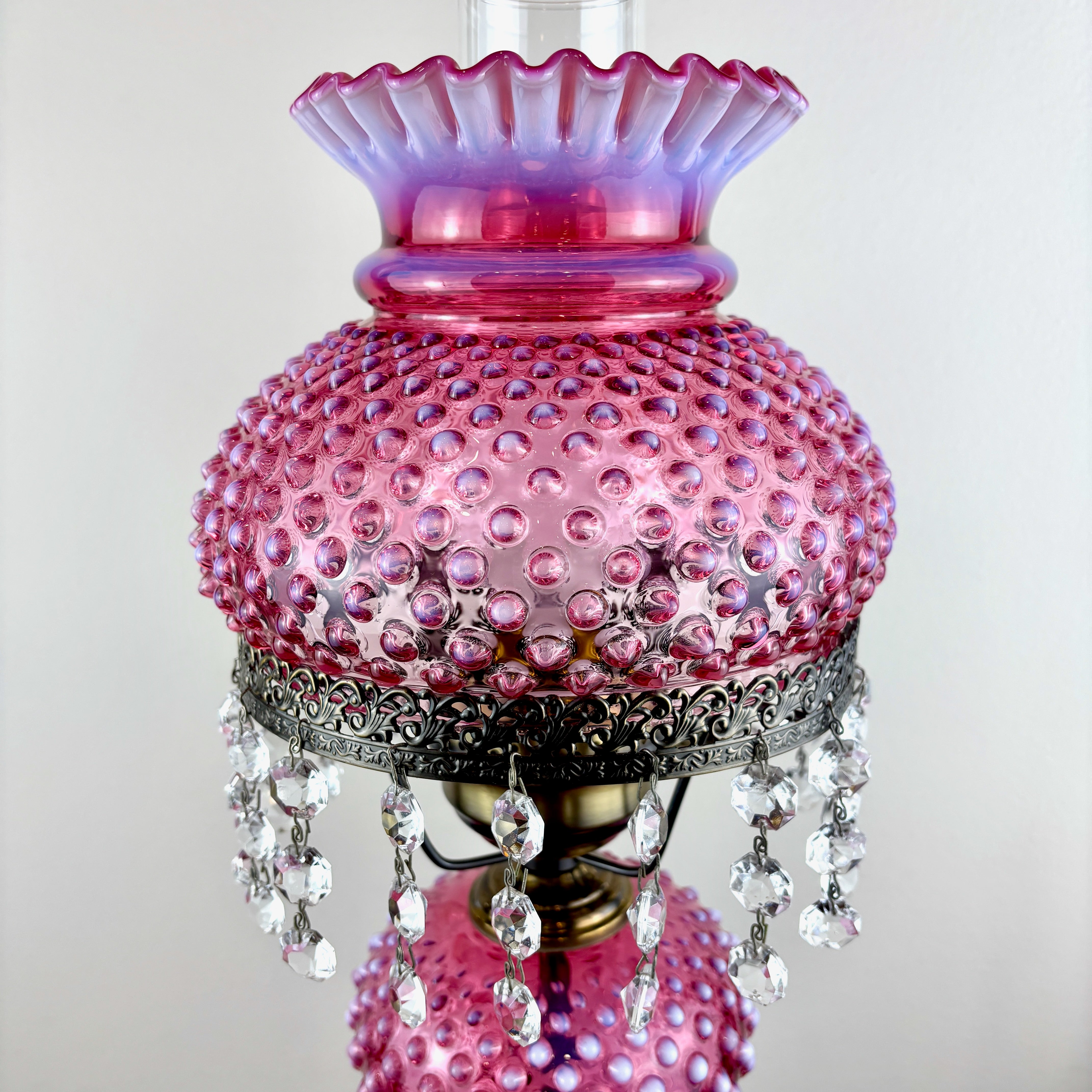 Incredible Fenton cranberry opalescent hobnail lamp.