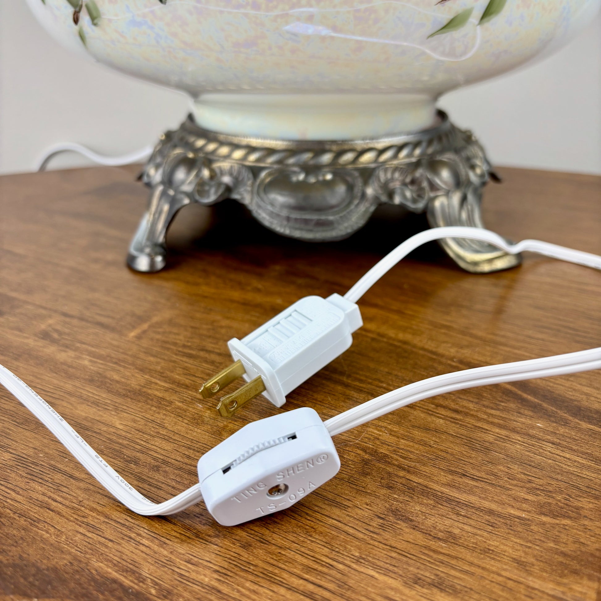 Lamp has a new electrical cord. Comes with In-line ON-OFF rotary cord switch.