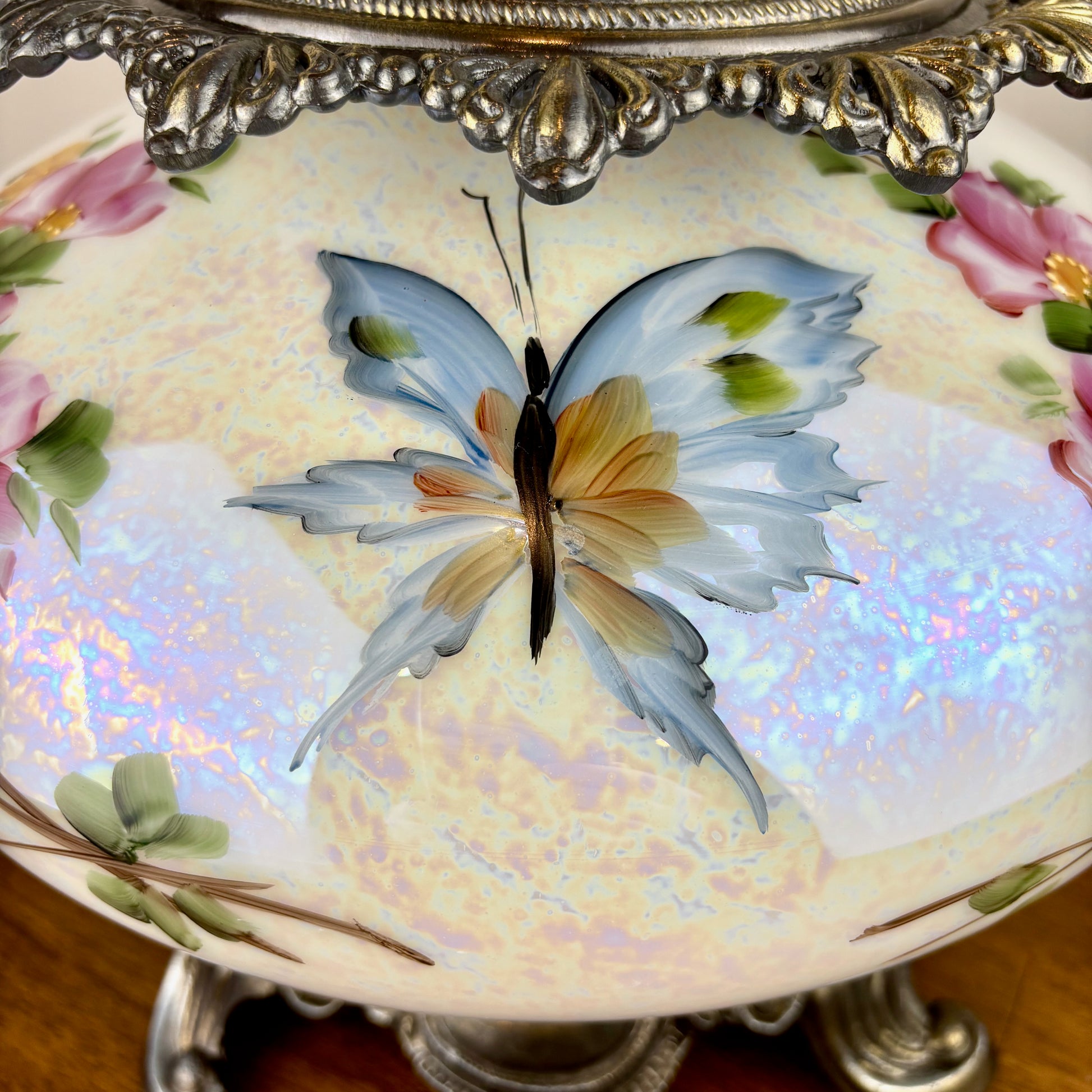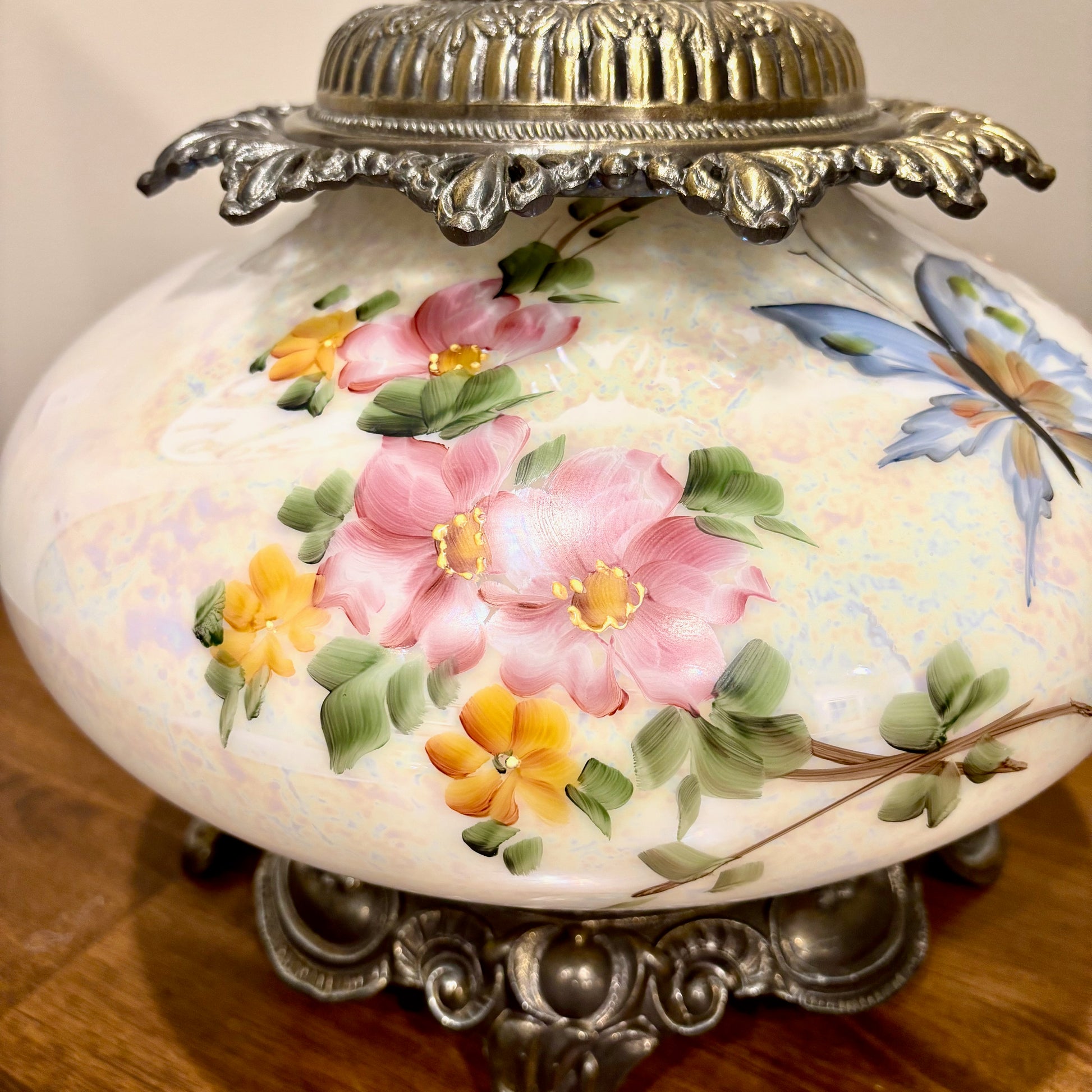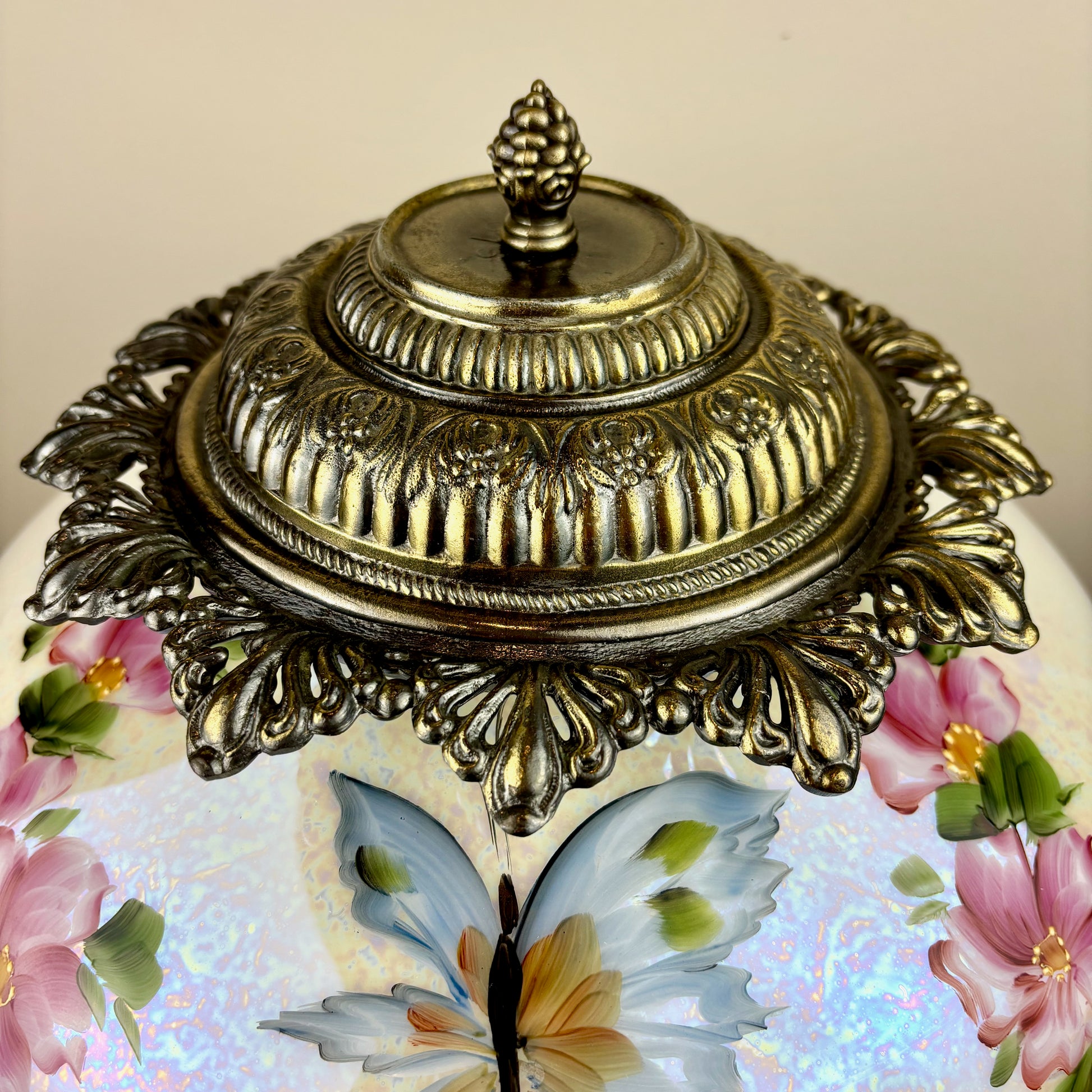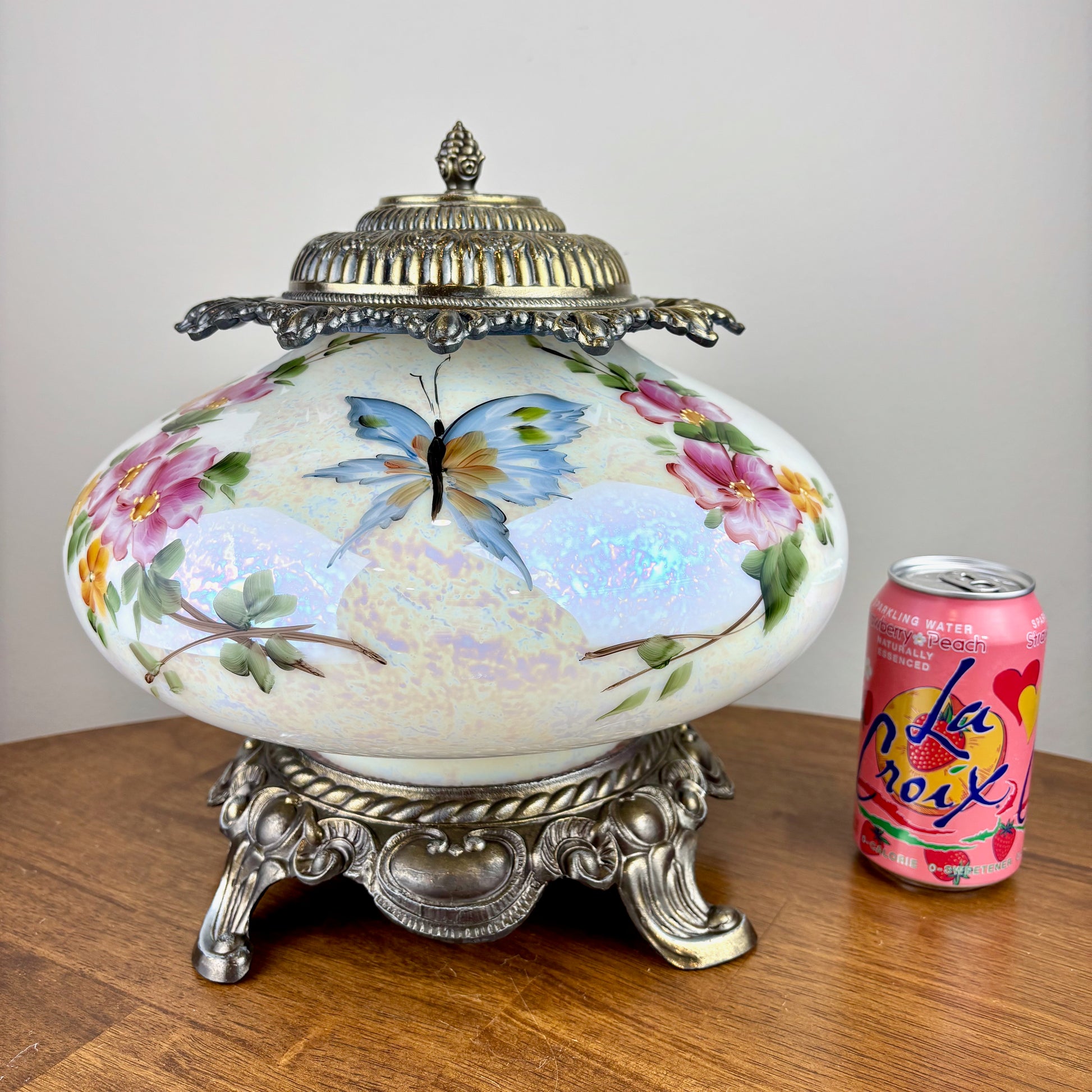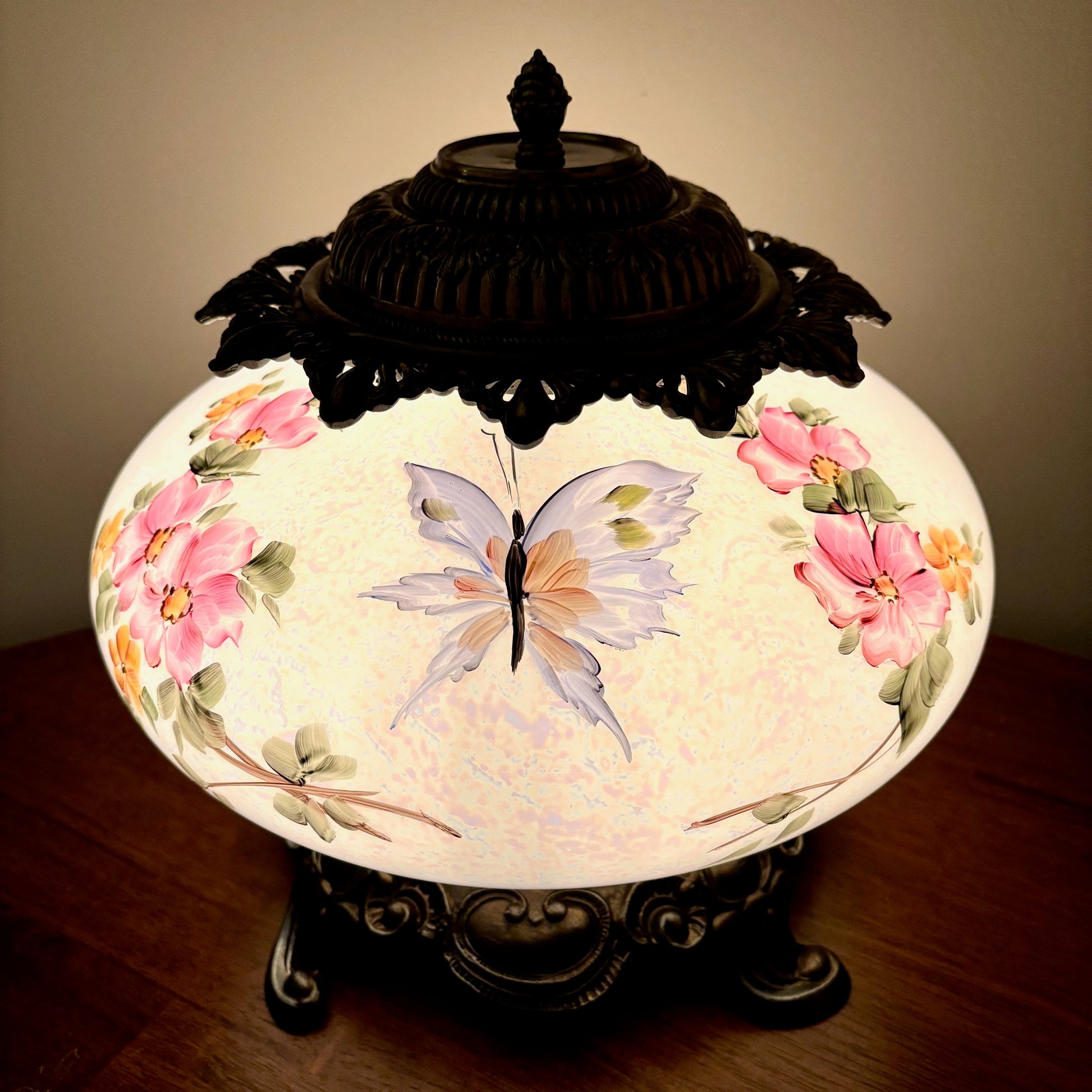 Vintage Opalescent Luster Blue Butterfly Pink Yellow Floral Glass Nightlight Lamp | Vintage Nightlight | Accent Light | Mood Desk Lamp