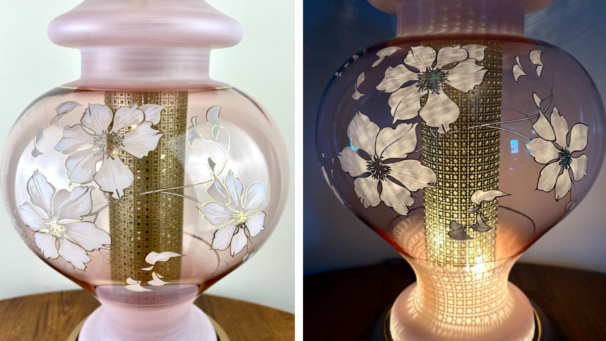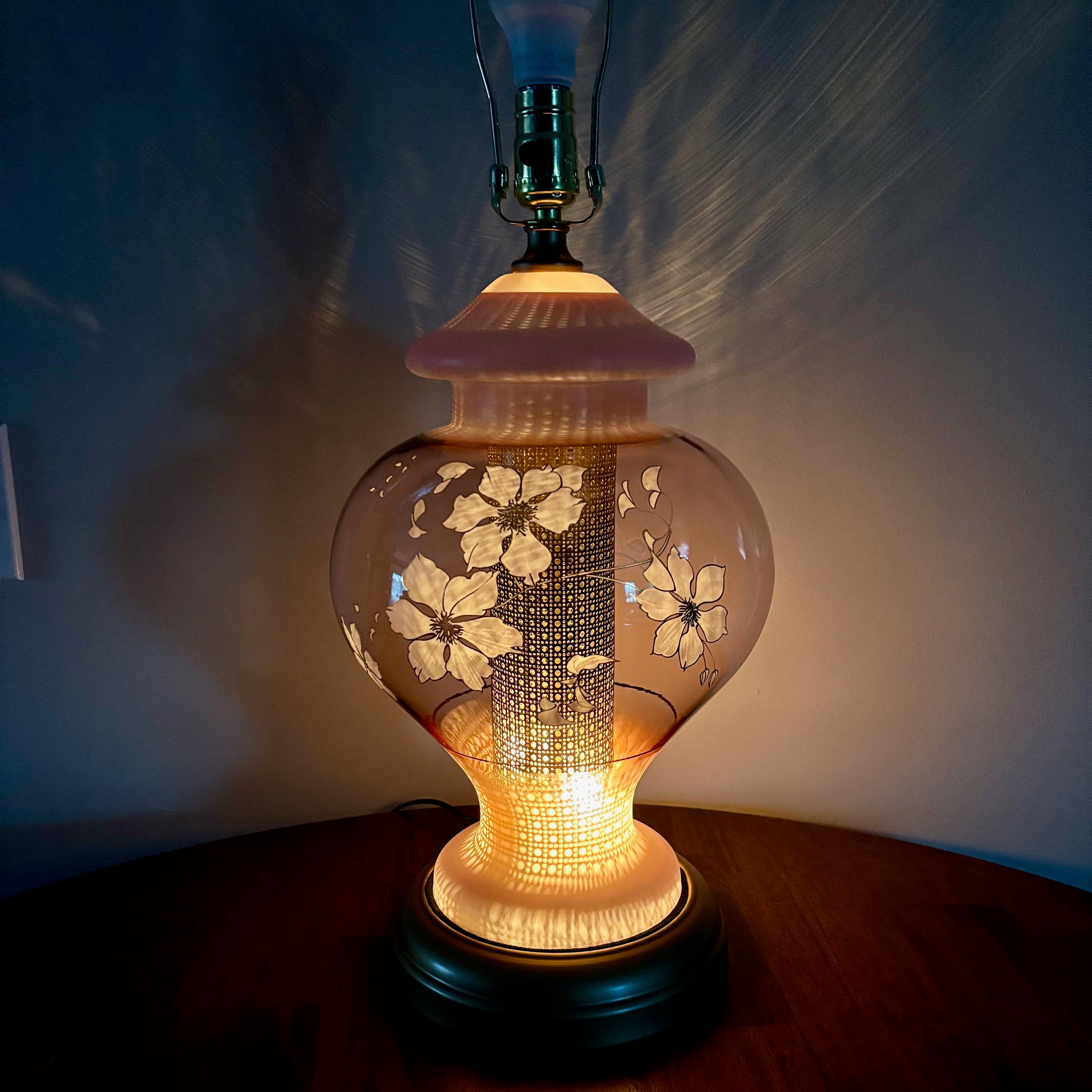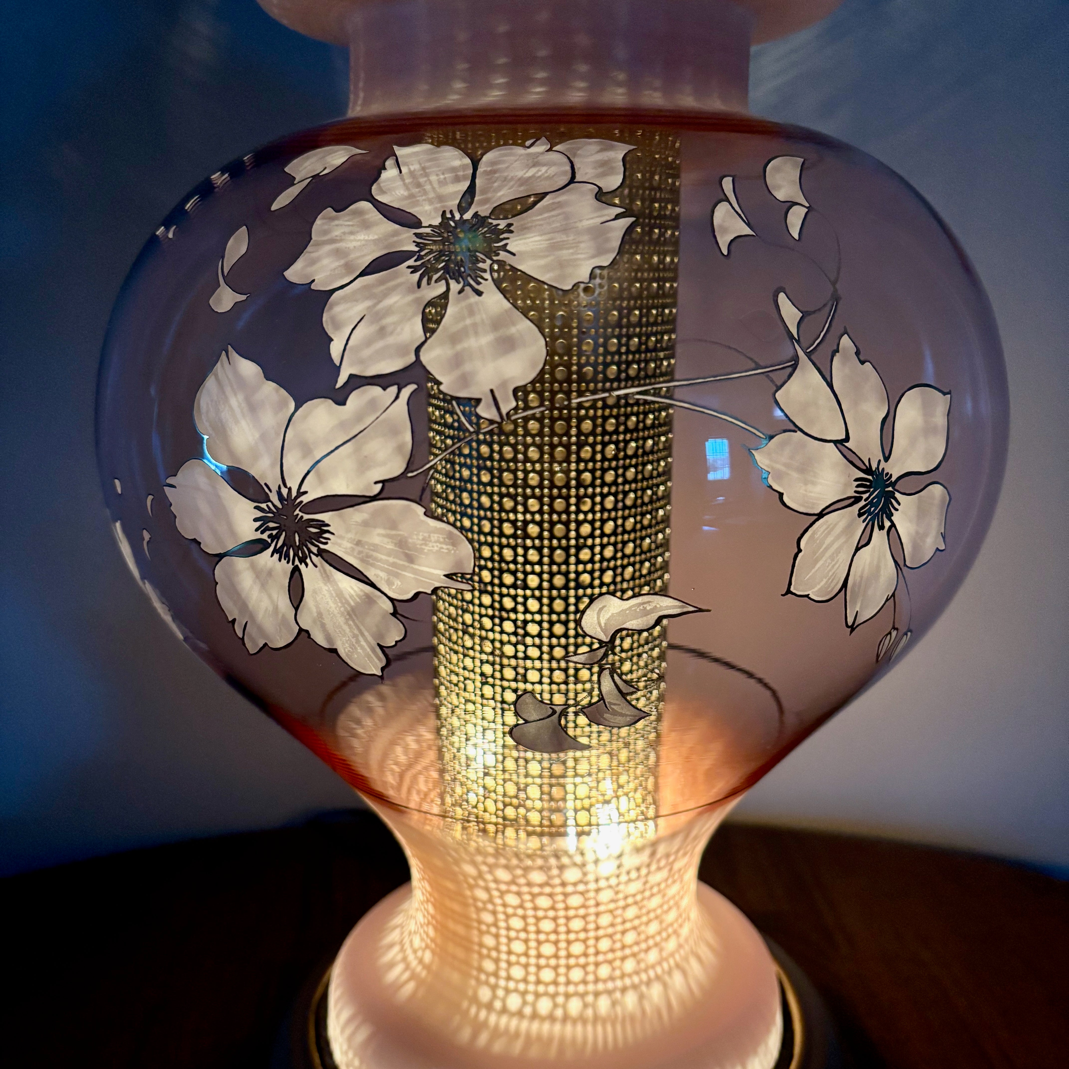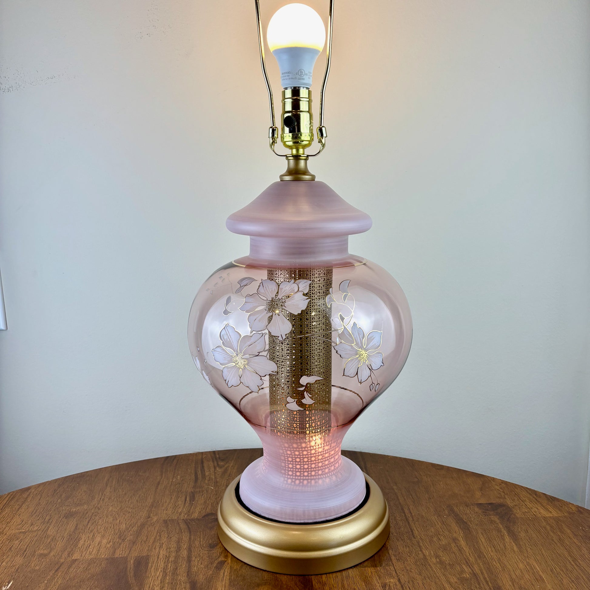 Vintage Pink Glass Floral Table Lamp | Pink Glass Lamp | Vintage Lamp | Vintage Table Lamp.