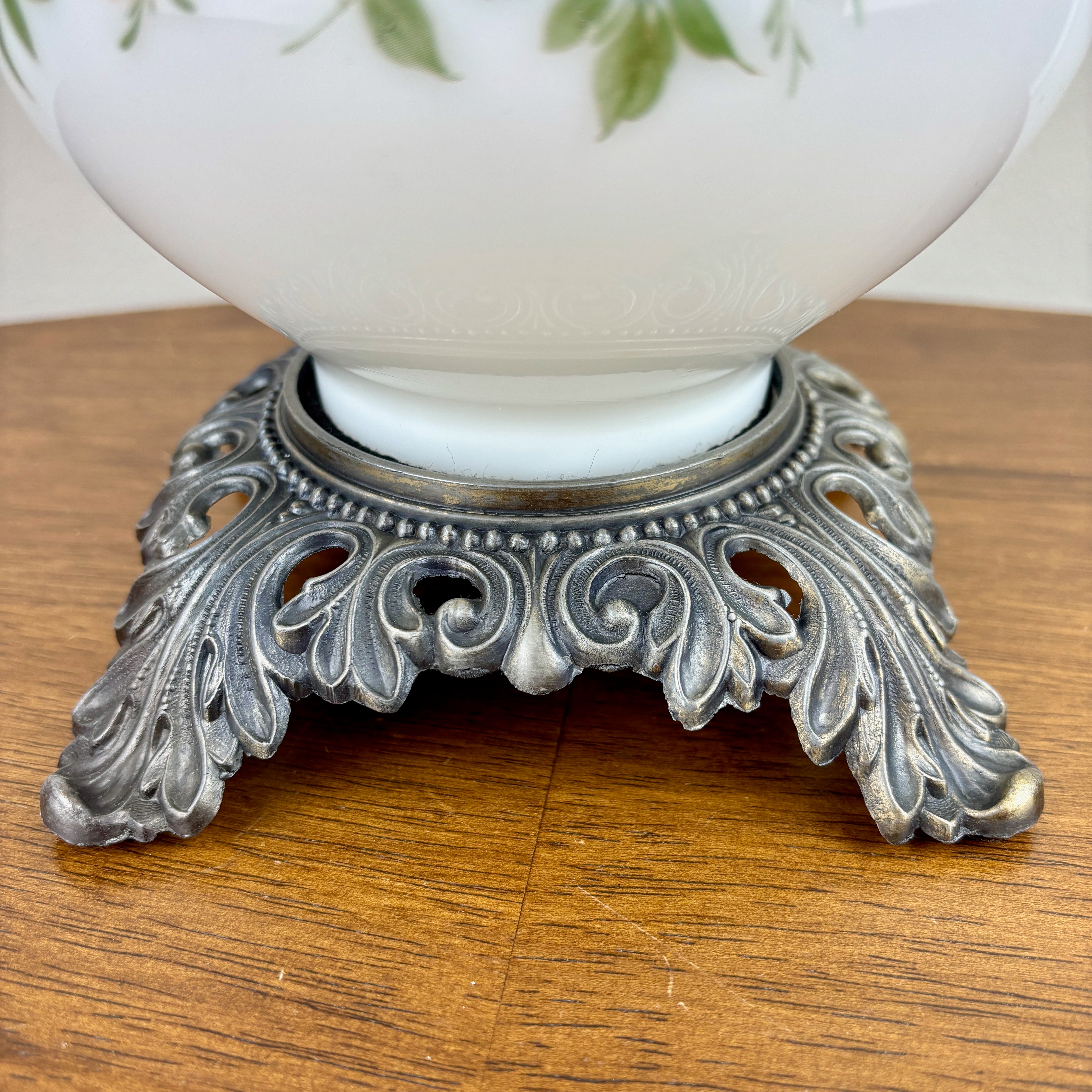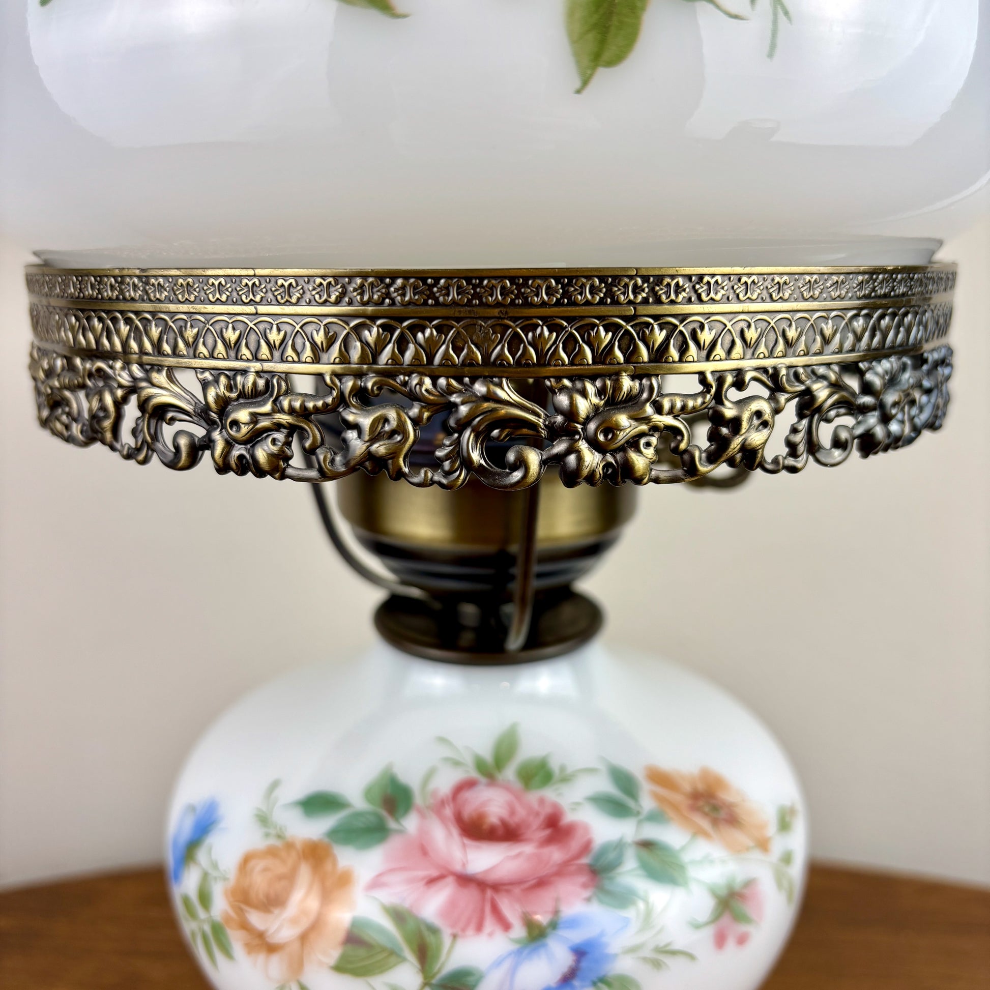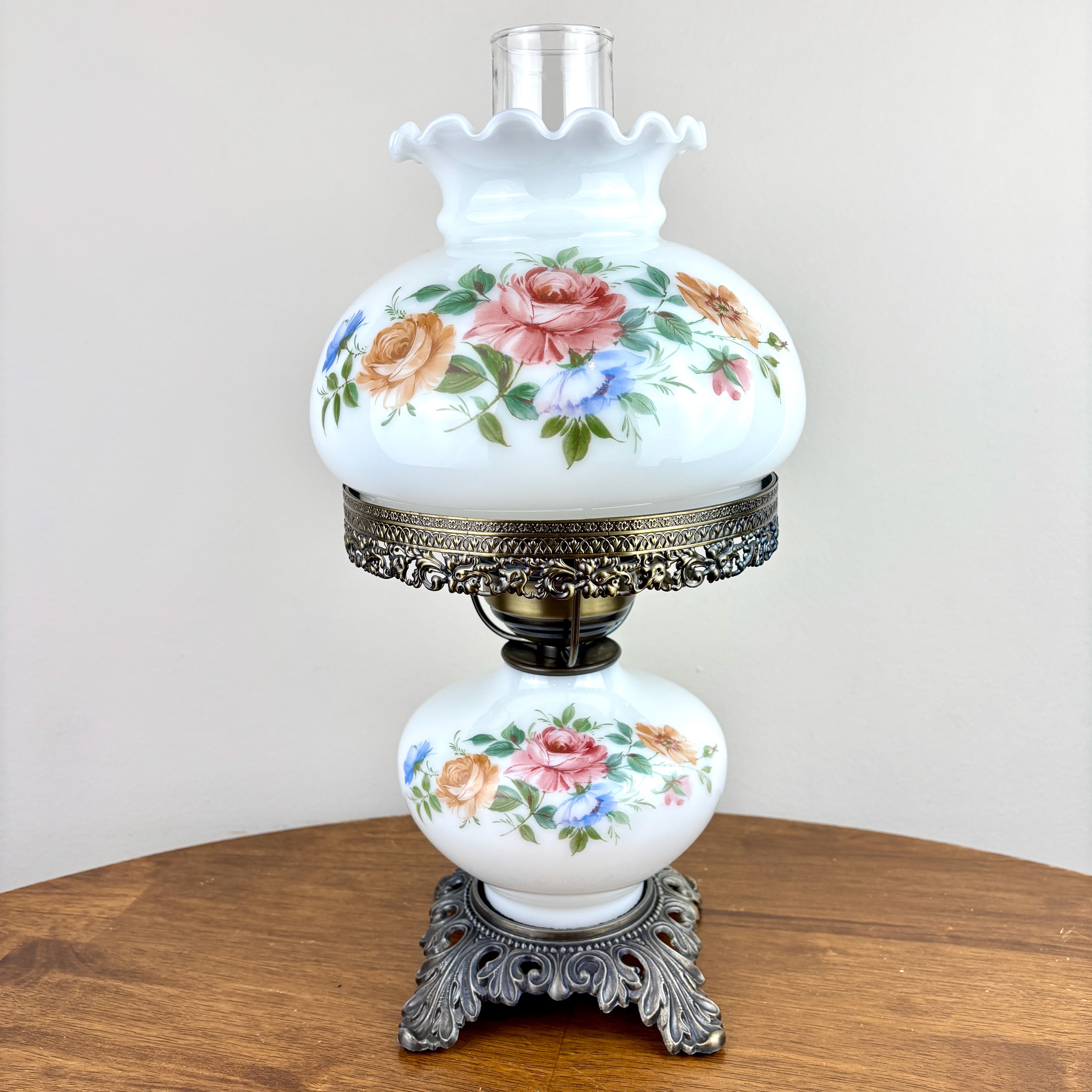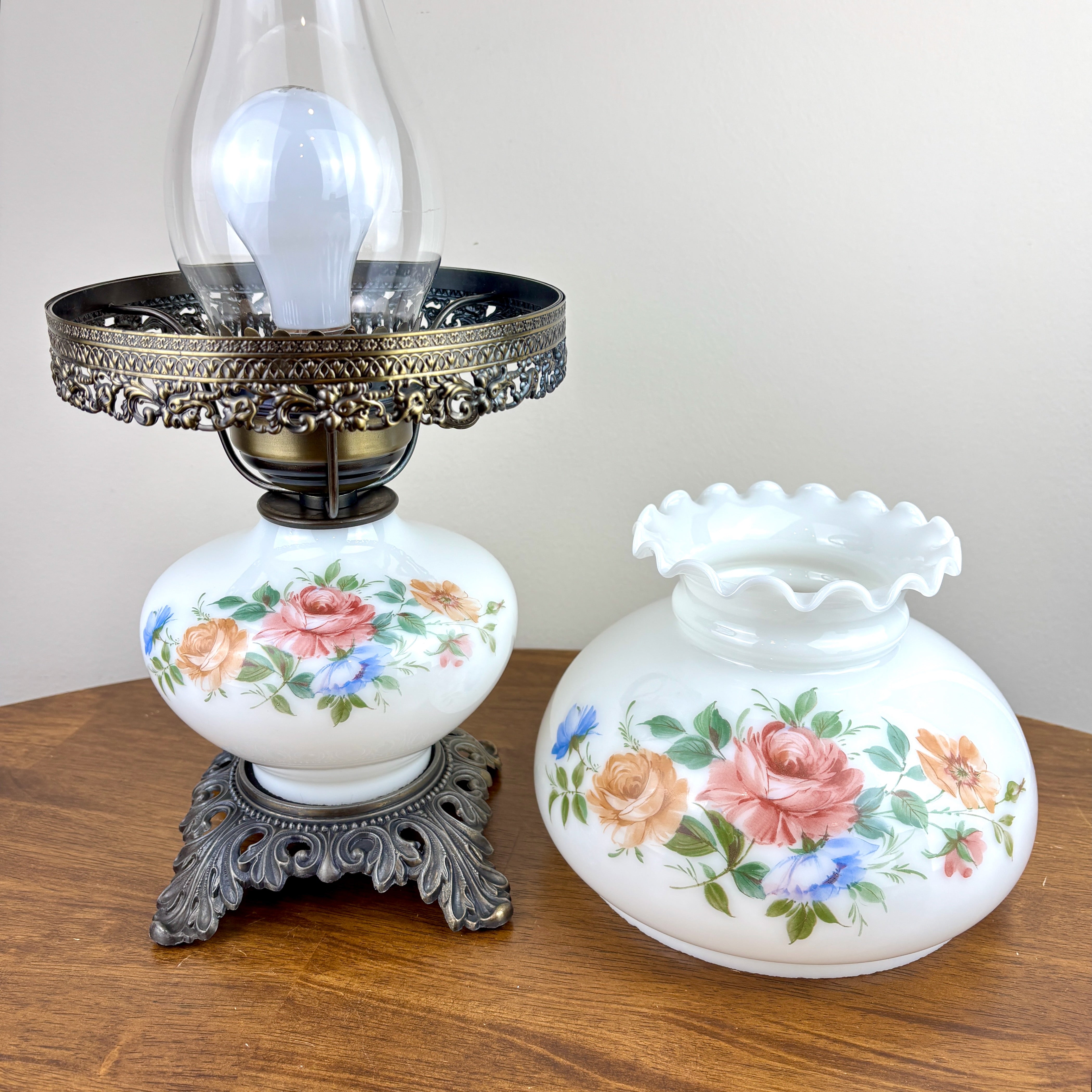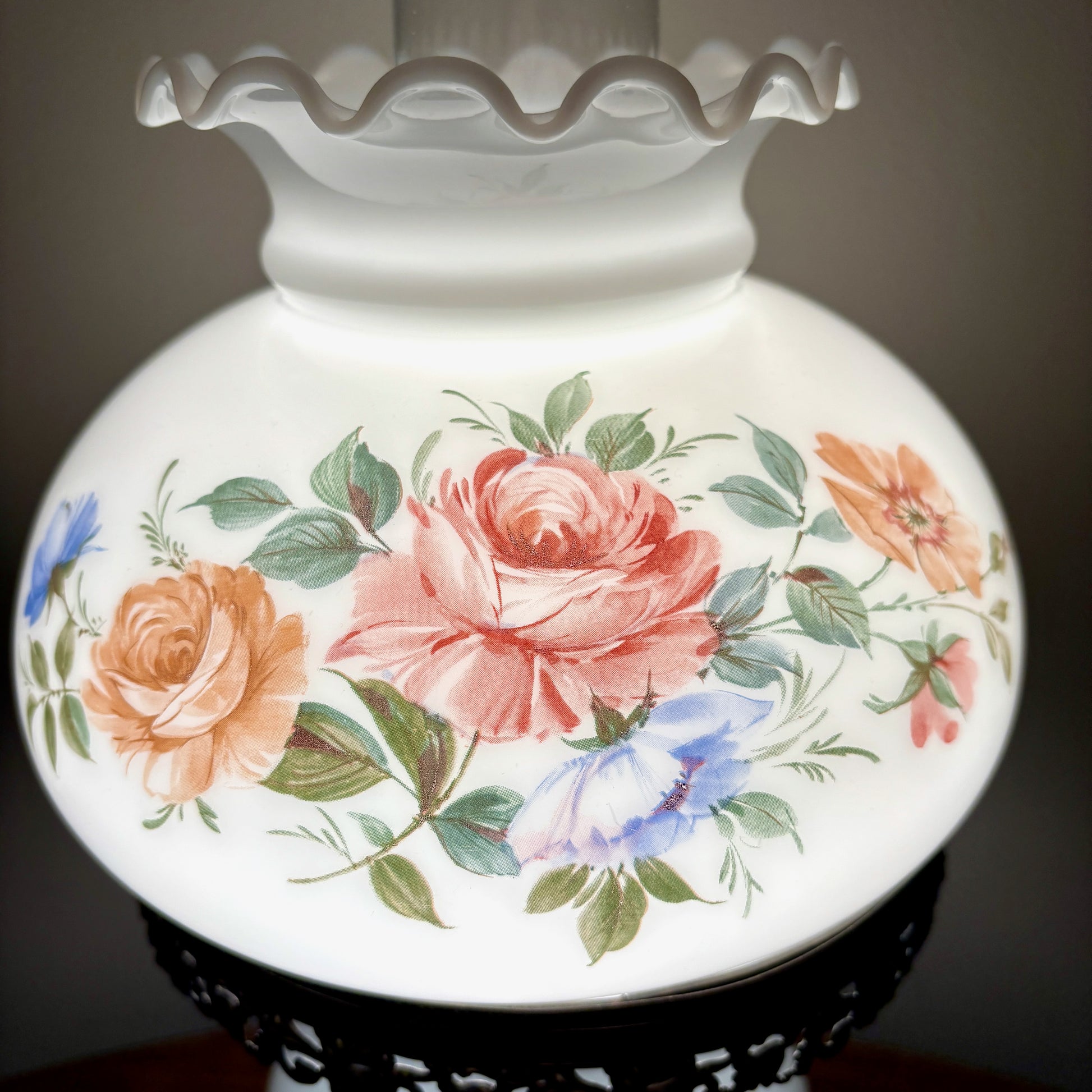 Vintage Pinkish Red Blue Floral Milk Glass Hurricane Lamp | Vintage Hurricane Lamp | Gone With The Wind Lamp | Vintage Lamp | Milk Glass Lamp